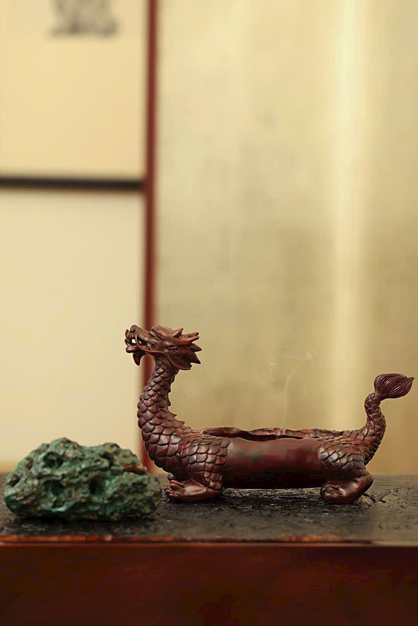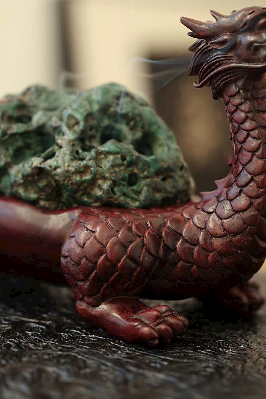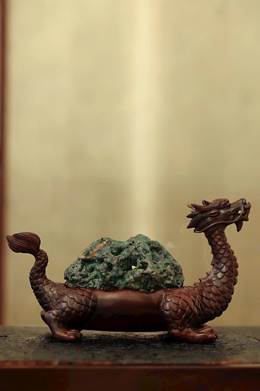 Gỗ tử đàn Zambia × Đá Khổng Tước | Lư hương Long Quy