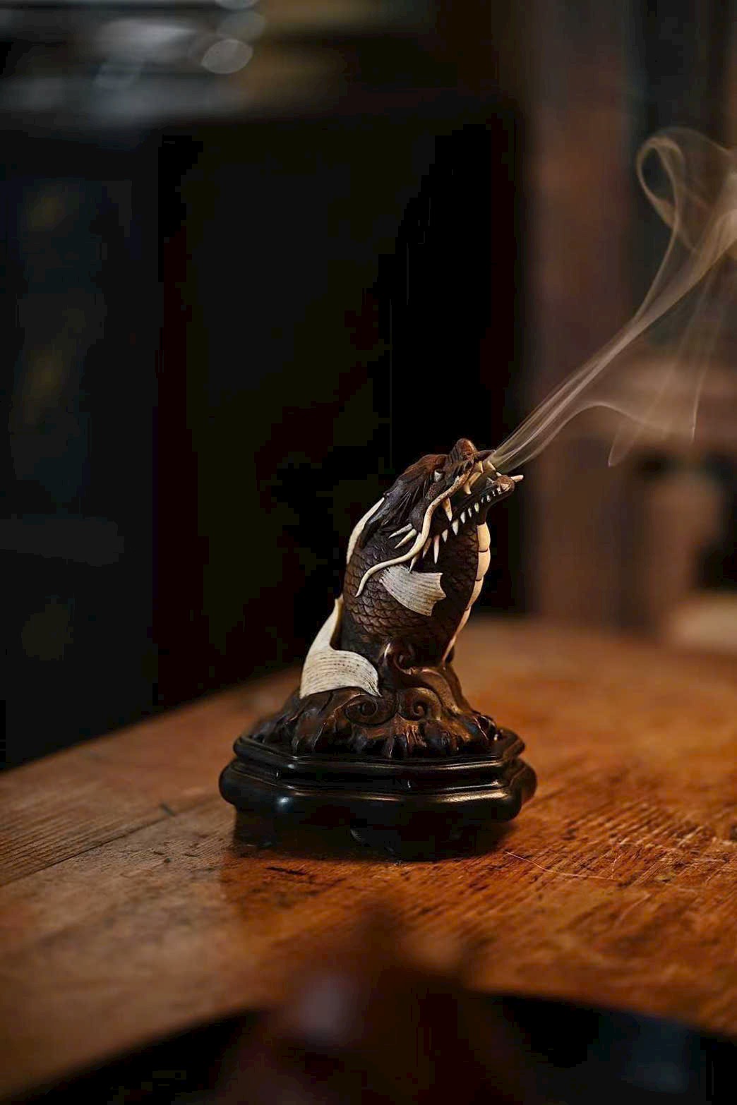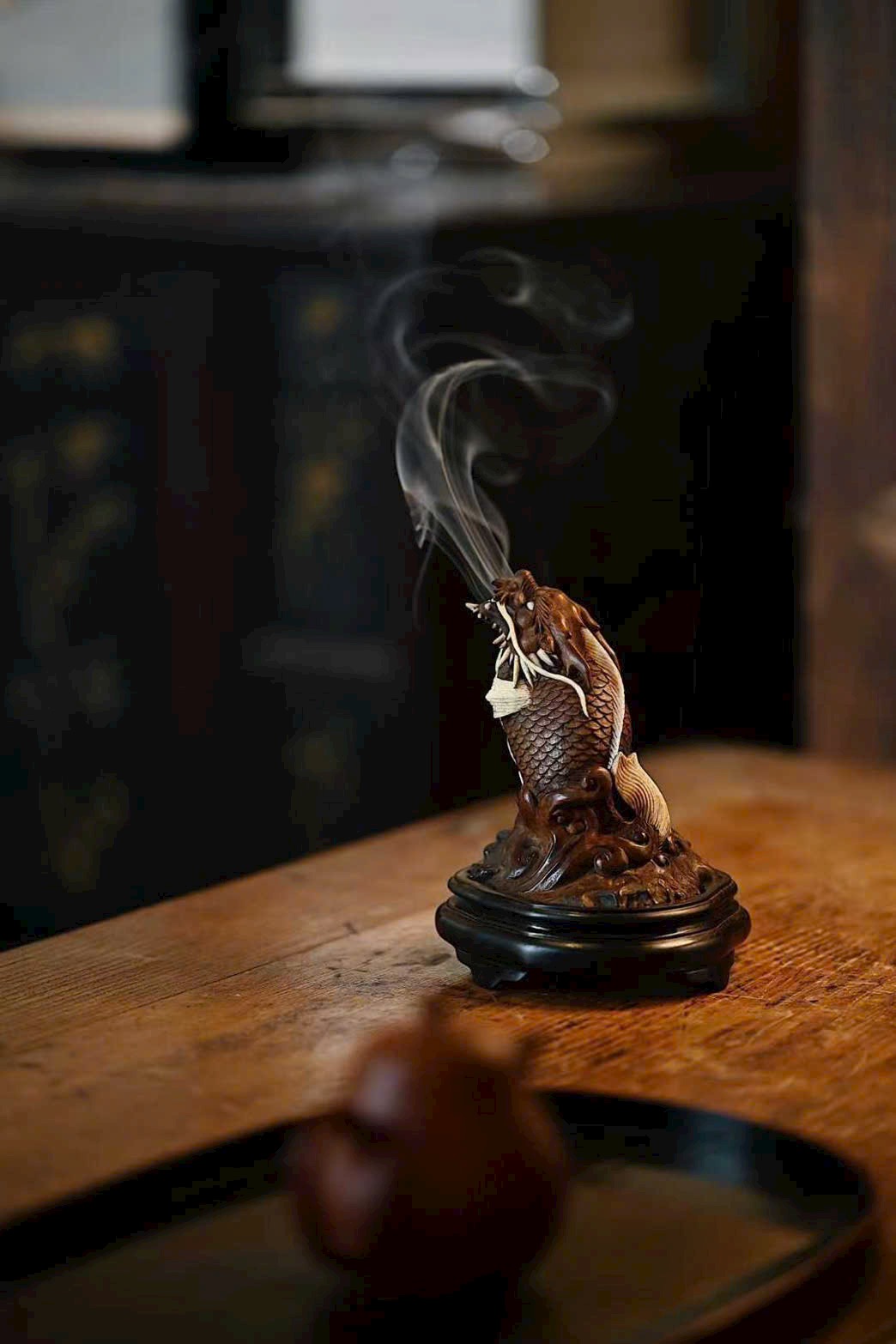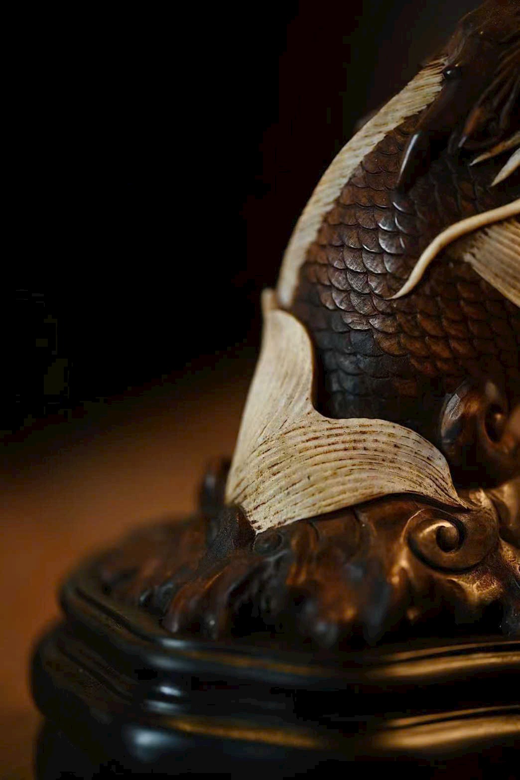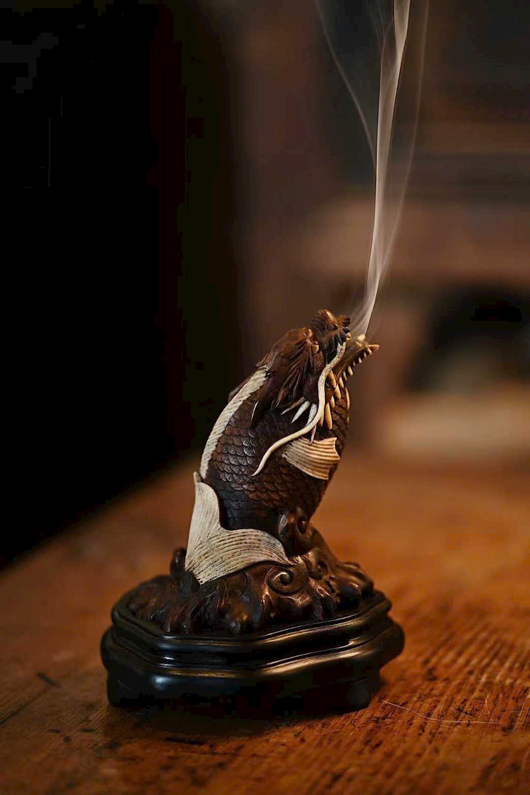 🌿 Lư hương Ngao Ngư dáng cổ – đầu rồng thân cá, vảy nổi, vây xoè như cánh, khói hương tỏa ra sống động. Biểu tượng “Cá hóa rồng” – mang ý nghĩa đỗ đạt, độc chiếm vị trí cao nhất.
