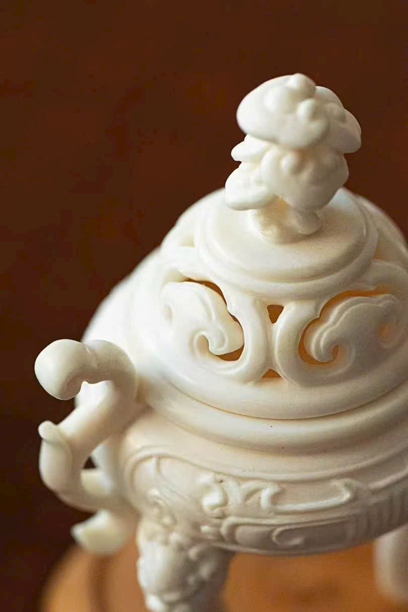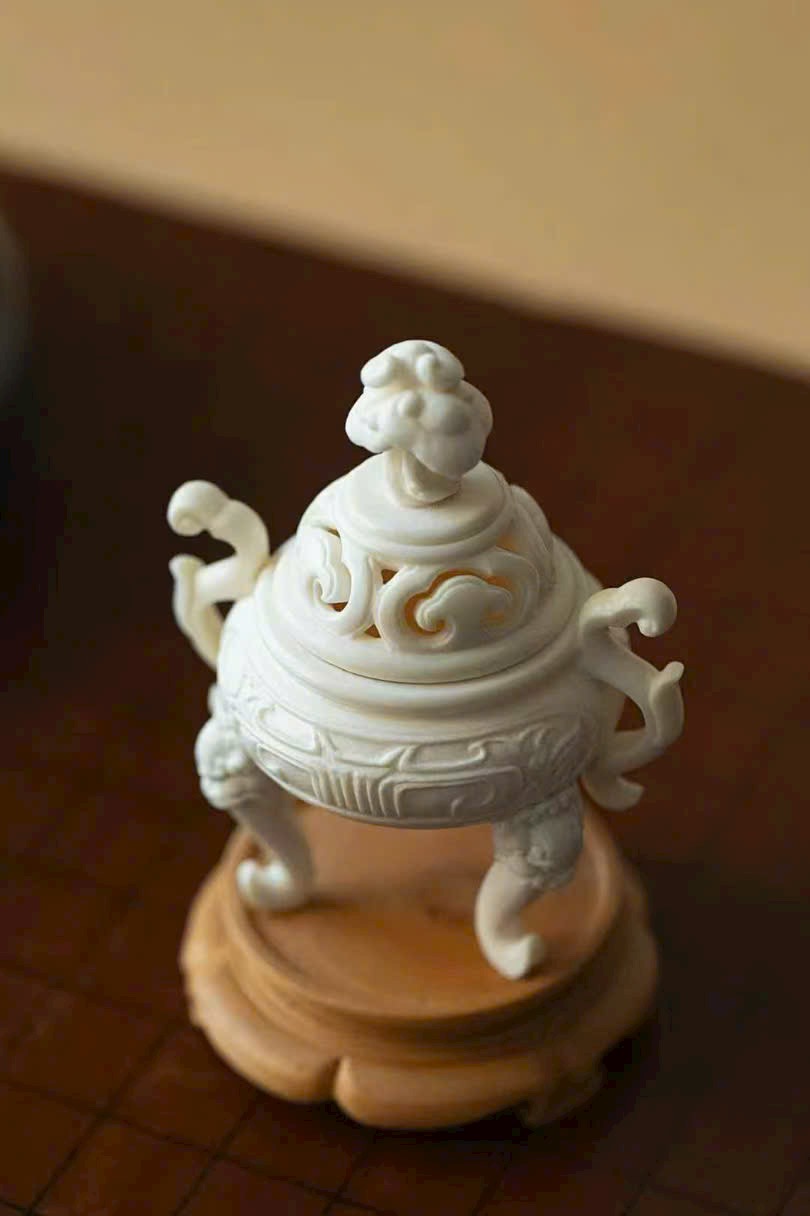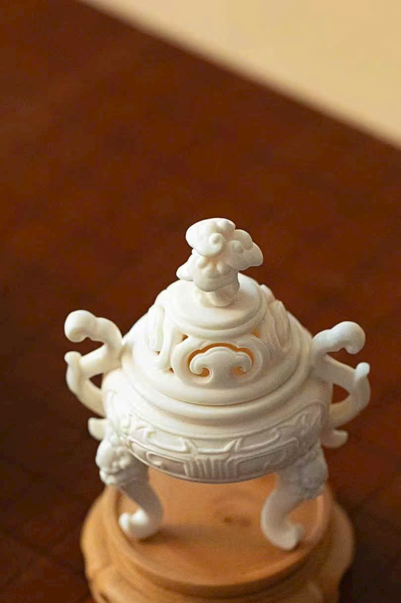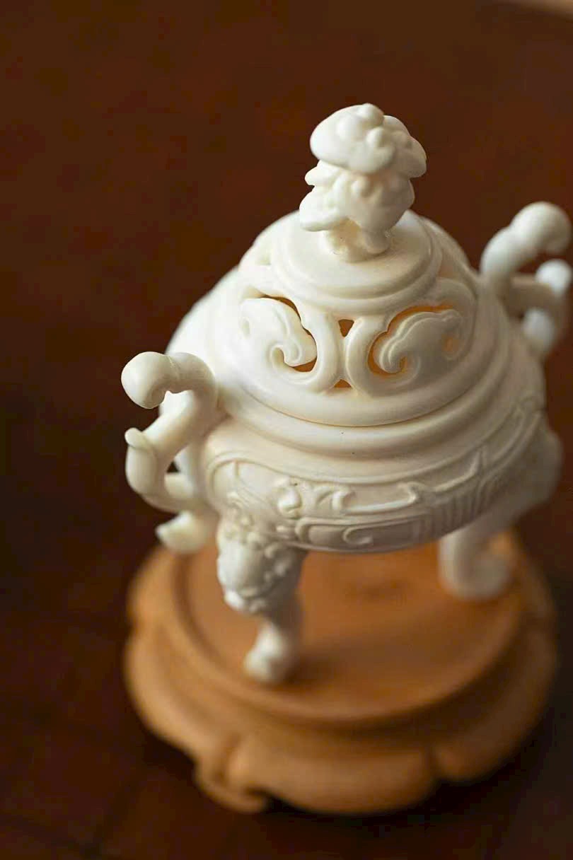 Sừng hươu x Gỗ hoàng dương | Lư trầm ba chân họa tiết hồi văn