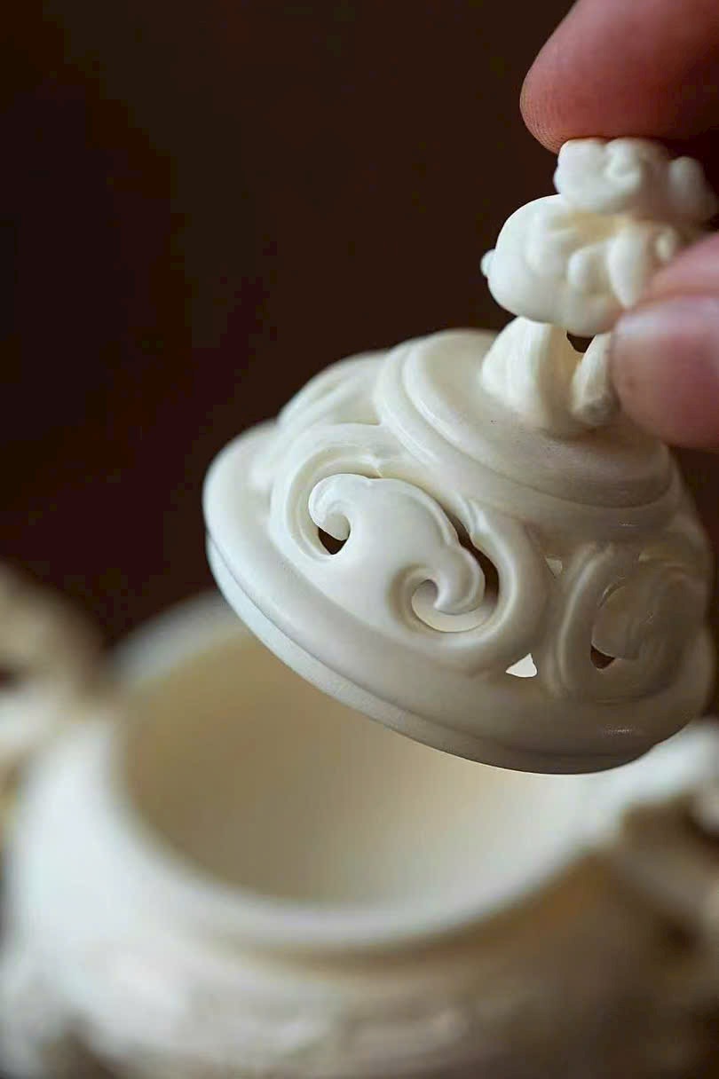 Bình lư mang dáng cổ điển, màu sắc trầm ấm tự nhiên. Nắp lư được chạm khắc tinh xảo, vừa kín đáo vừa hiện hình, tạo nên vẻ đơn giản, thanh nhã. Toàn thể tác phẩm toát lên hương vị cổ xưa, khí chất đằm thắm, trang trọng.