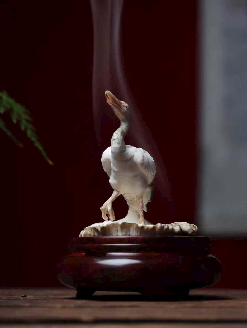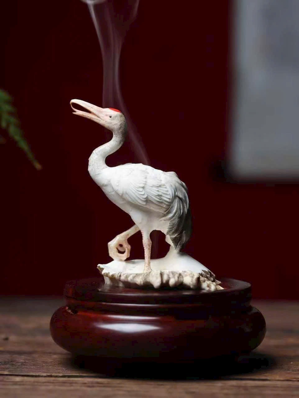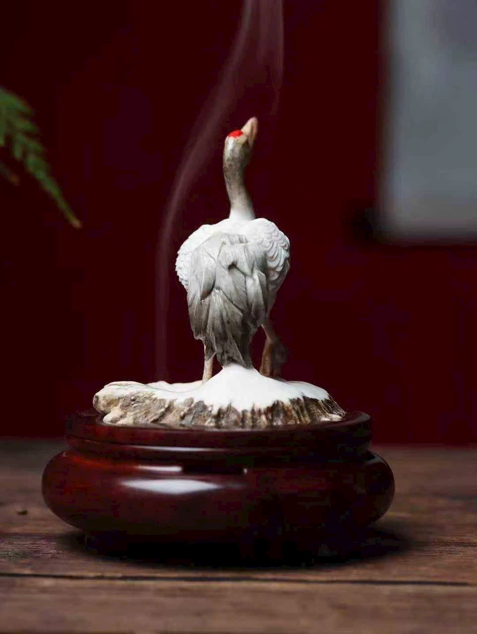 🦢 Lư xông trầm Hạc Cát Tường | Chế tác từ sừng hươu + đế tử đàn phi