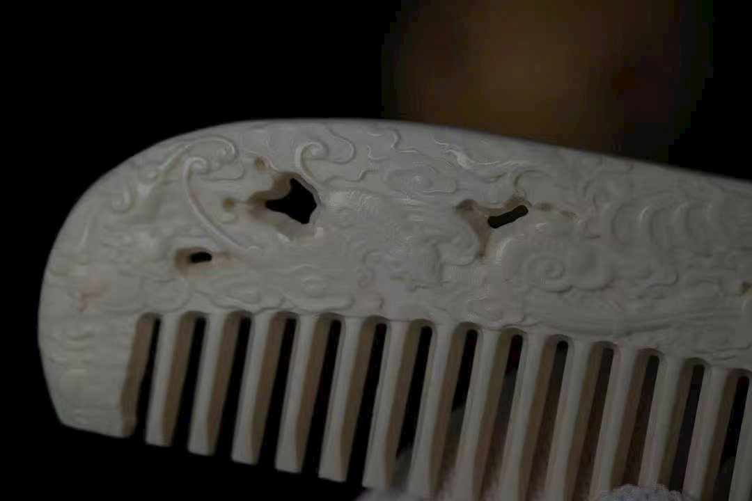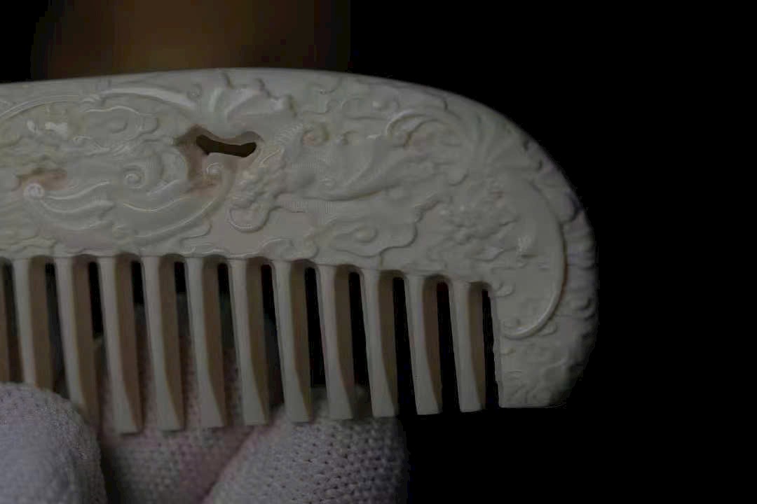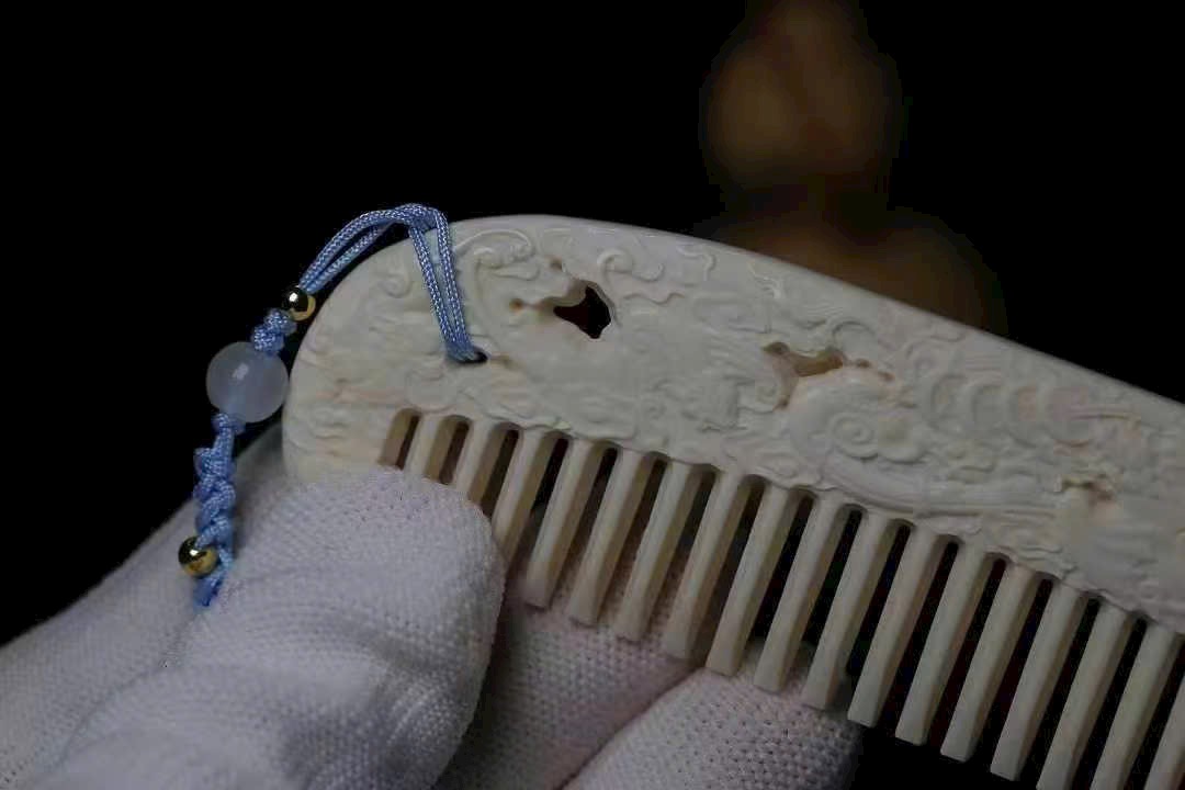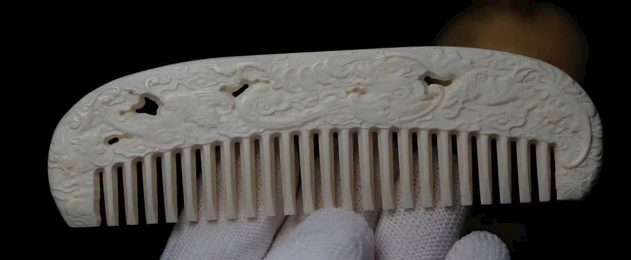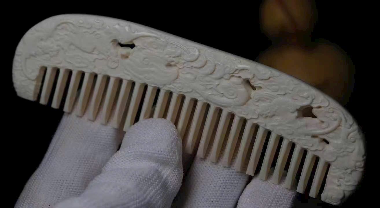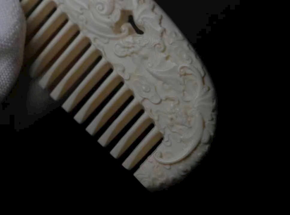 Chất ng.à mịn màng, độ dày tốt, vân ngà rõ nét và đầy đặn. Răng lược được mài giũa phẳng đều, chạm khắc tinh xảo; là lược n.gà thật sự dùng để chải tóc.