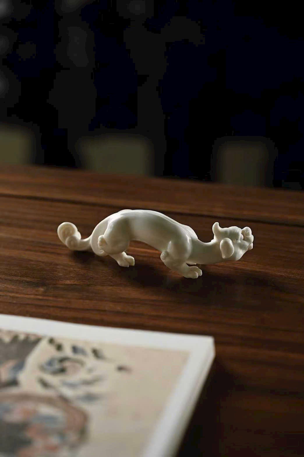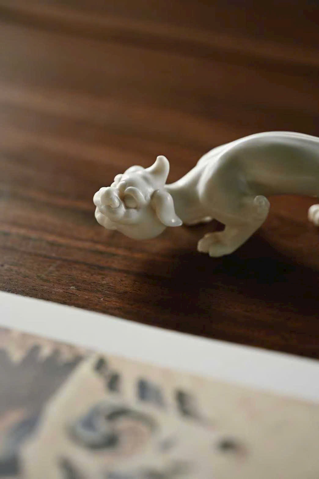 Hình tượng ly long uốn lượn mạnh mẽ, thân rồng như đang bơi lượn, đầu tròn miệng rộng, đôi mắt sáng rực có thần. Đường nét khắc chạm mượt mà tự nhiên, dáng vẻ sinh động, mang phong vị cổ xưa mộc mạc. Bày nơi thư phòng, tăng thêm phong nhã và ý thú.