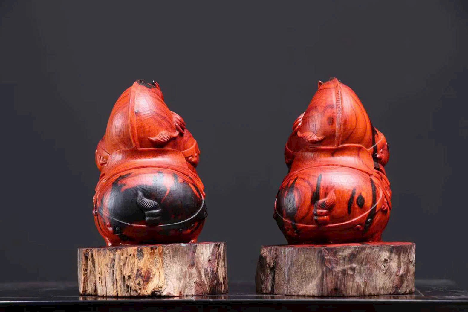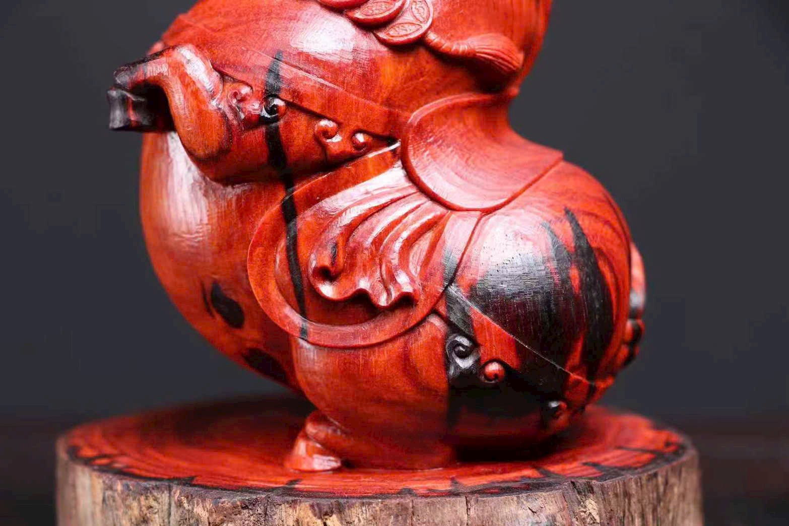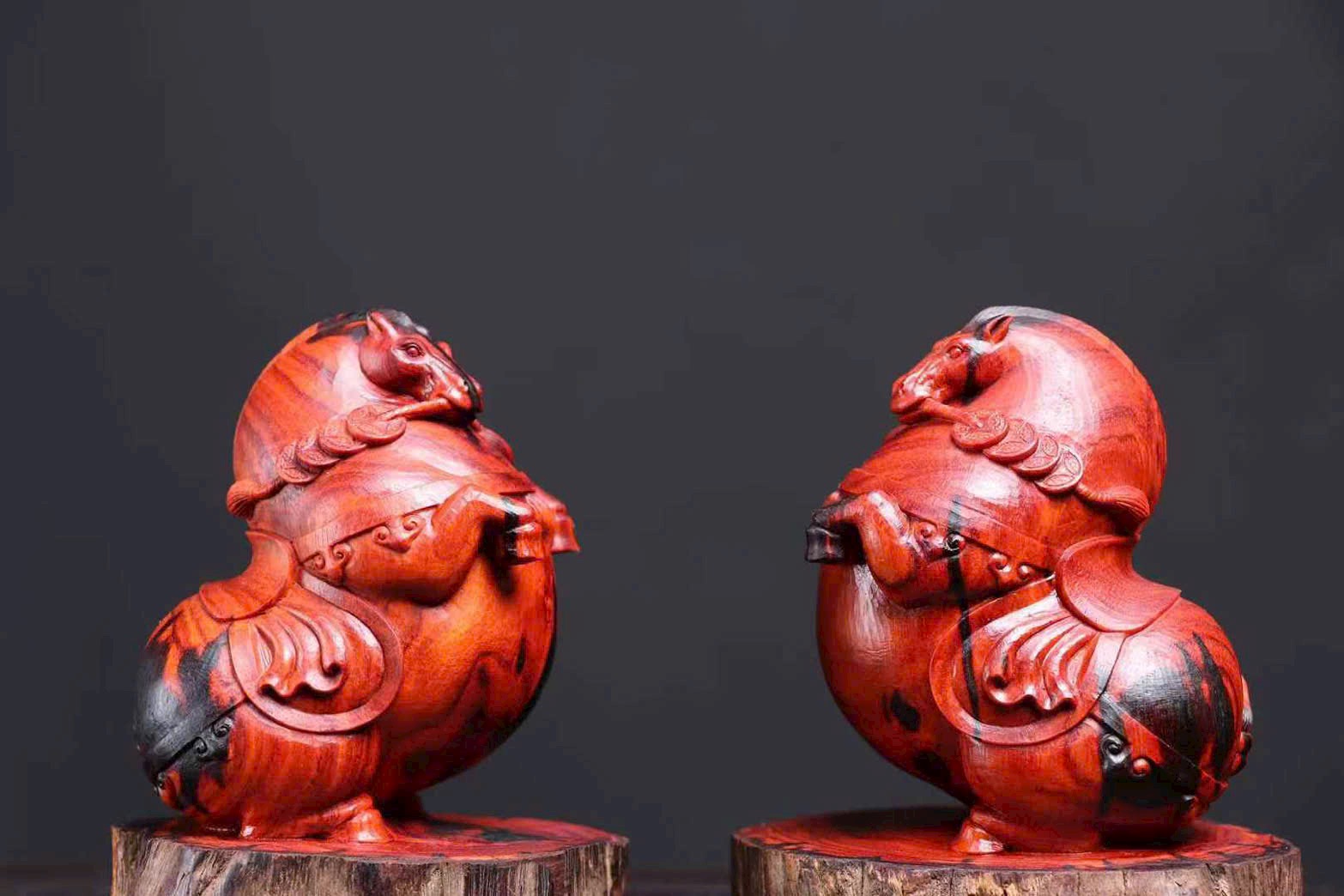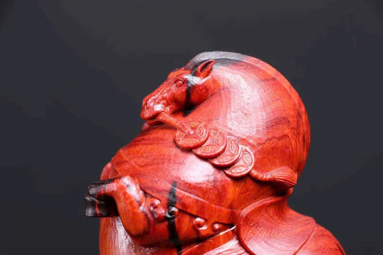 Chế tác từ gỗ tử đàn lá nhỏ Ấn Độ – gỗ tháo nhà lão liệu. Tạo hình ngựa vui mắt, mang ý nghĩa “mã đáo tài lai – tiền đến liền”, rất hợp bày bàn làm việc, quầy thu ngân hoặc phòng khách để chiêu tài.