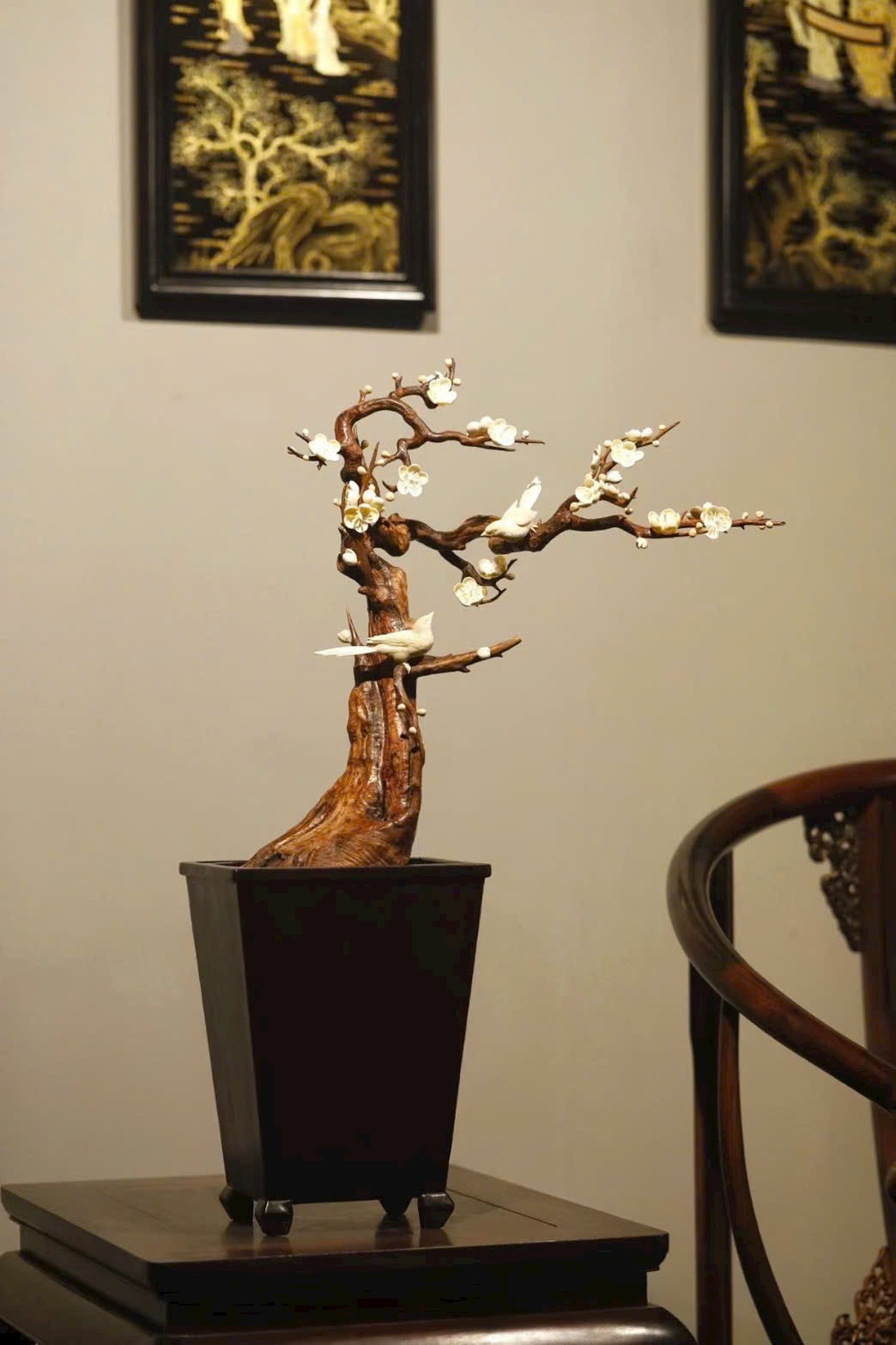 Tác phẩm Mai Điểu – kết hợp gỗ sưa hải nam và ng.à voi mamut