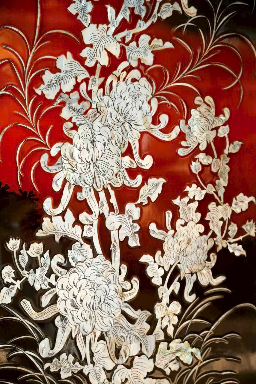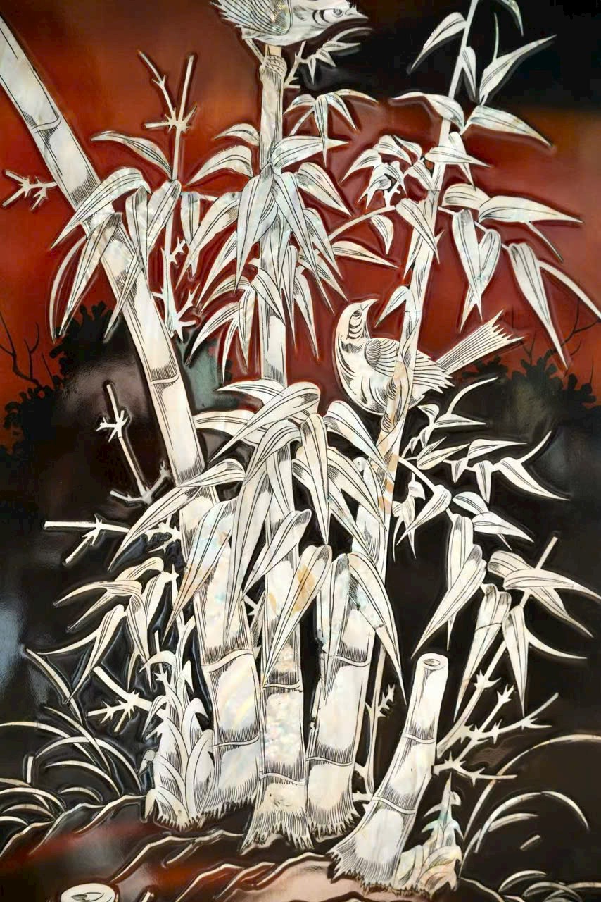 Trang trí hoa điểu cát tường, khảm xà cừ tinh xảo, ánh sắc lung linh.