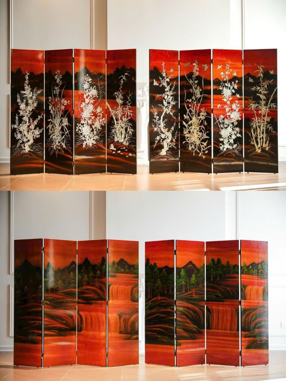 Bình phong bốn tấm khảm xà cừ “Chu Y Hàm Thụy”
