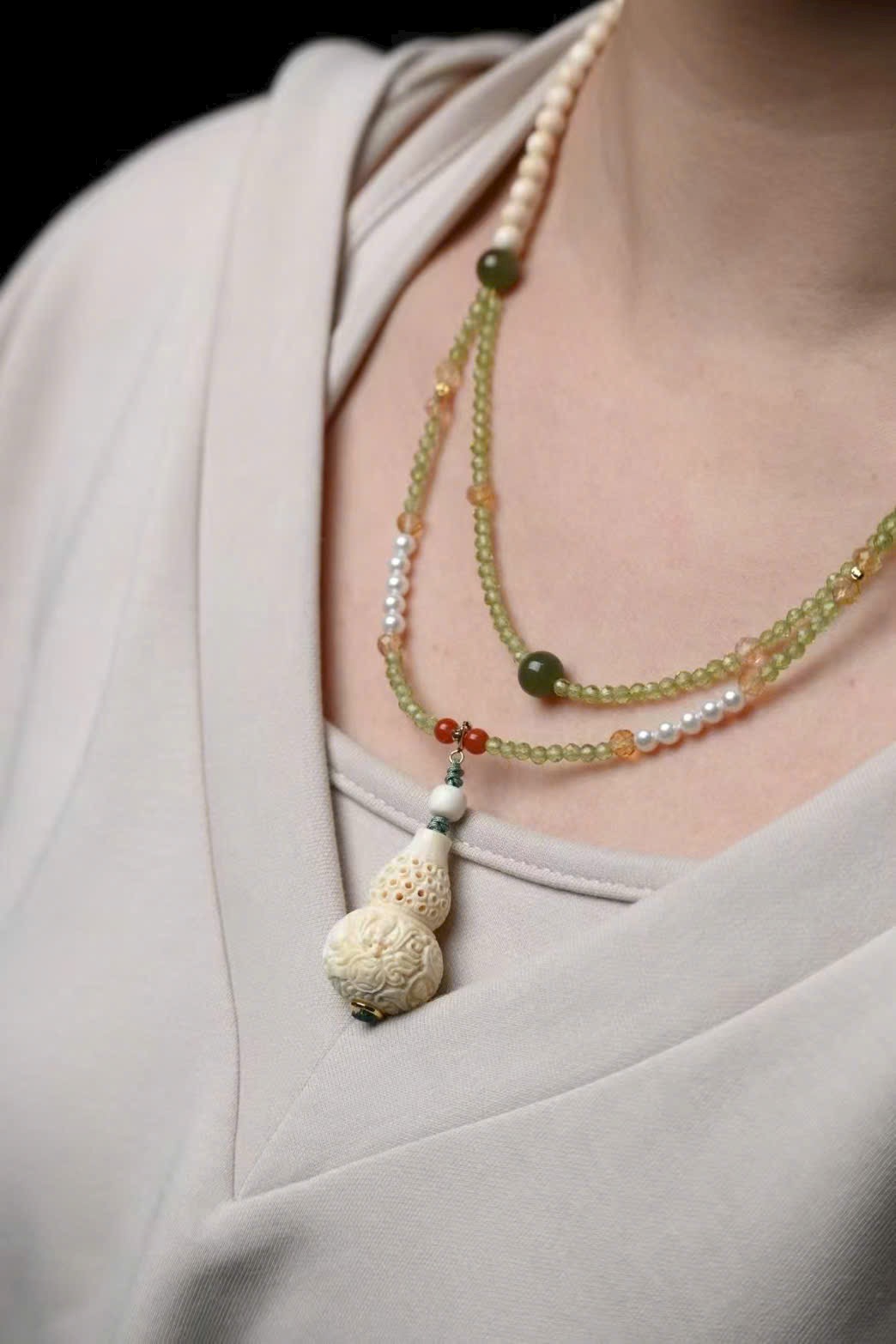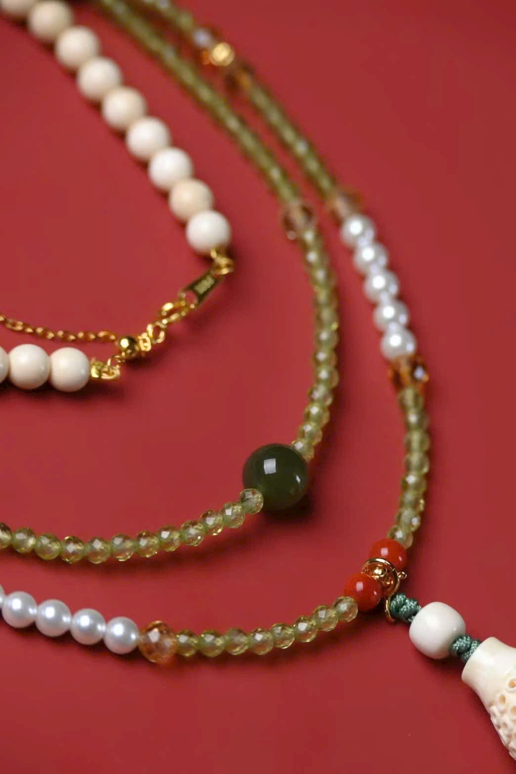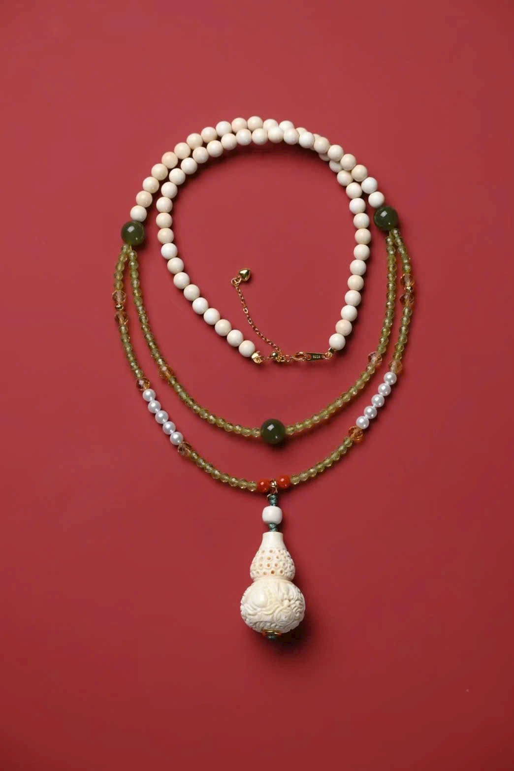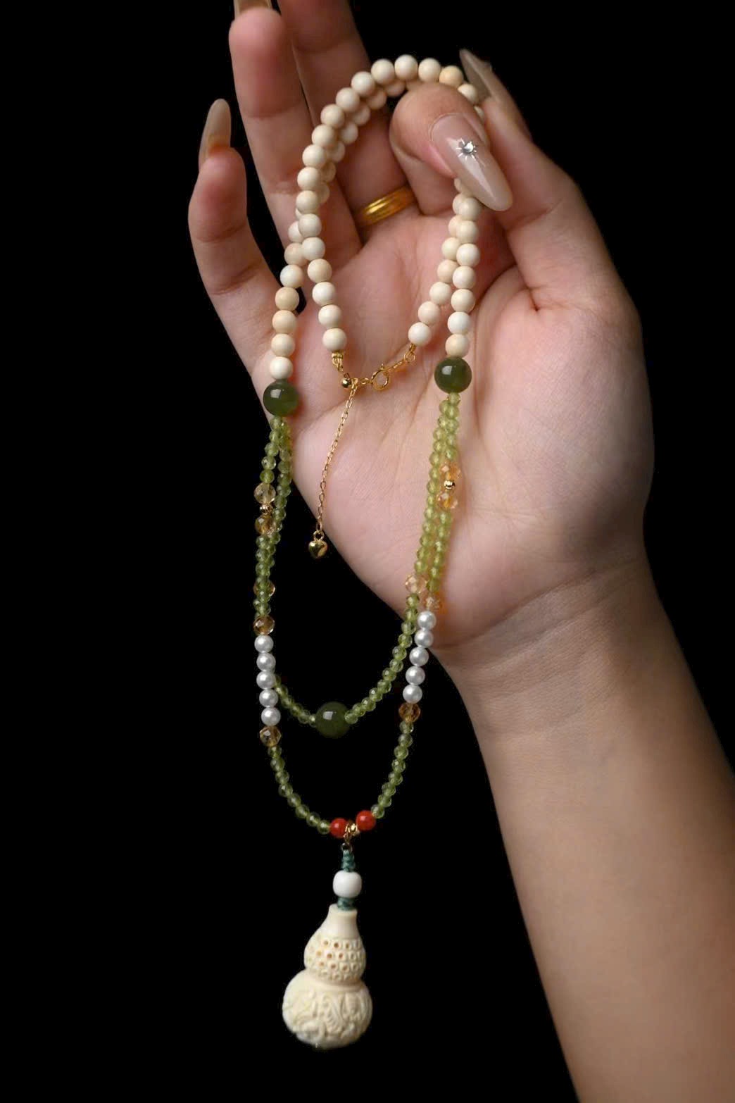 Được làm thủ công sáng tạo, kết hợp ngà voi mamut, ngọc Hoà Điền, thạch anh và khóa bạc 925 tiện tháo lắp, phù hợp đeo quanh năm!