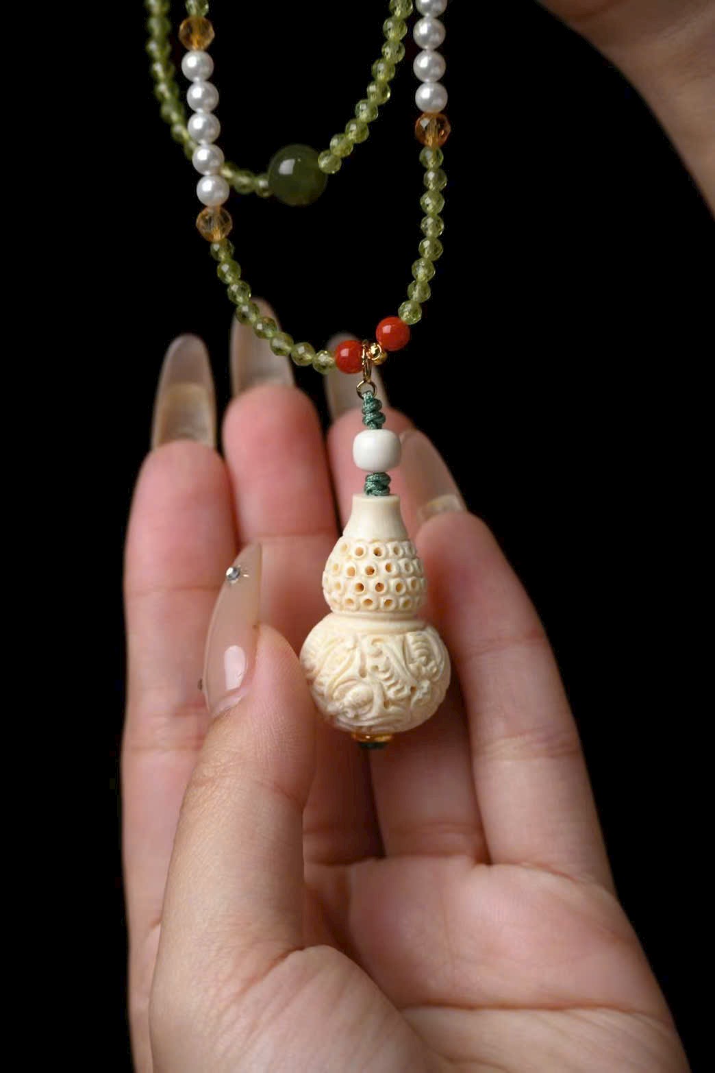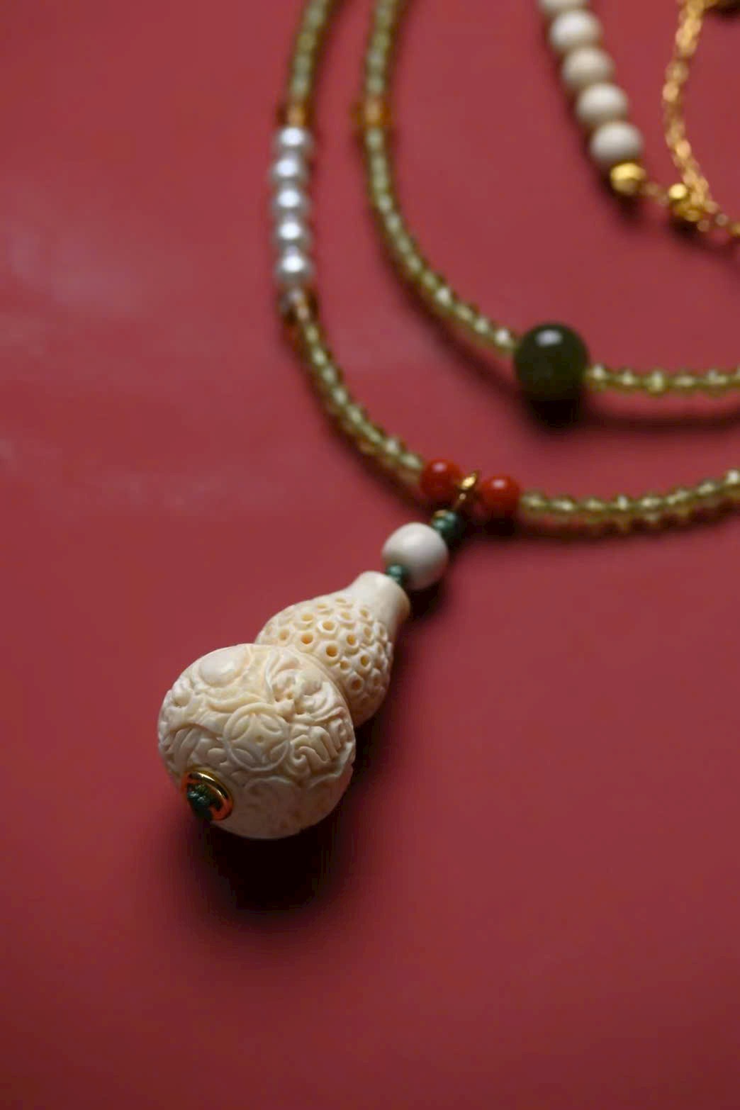 🌿 Mặt dây chuyền hồ lô “Phúc Lộc Song Thu” làm từ ngà voi mammoth nguyên khối, chạm khắc tinh xảo, khoét rỗng độc đáo, bốn mặt sắc nét tinh tế! Mang ý nghĩa tài lộc dồi dào, thu hút may mắn, trừ tà khí!