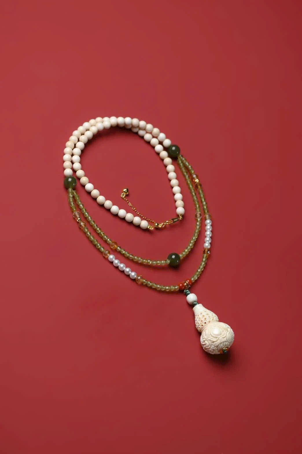 Được làm thủ công sáng tạo, kết hợp ngà voi mamut, ngọc Hoà Điền, thạch anh và khóa bạc 925 tiện tháo lắp, phù hợp đeo quanh năm!