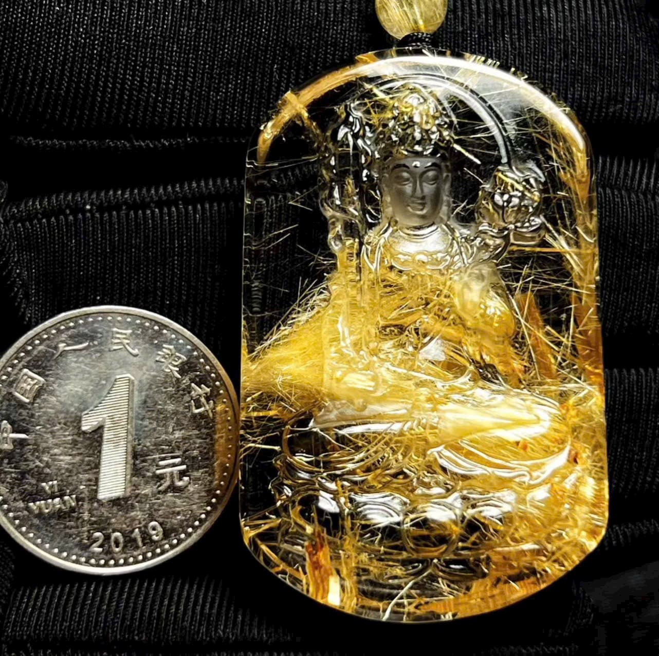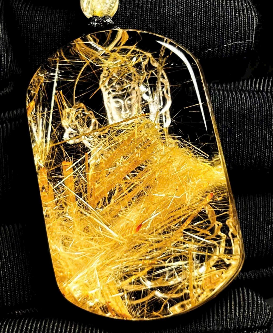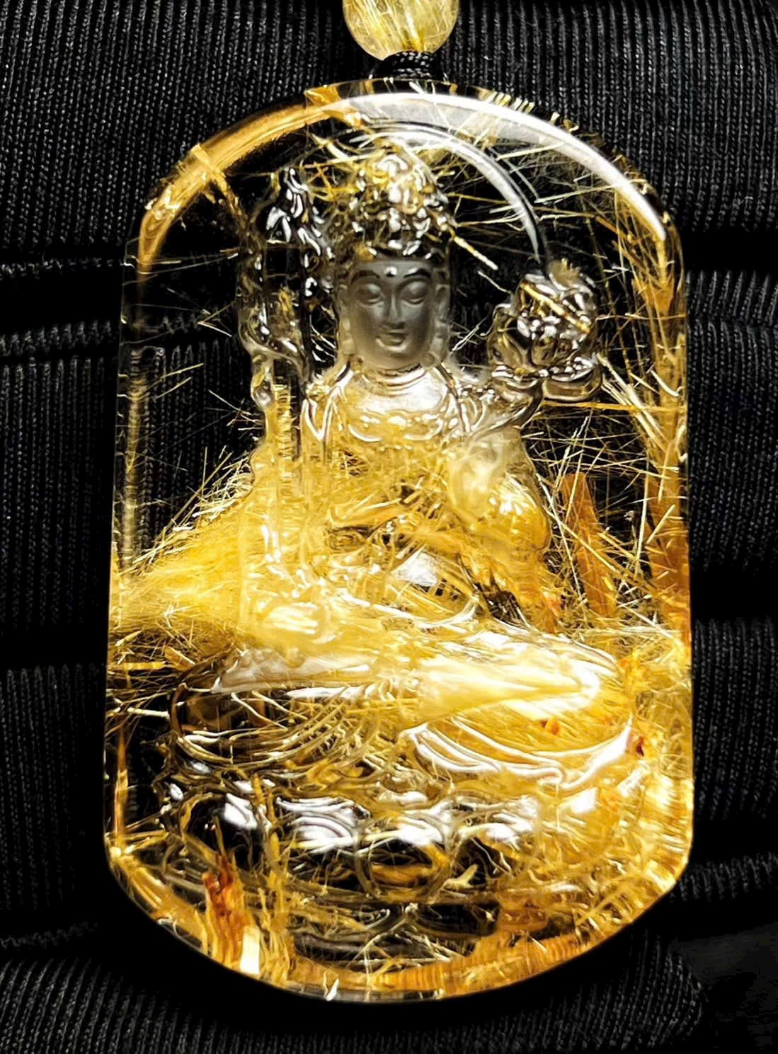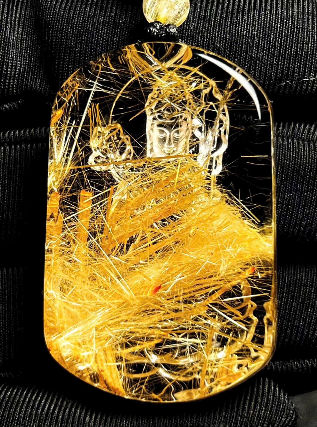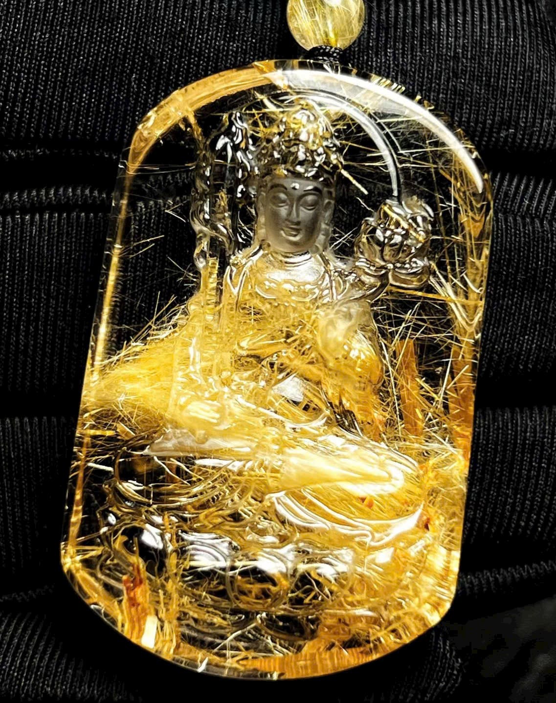 Chất liệu thạch anh tóc titan thiên nhiên làm hộ mệnh.