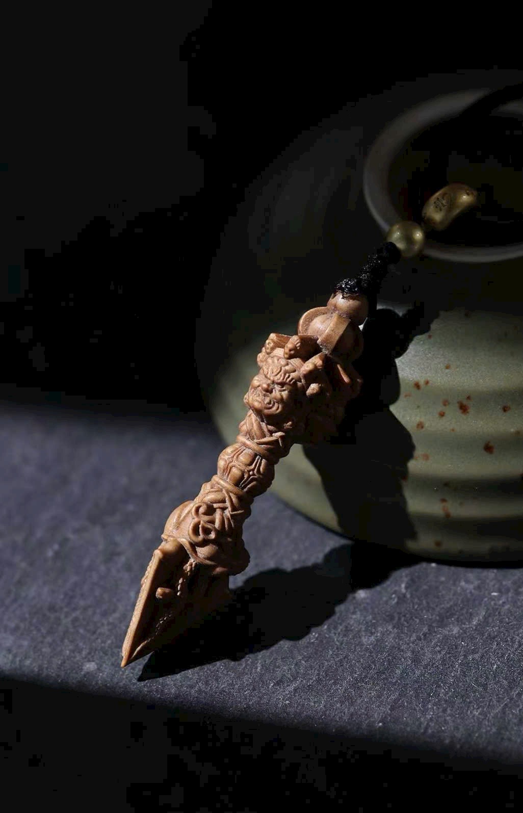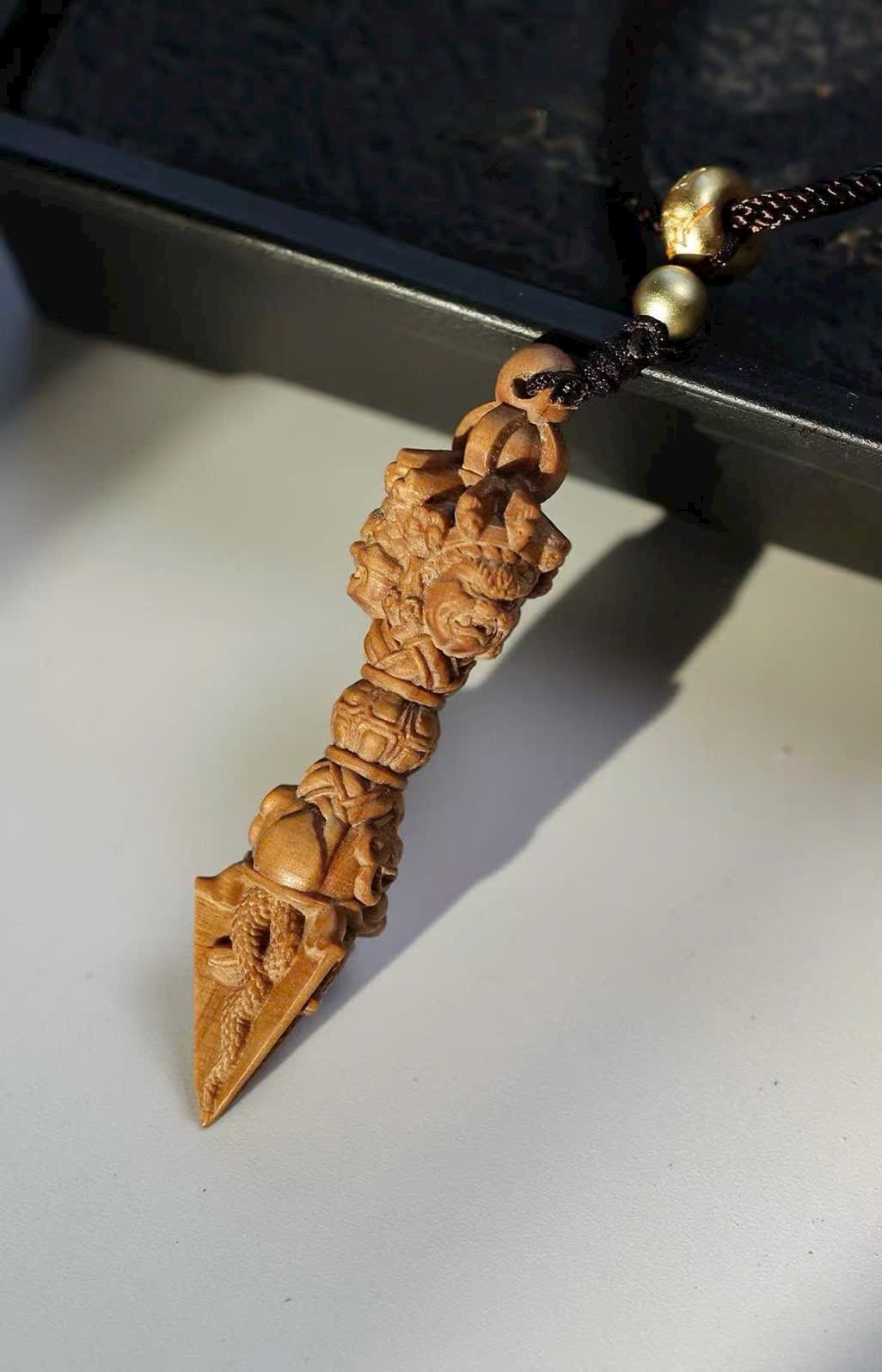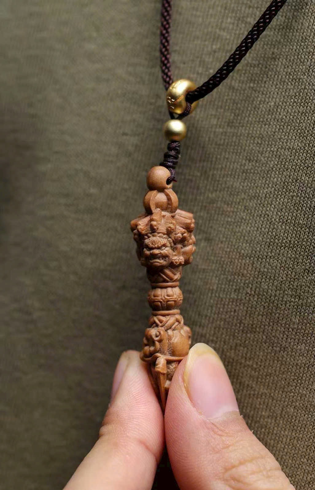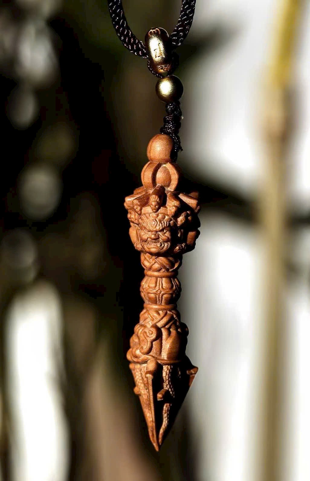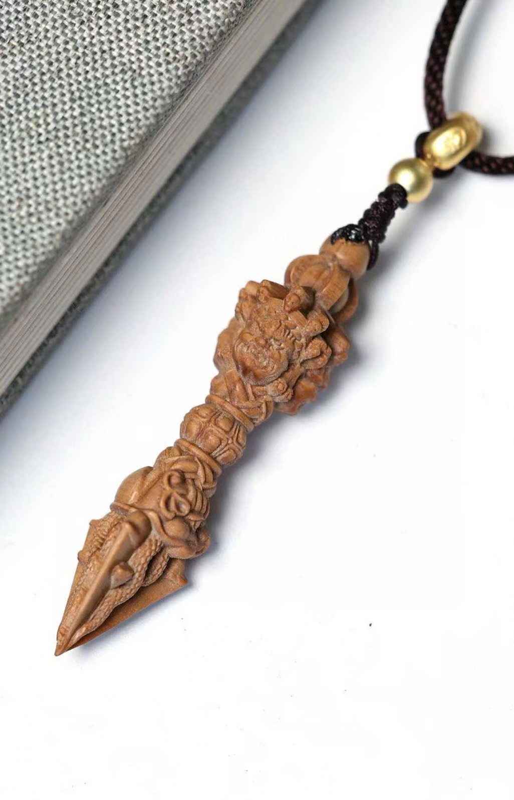 Mặt dây chuyền gỗ đàn hương Lão Sơn – Kim Cang Giáng Ma Chùy, phong thủy may mắn, phong cách dân tộc cổ điển