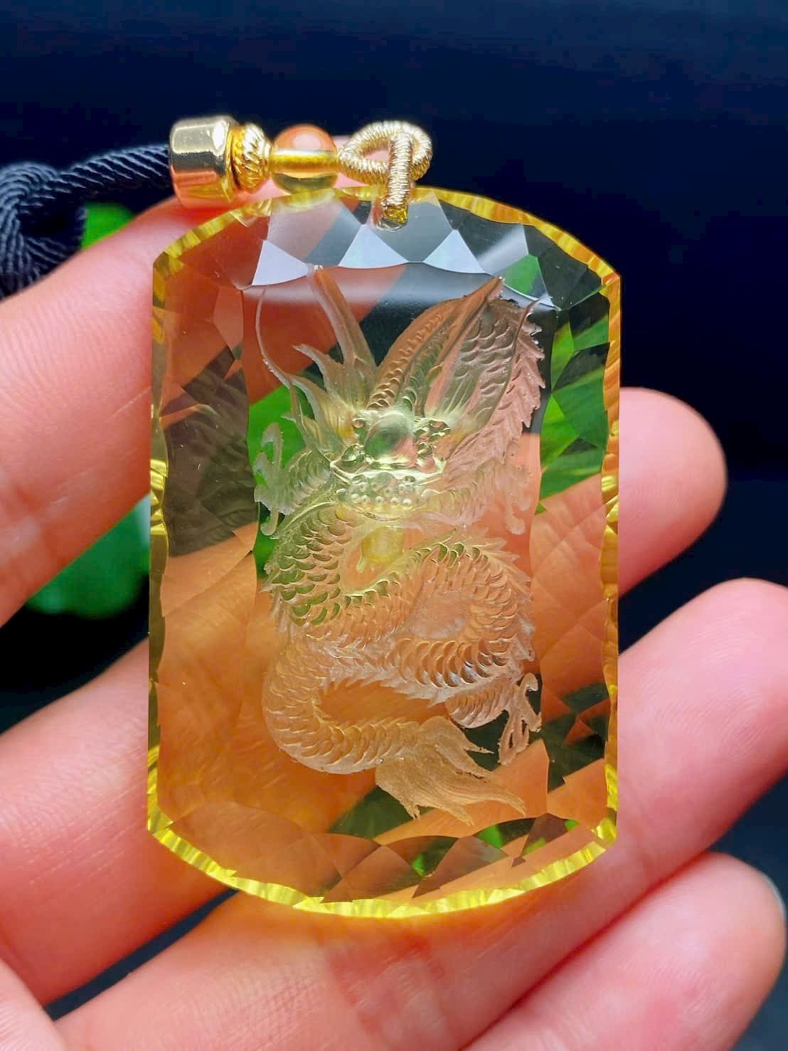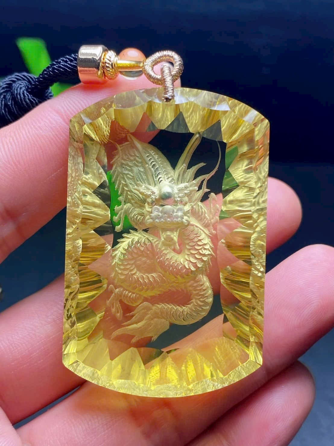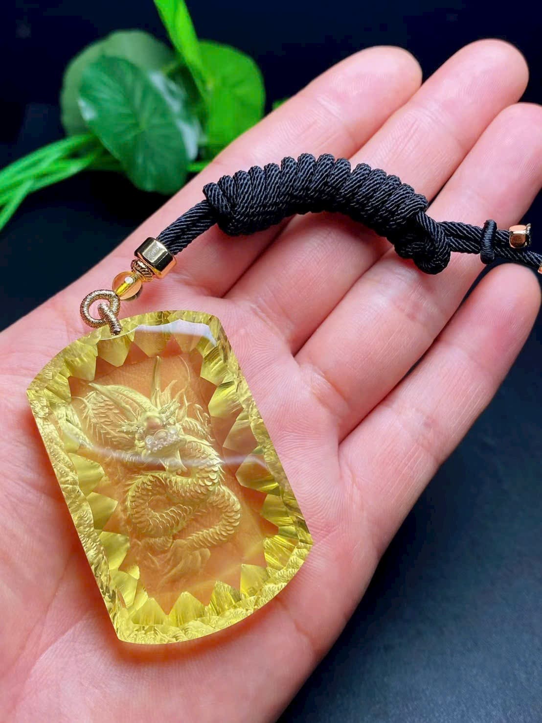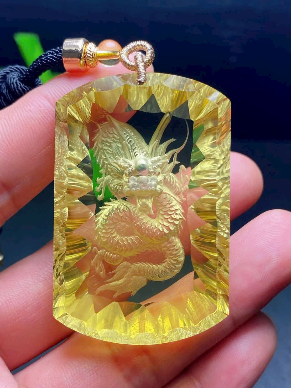 Mặt dây chuyền thạch anh vàng thiên nhiên nội điêu mặt rồng 🐲