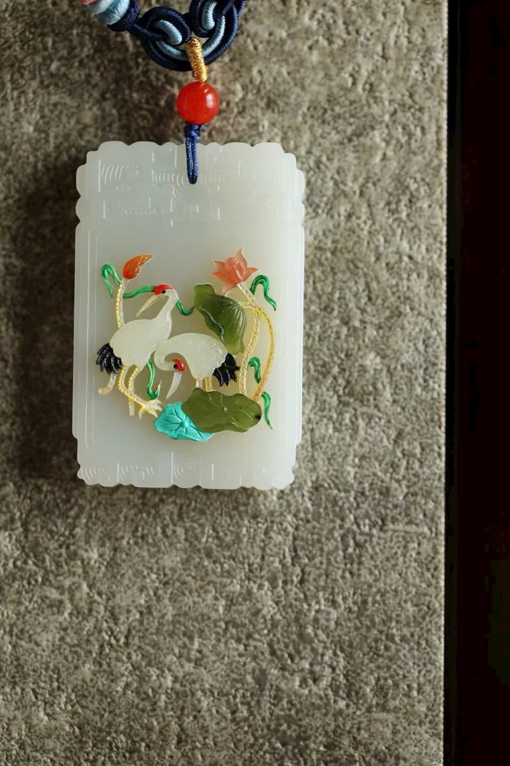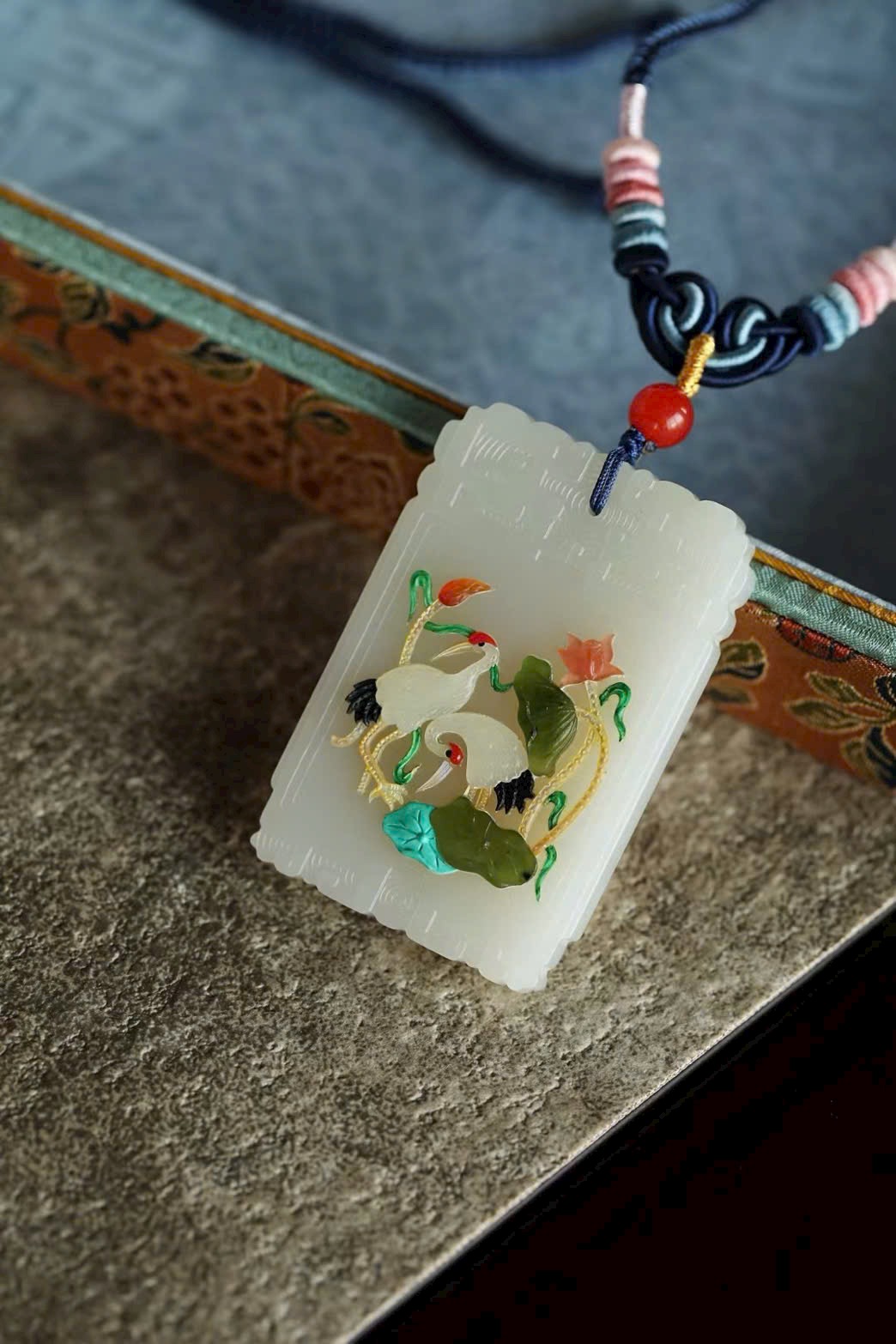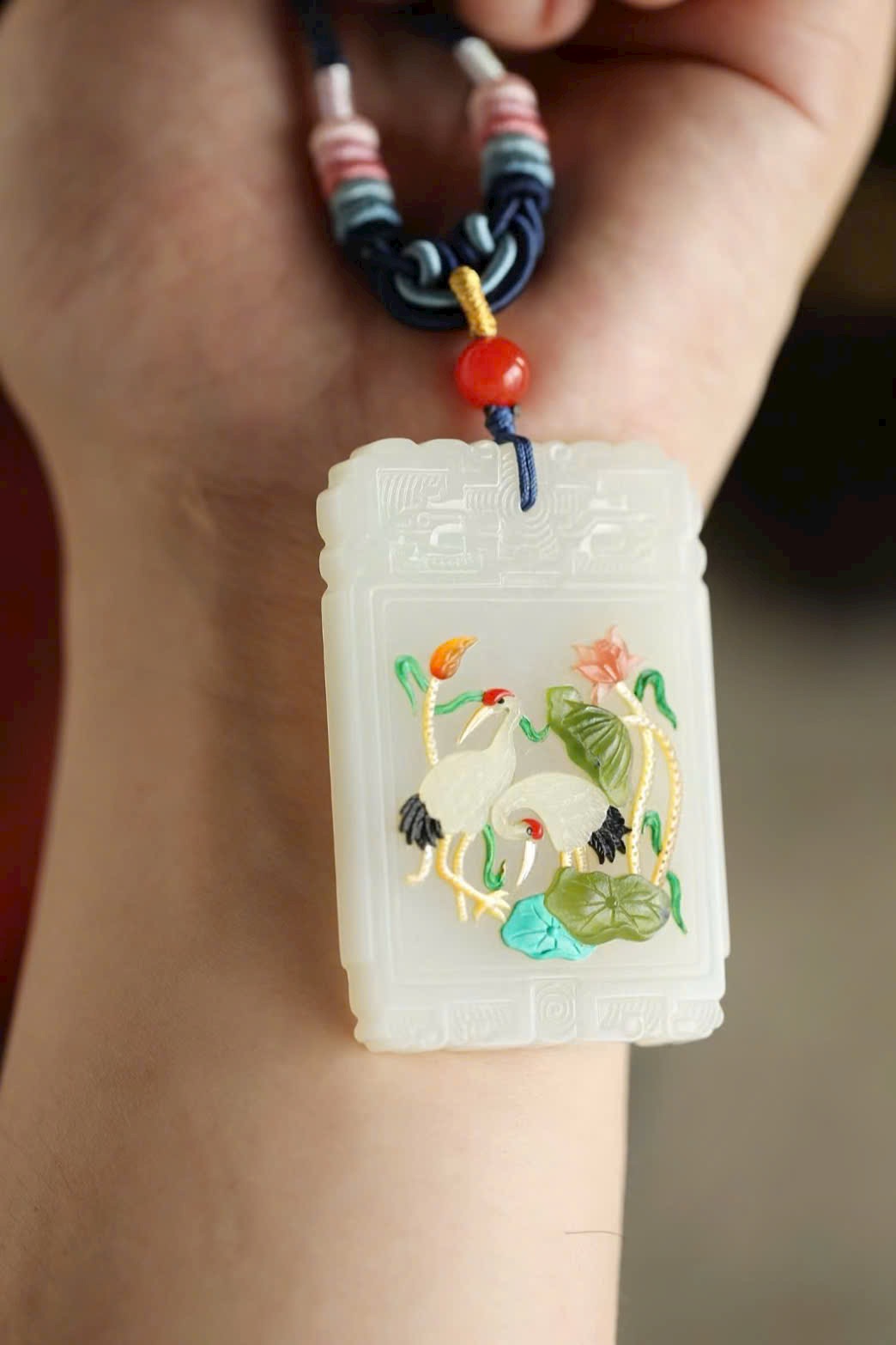🌿 Ngọc Hòa Điền, chất ngọc dầu bóng mịn màng, độ mỡ rất tốt. Mặt trước được khảm ghép từ các loại bảo thạch như ngọc phỉ thúy, lục tùng, bích ngọc, ngọc thạch, nam hồng… tạo thành bức tranh “hòa hợp mỹ mãn”. Mặt sau khảm chuỗi san hô, kiểu dáng tùy ý dễ phối, công năng đa dạng.
