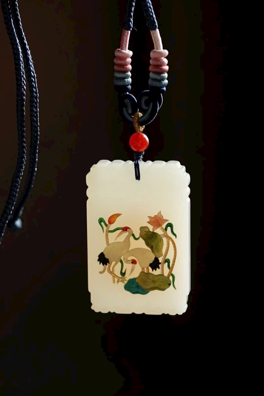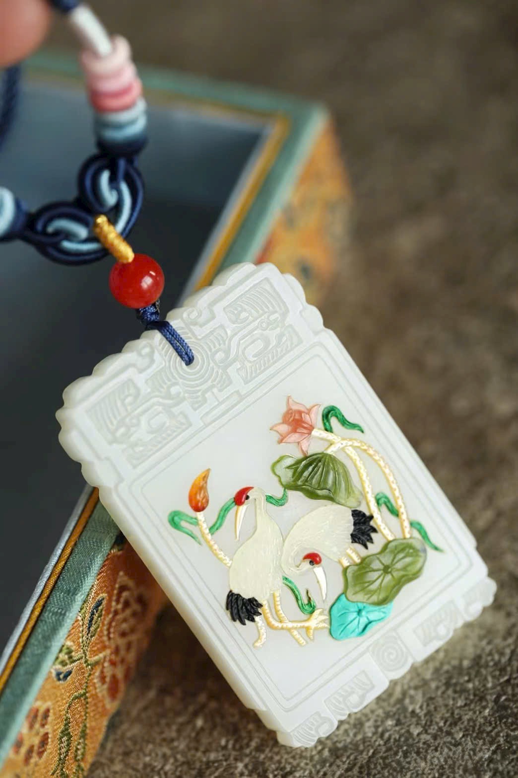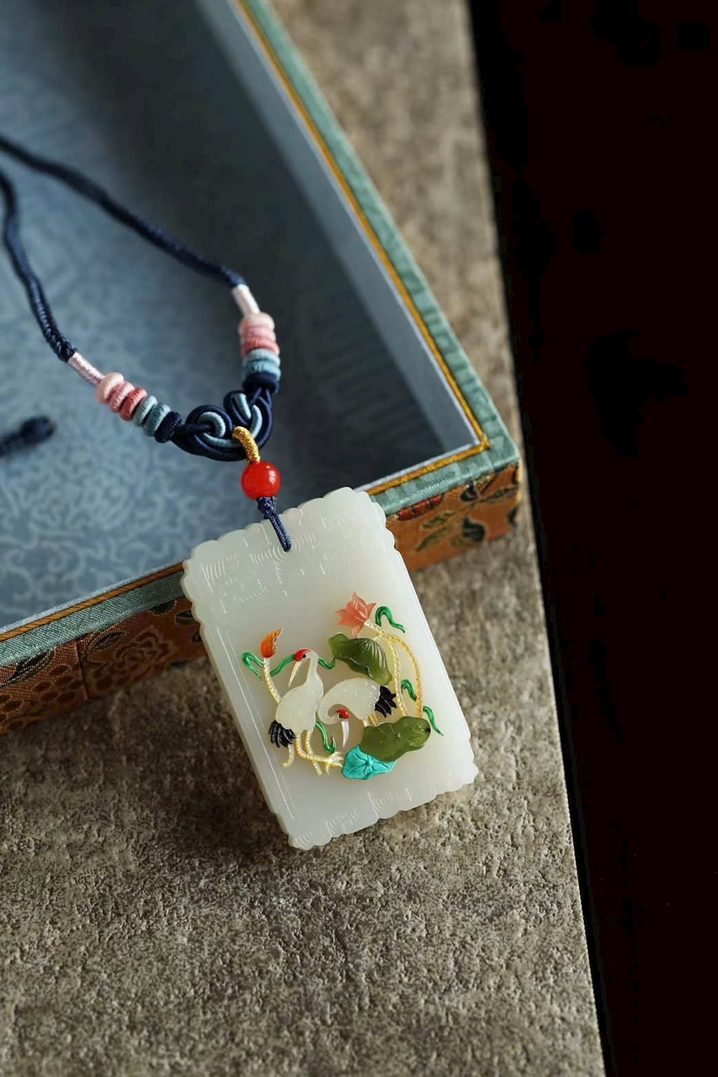 🌿 Ngọc Hòa Điền, chất ngọc dầu bóng mịn màng, độ mỡ rất tốt. Mặt trước được khảm ghép từ các loại bảo thạch như ngọc phỉ thúy, lục tùng, bích ngọc, ngọc thạch, nam hồng… tạo thành bức tranh “hòa hợp mỹ mãn”. Mặt sau khảm chuỗi san hô, kiểu dáng tùy ý dễ phối, công năng đa dạng.
