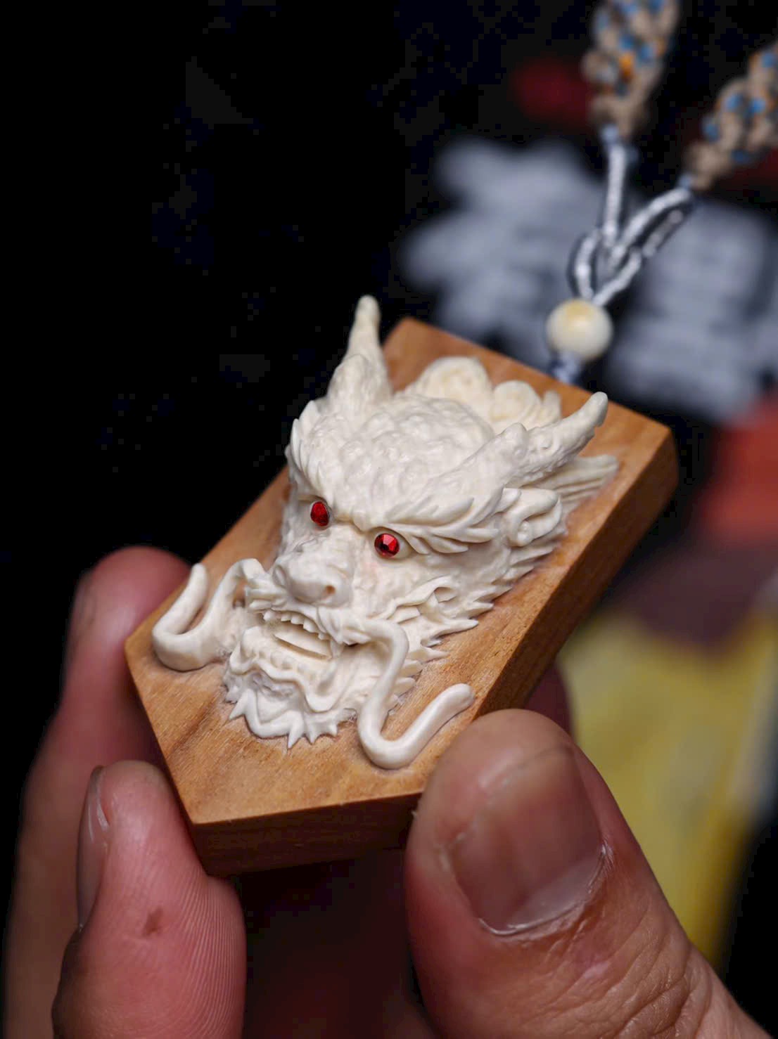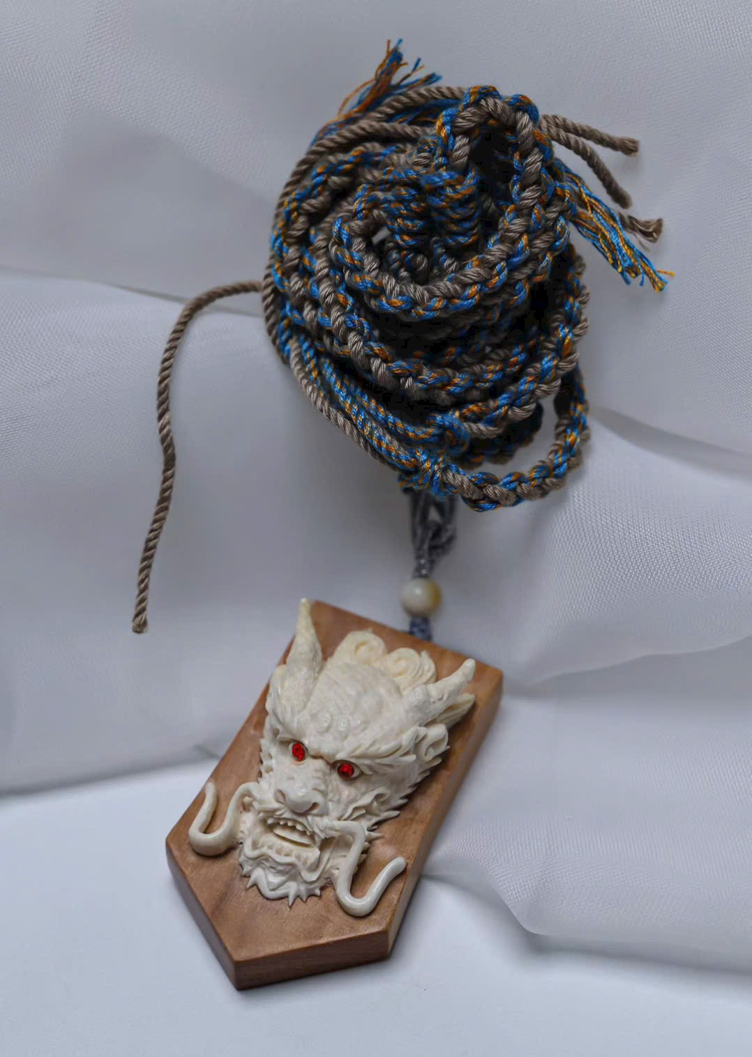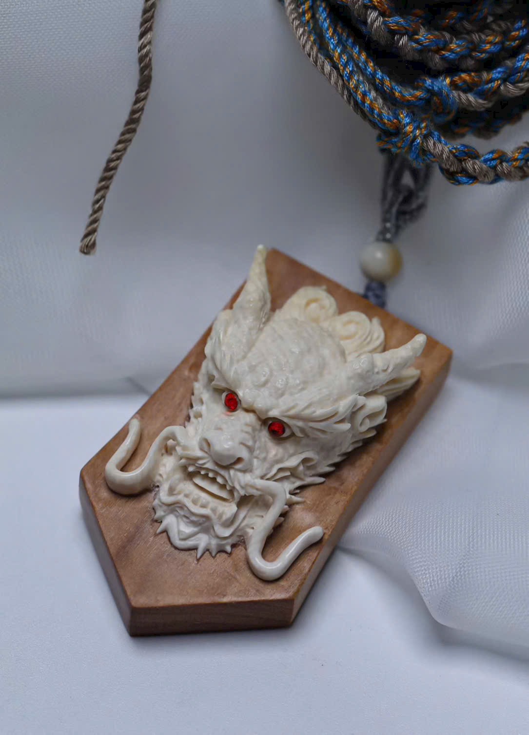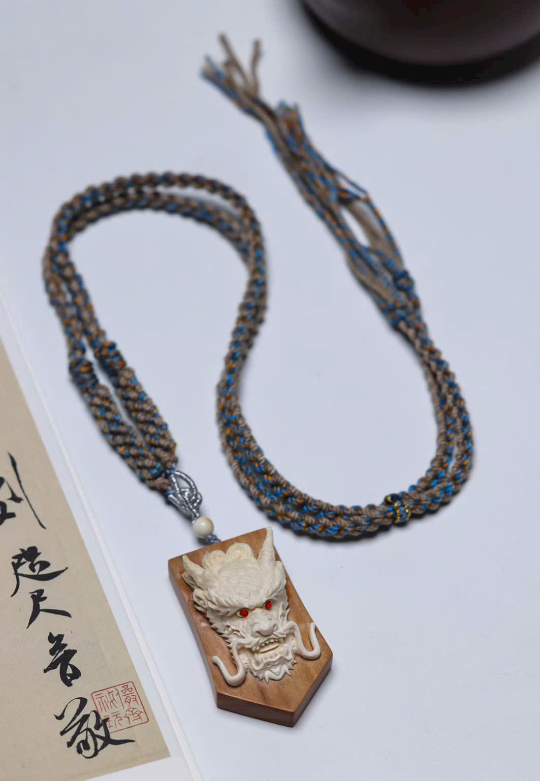 Rồng m.a mút “Rồng” khảm bài lệnh đàn hương, chạm khắc thủ công 3D toàn phần, thần thái sống động như thật, phong thái trầm ổn – uy nghi. Phối dây bện thủ công phong cách Tây Tạng, đeo thoải mái, sang trọng, phù hợp cả sưu tầm lẫn sử dụng hàng ngày.