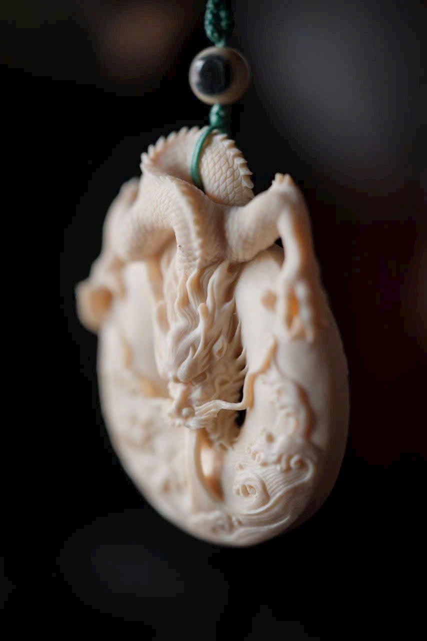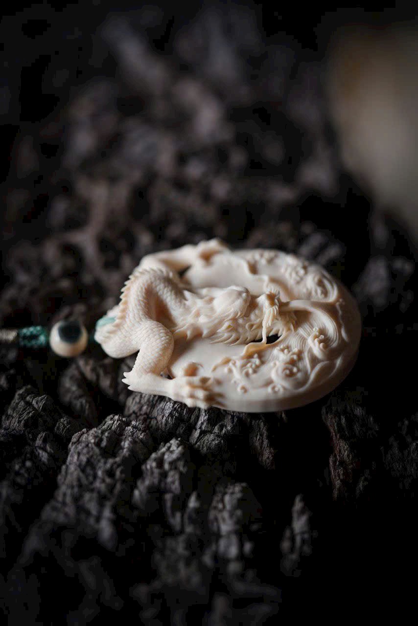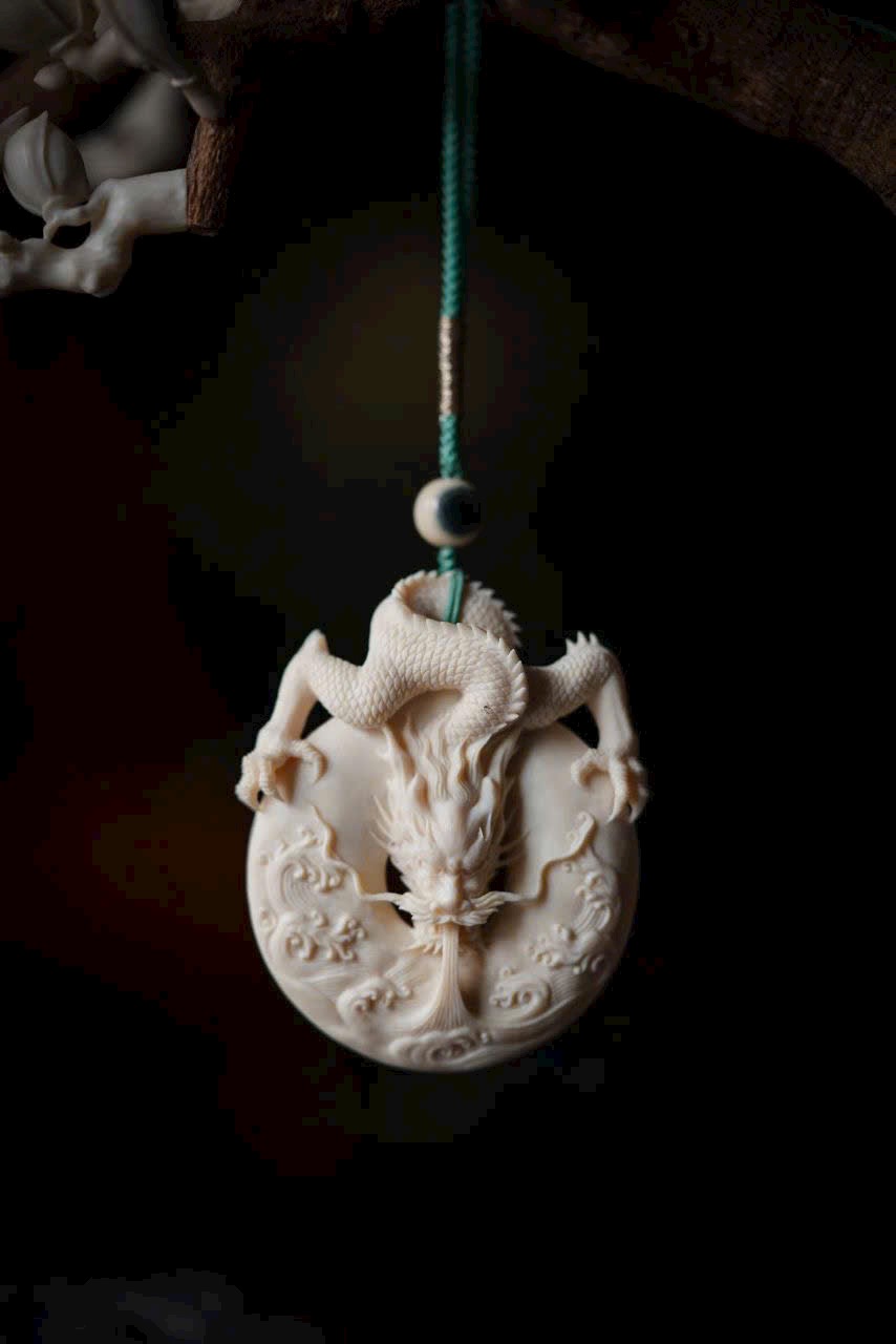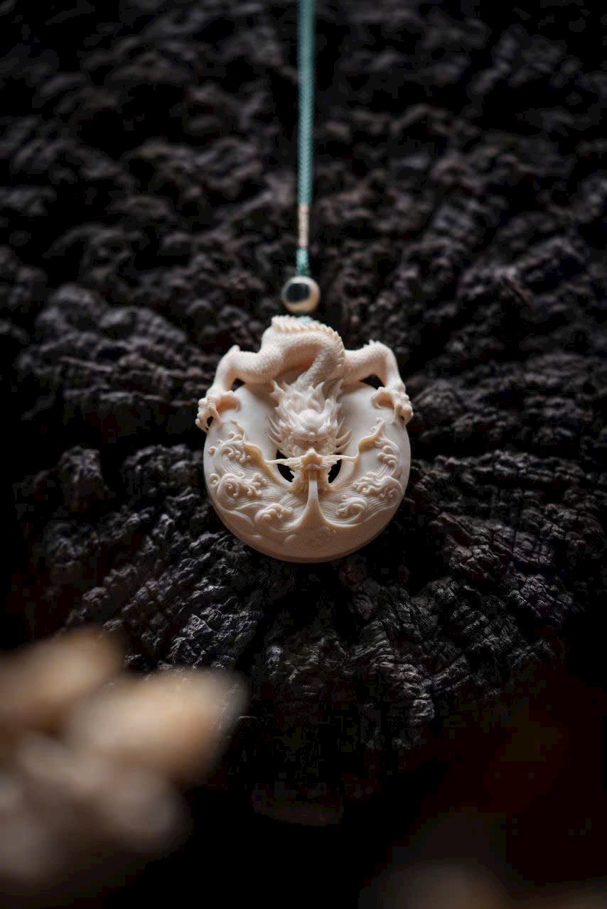 Chất liệu sáng trong, đường đao mạnh mẽ ẩn chứa khí lực. Hình tượng rồng uốn lượn xuyên mây ngậm châu, vảy vuốt bay lượn như mang theo gió. Khi đeo trước ngực có thể trấn định tâm thần, mang theo bên mình như đồng hành cùng điềm lành.