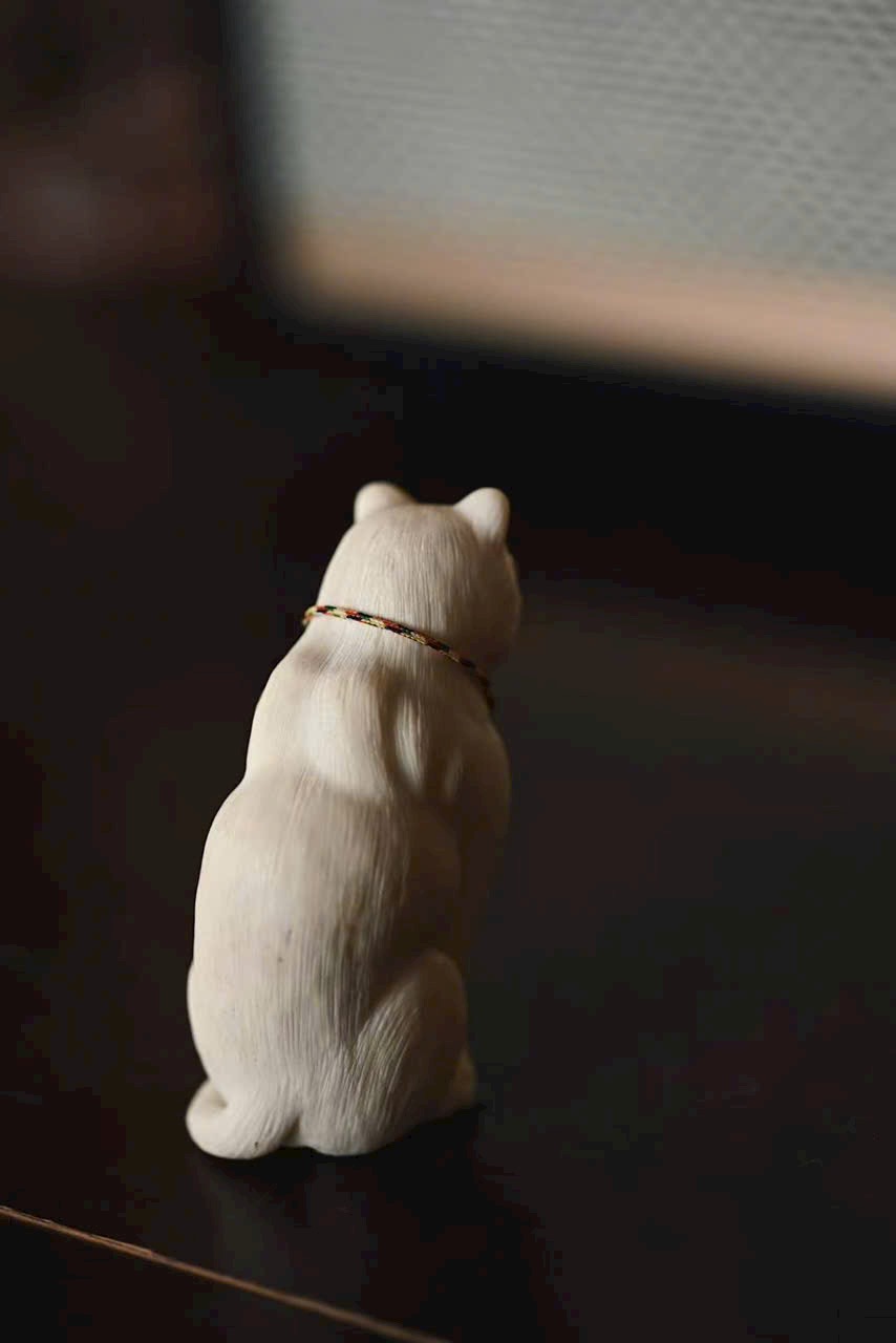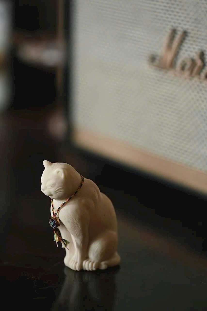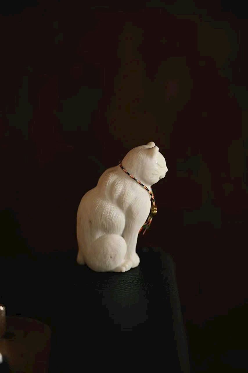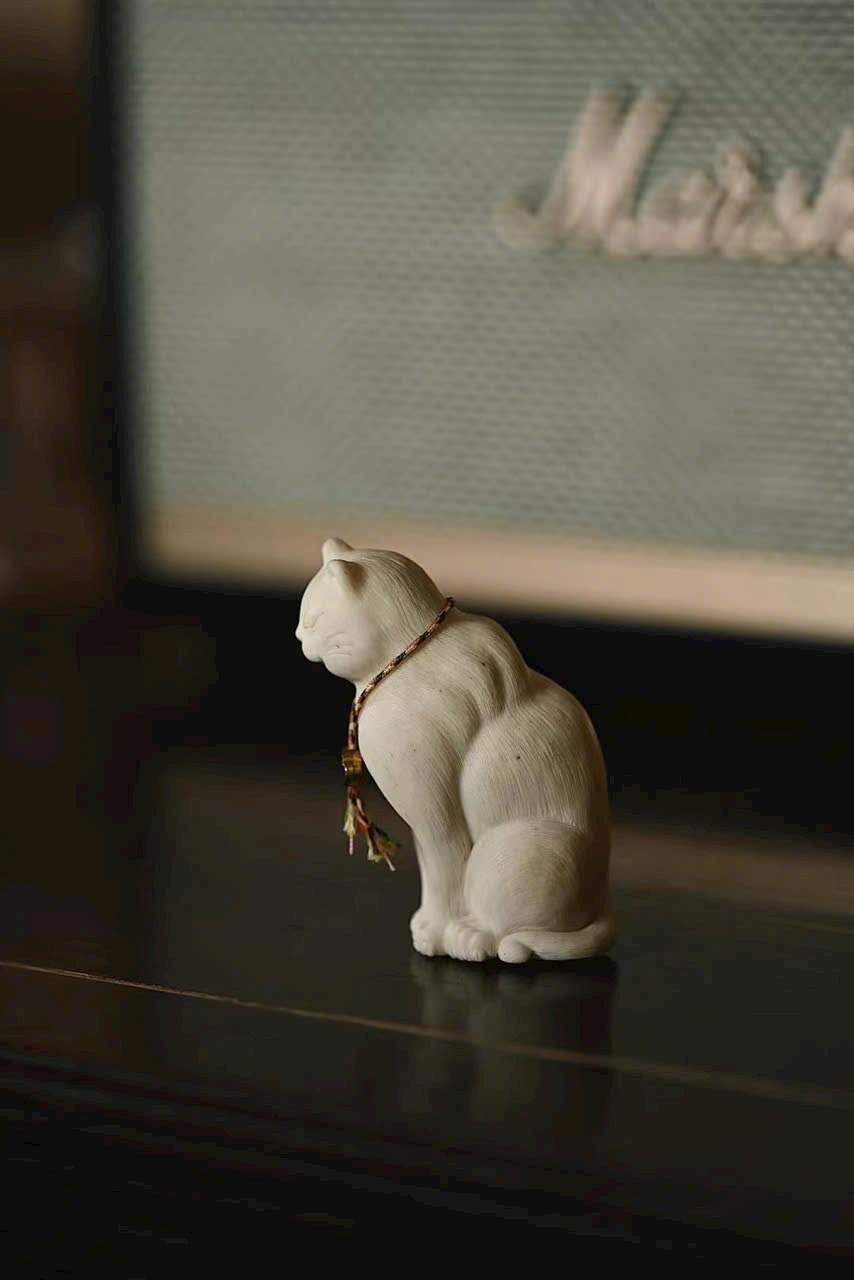 Tác phẩm điêu khắc thủ công tinh xảo, từng sợi lông mèo được khắc mềm mại tự nhiên.