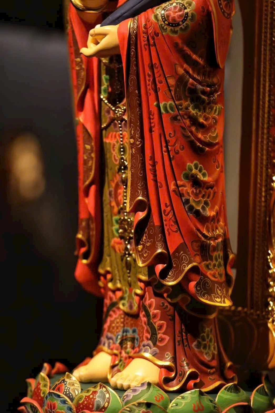 Nam Hải Quán Âm - Gỗ Chương mộc vẽ gấm dát vàng 24K