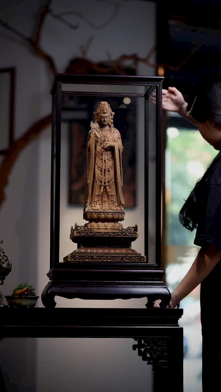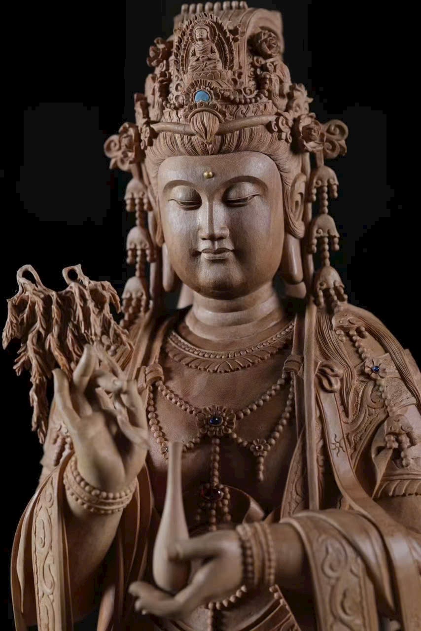 🌿 【Nam Hải Quan Âm – Tác phẩm điêu khắc thủ công từ gỗ đàn hương Lão Sơn Ấn Độ, lõi đen, loại chìm nước】