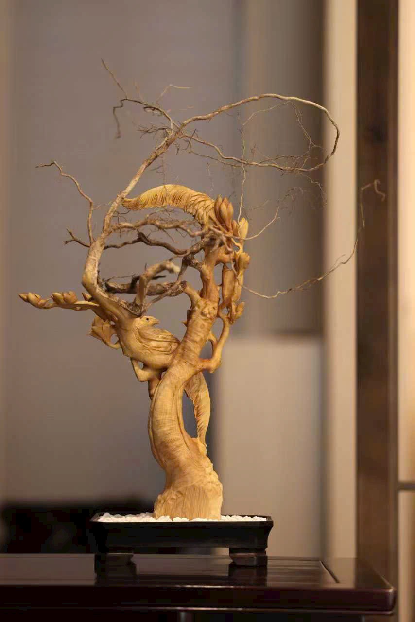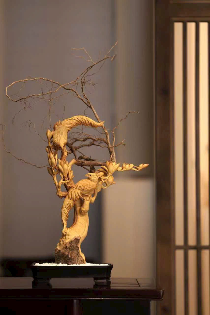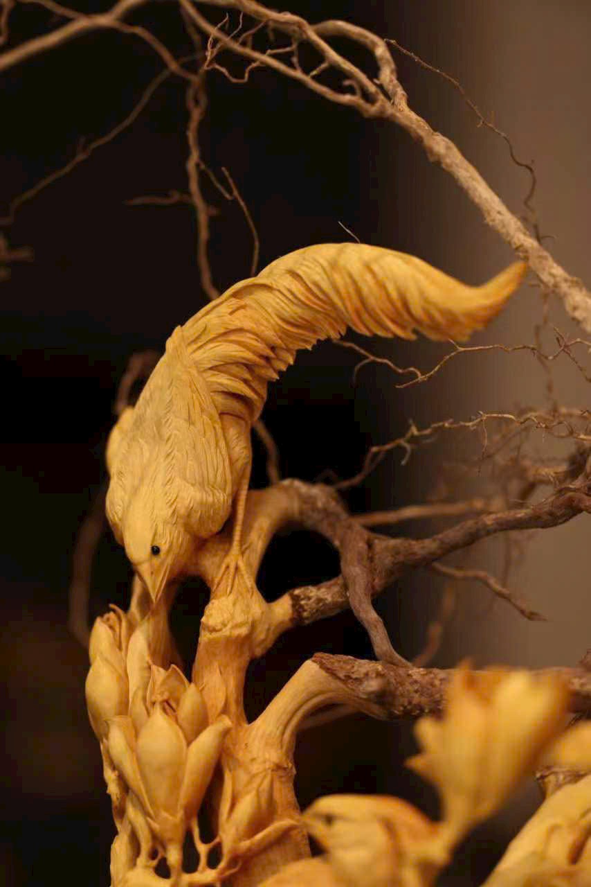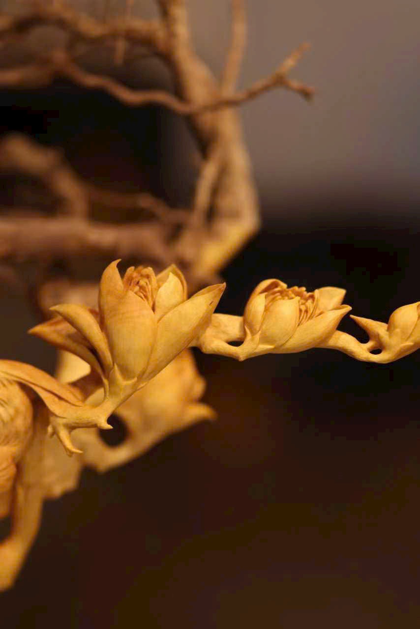 Chạm khắc theo đường vân gỗ, tận dụng thế tự nhiên của vật liệu, họa tiết linh hoạt sinh động. Cành hoa ngọc lan uốn lượn, chim phúc báo tin vui, tràn đầy sức sống và vẻ đẹp thiên nhiên. Mang ý nghĩa Ngọc Đường Phú Quý, đem lại điềm lành và thịnh vượng cho gia cư.