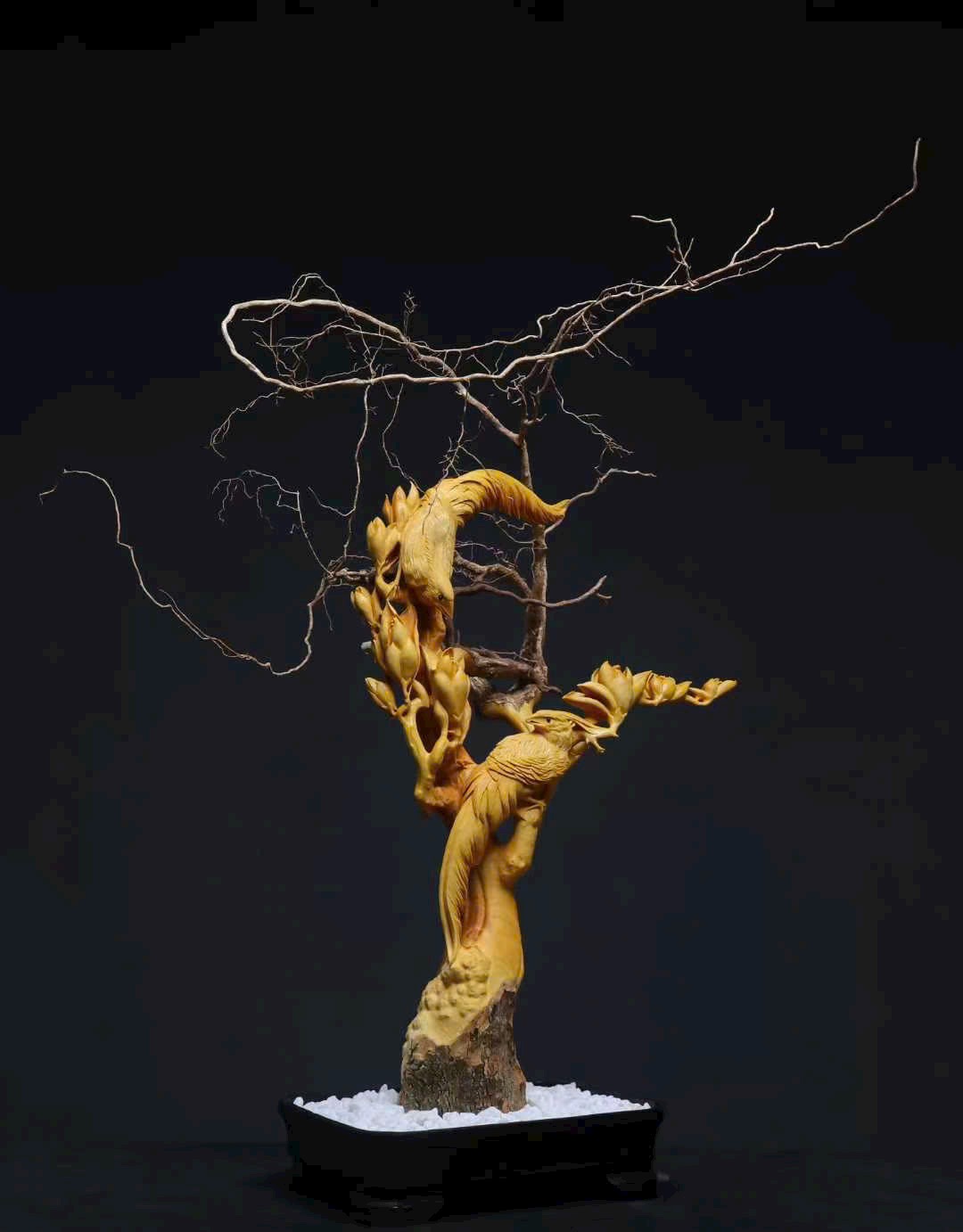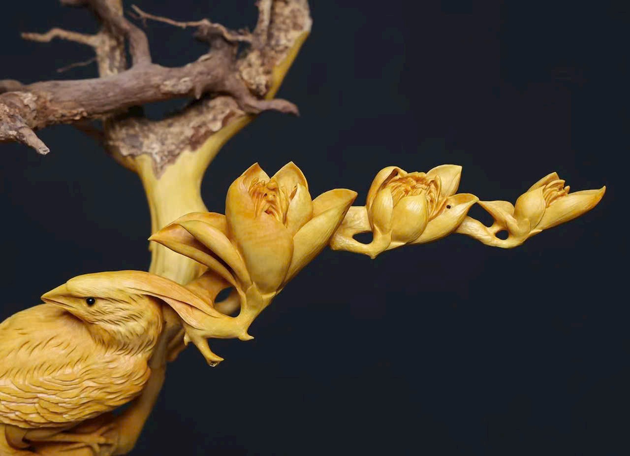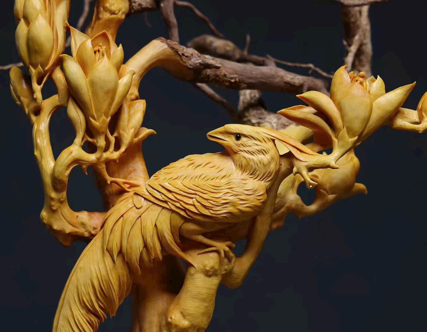 Tác phẩm được chạm khắc thủ công nguyên khối, một gỗ liền mạch không ghép, áp dụng kỹ thuật tròn khối, đường nét tinh xảo – chắc tay. Phẩm tướng hoàn mỹ, không tì vết, mang ý nghĩa phú quý cát tường, hỷ sự nhân đôi, rất phù hợp trang trí nhà ở, phòng khách, hoặc sưu tầm.