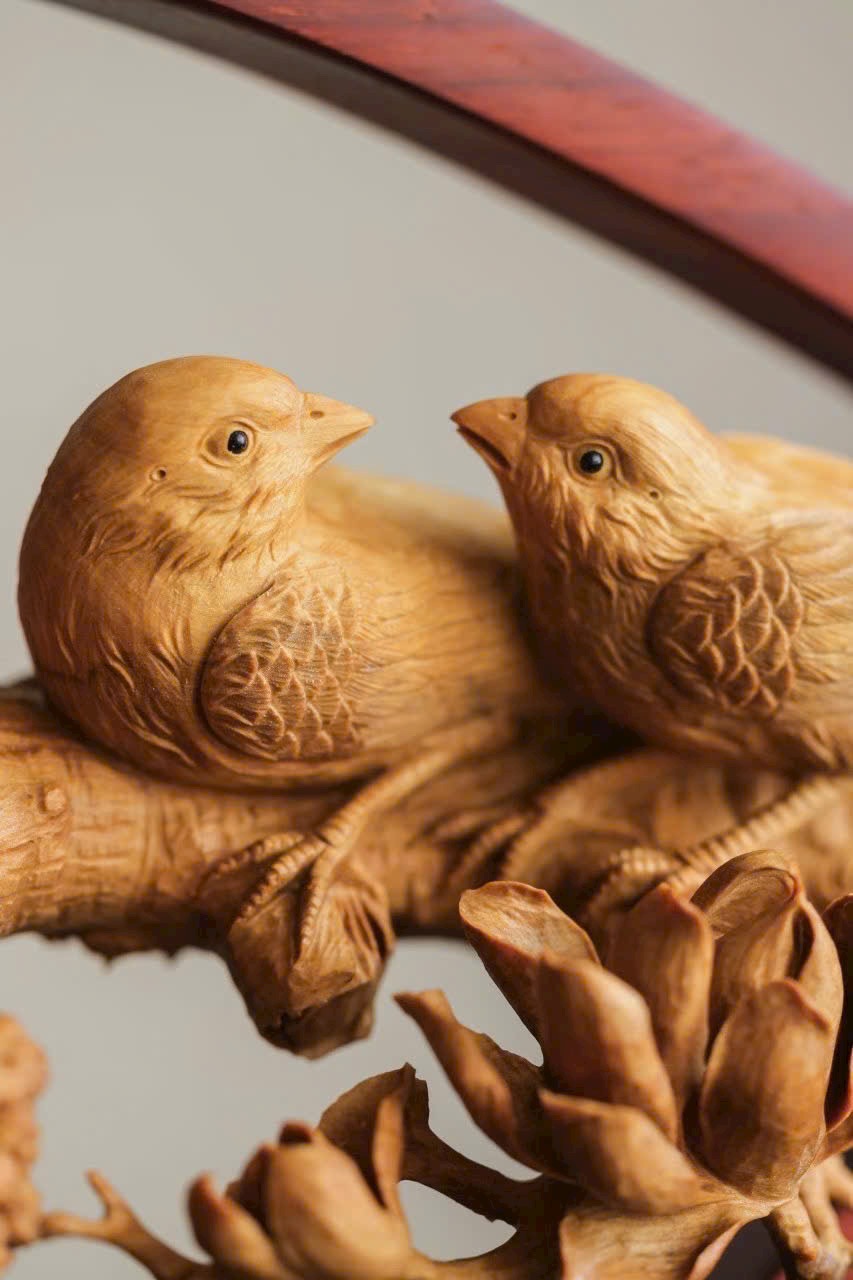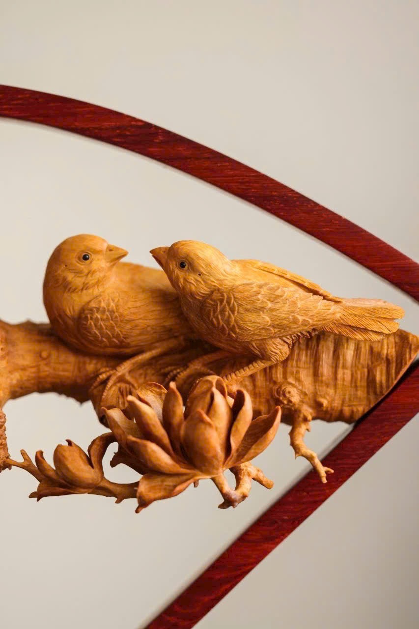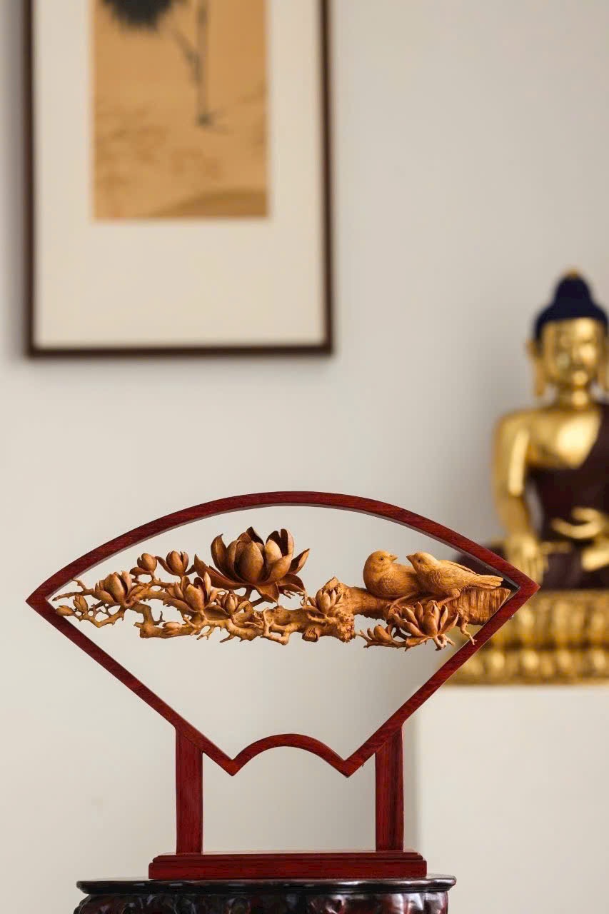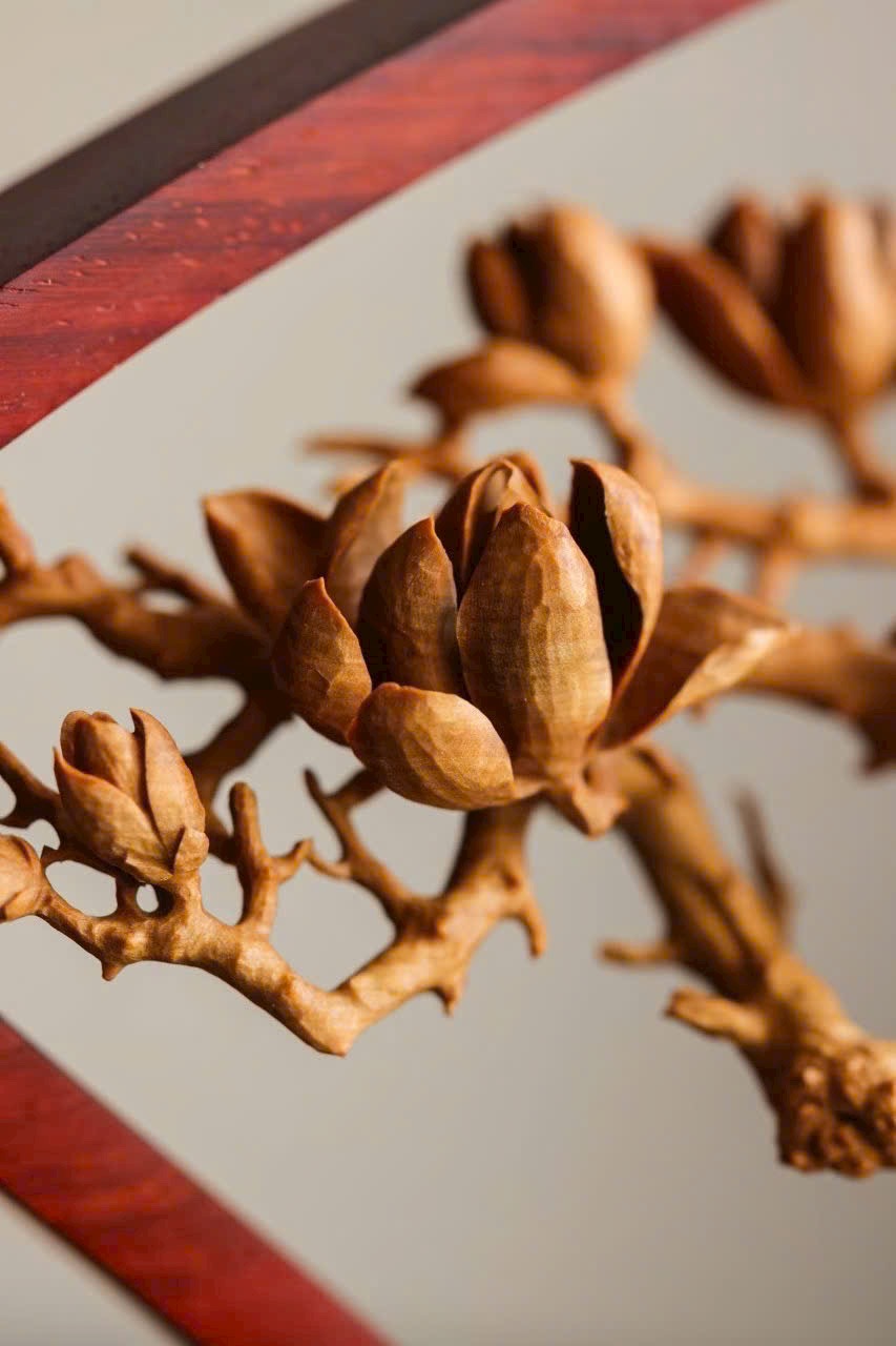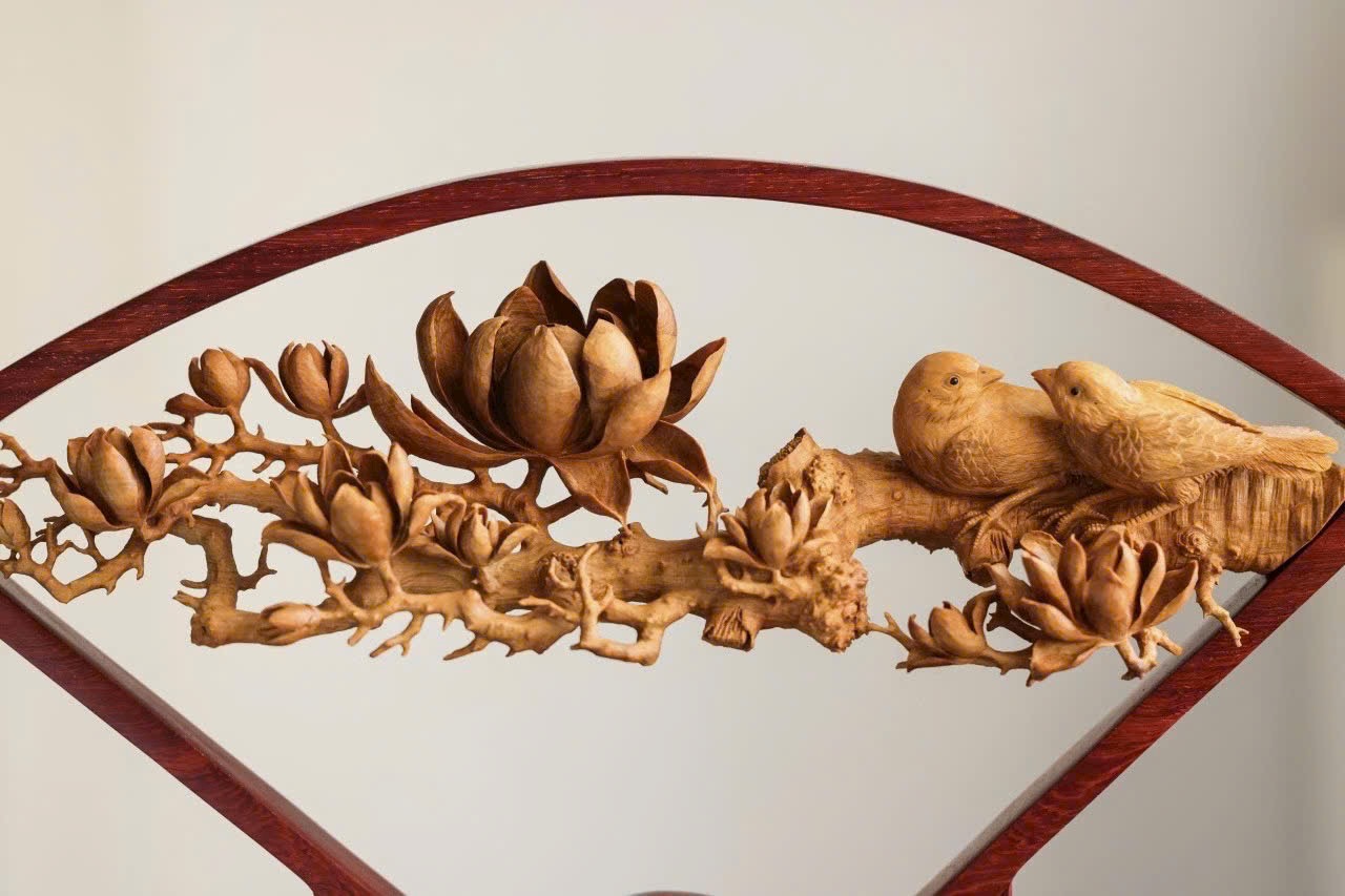 Tận dụng dáng liệu tự nhiên để điêu khắc, khéo léo mượn thế, hoa văn và đường nét biến hóa linh động. Cành ngọc lan vươn dài, tràn đầy sức sống và nét thanh nhã tự nhiên, mang ý nghĩa ngọc đường phú quý, gia trạch cát tường.