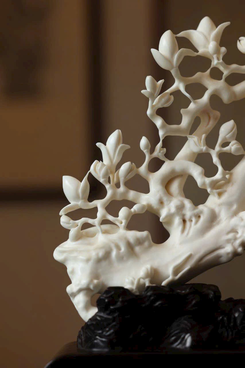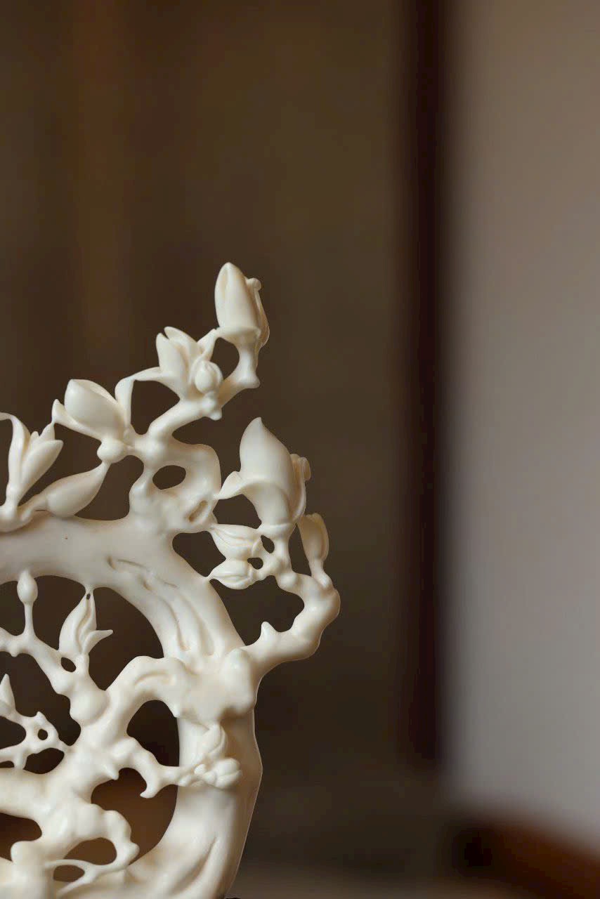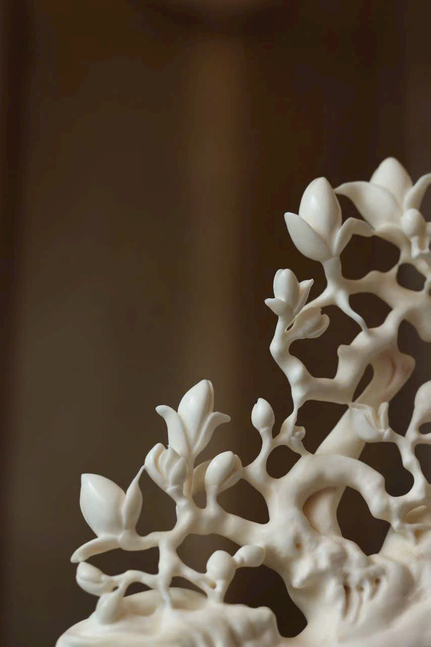 Lấy ý nghĩa phú quý của hoa ngọc lan làm chủ đề, tác phẩm được chạm khắc tinh xảo, khéo léo. Sắc trắng thanh nhã, màu ngọc non trong trẻo, linh động. Hoa và lá nở xếp đoan trang, tầng lớp hài hòa, nhụy như chuỗi ngọc xanh, long lanh tựa giọt sương. Bày trong không gian văn phòng – thư án, toát lên vẻ thanh tú, nhã nhặn, dư vị bền lâu, phong vận riêng biệt.