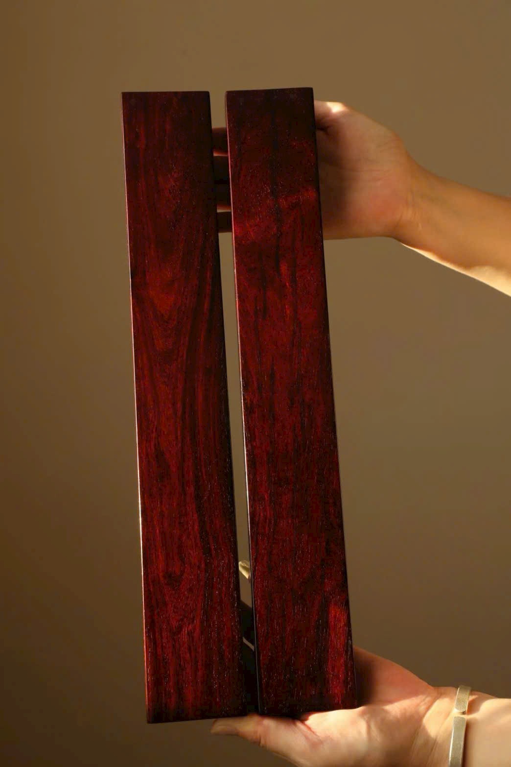 Tác phẩm được chế tác từ gỗ tử đàn tiểu diệp Ấn Độ lấy từ gỗ nhà cổ tháo dỡ, chất liệu quý hiếm lâu năm.