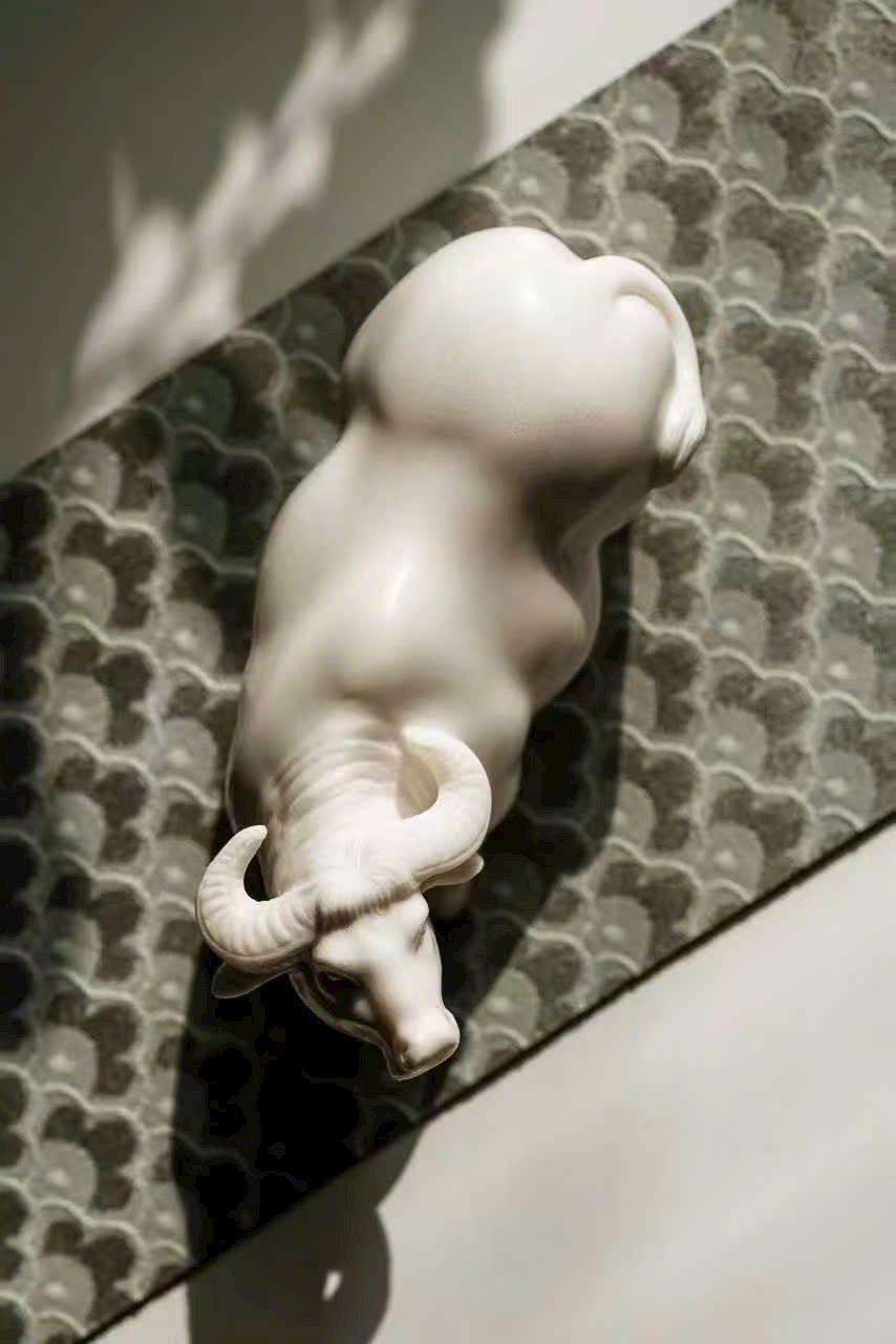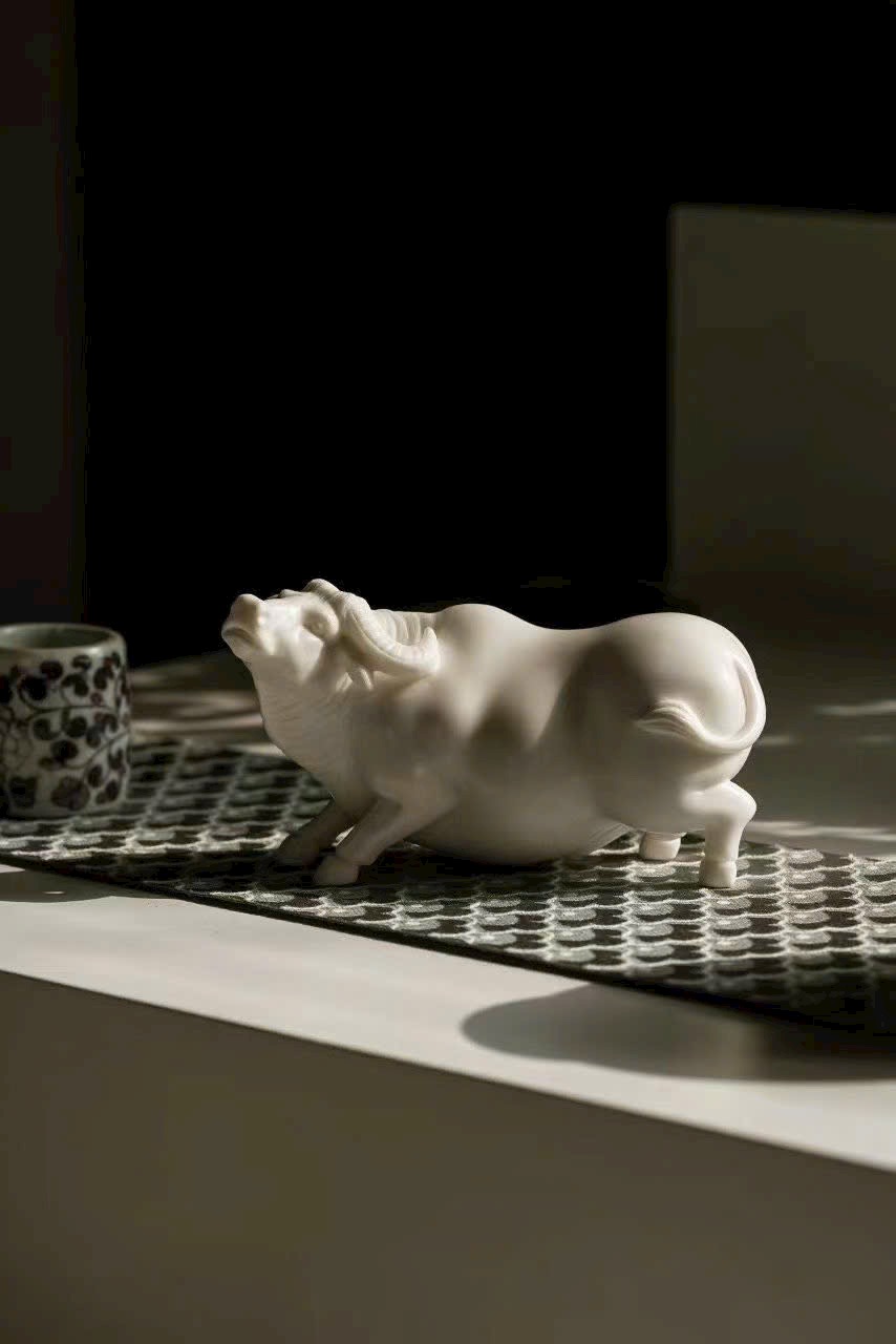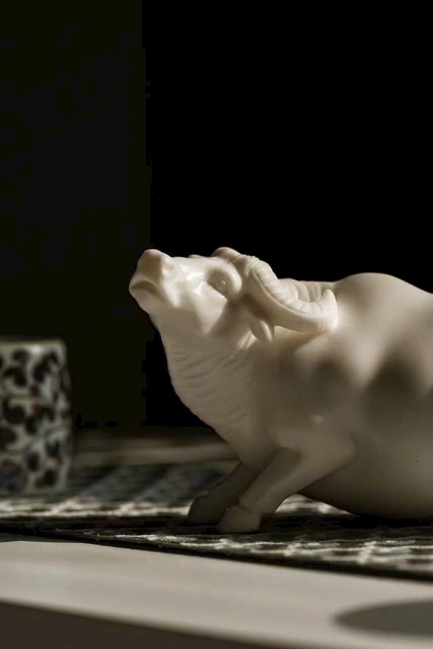 Tác phẩm thủ công tinh xảo, đường đục chạm truyền thần, khắc họa dáng trâu khỏe khoắn vững chãi, động thái sinh động như thật. Tựa “lão ký phục lý”,ẩn chứa khí vận hưng thịnh và sức sống bền bỉ. Tác phẩm mang phong vị mộc mạc tự nhiên, ý nghĩa cát tường — biểu trưng cho công danh thuận lợi, tài vận hanh thông, thích hợp trưng bày thưởng ngoạn hoặc làm quà tặng trang nhã.