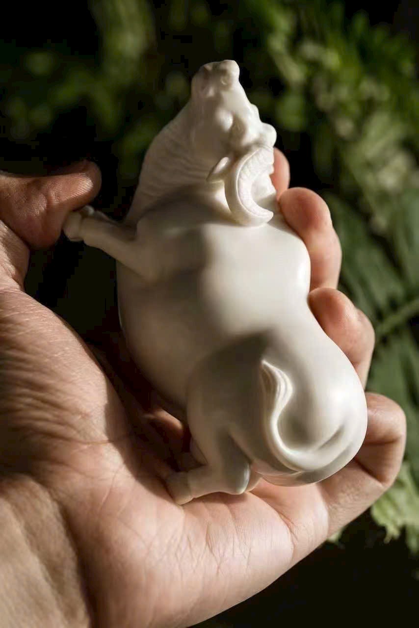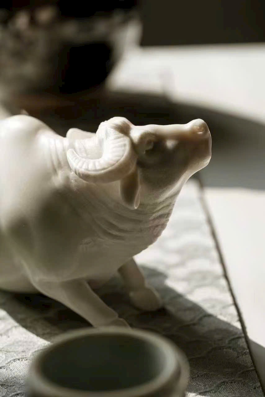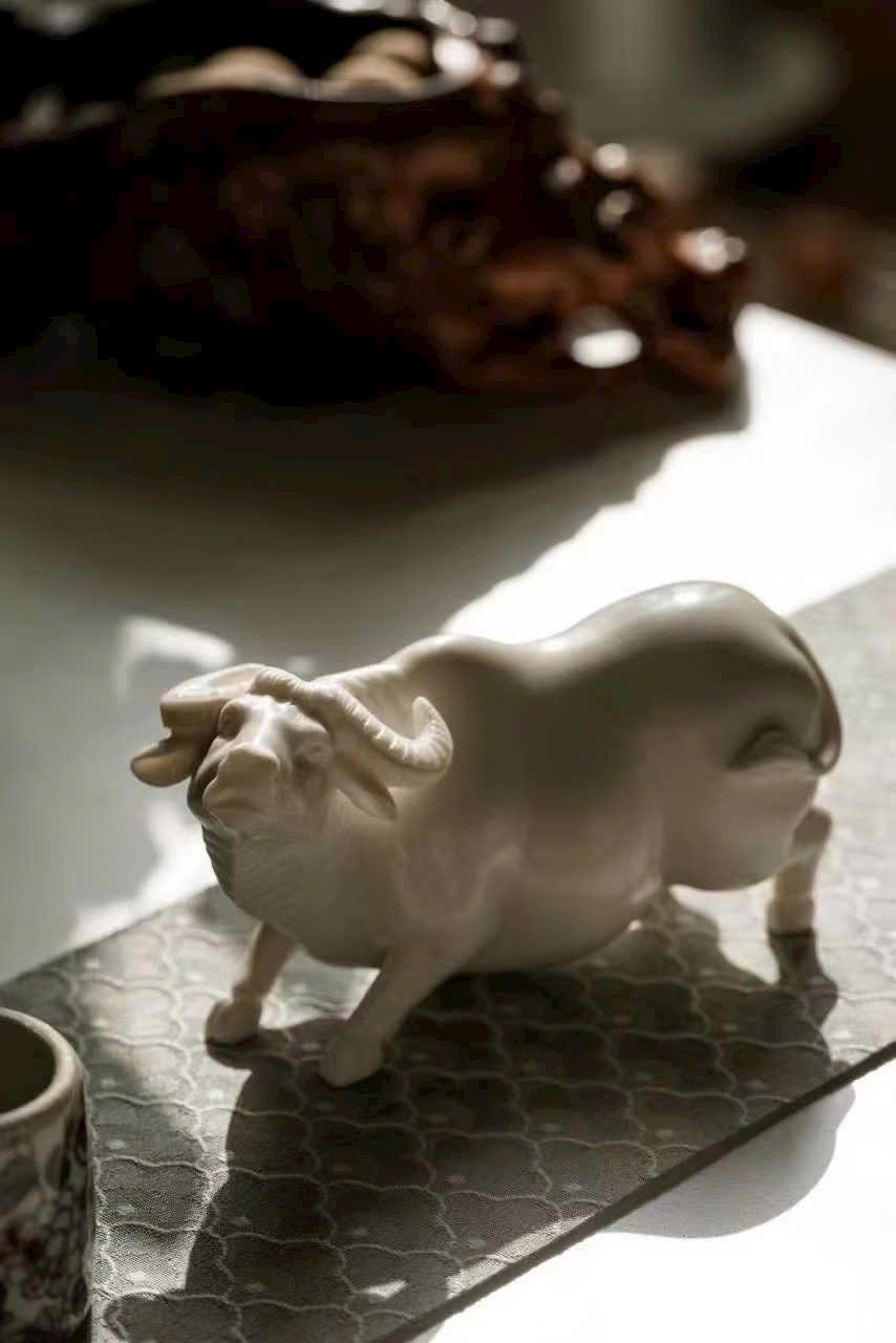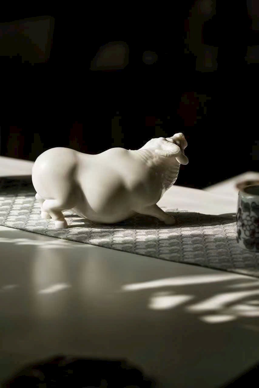 Tác phẩm thủ công tinh xảo, đường đục chạm truyền thần, khắc họa dáng trâu khỏe khoắn vững chãi, động thái sinh động như thật. Tựa “lão ký phục lý”,ẩn chứa khí vận hưng thịnh và sức sống bền bỉ. Tác phẩm mang phong vị mộc mạc tự nhiên, ý nghĩa cát tường — biểu trưng cho công danh thuận lợi, tài vận hanh thông, thích hợp trưng bày thưởng ngoạn hoặc làm quà tặng trang nhã.