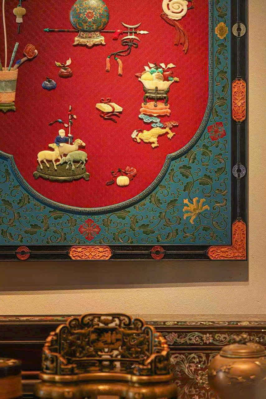 Các đề tài mang ý nghĩa may mắn như “Tuế triều bình an”, “Cát tường như ý”, bố cục hài hòa, chi tiết tinh mỹ, tạo nên tổng thể rực rỡ mà không phô trương, khiến người xem khó rời mắt.