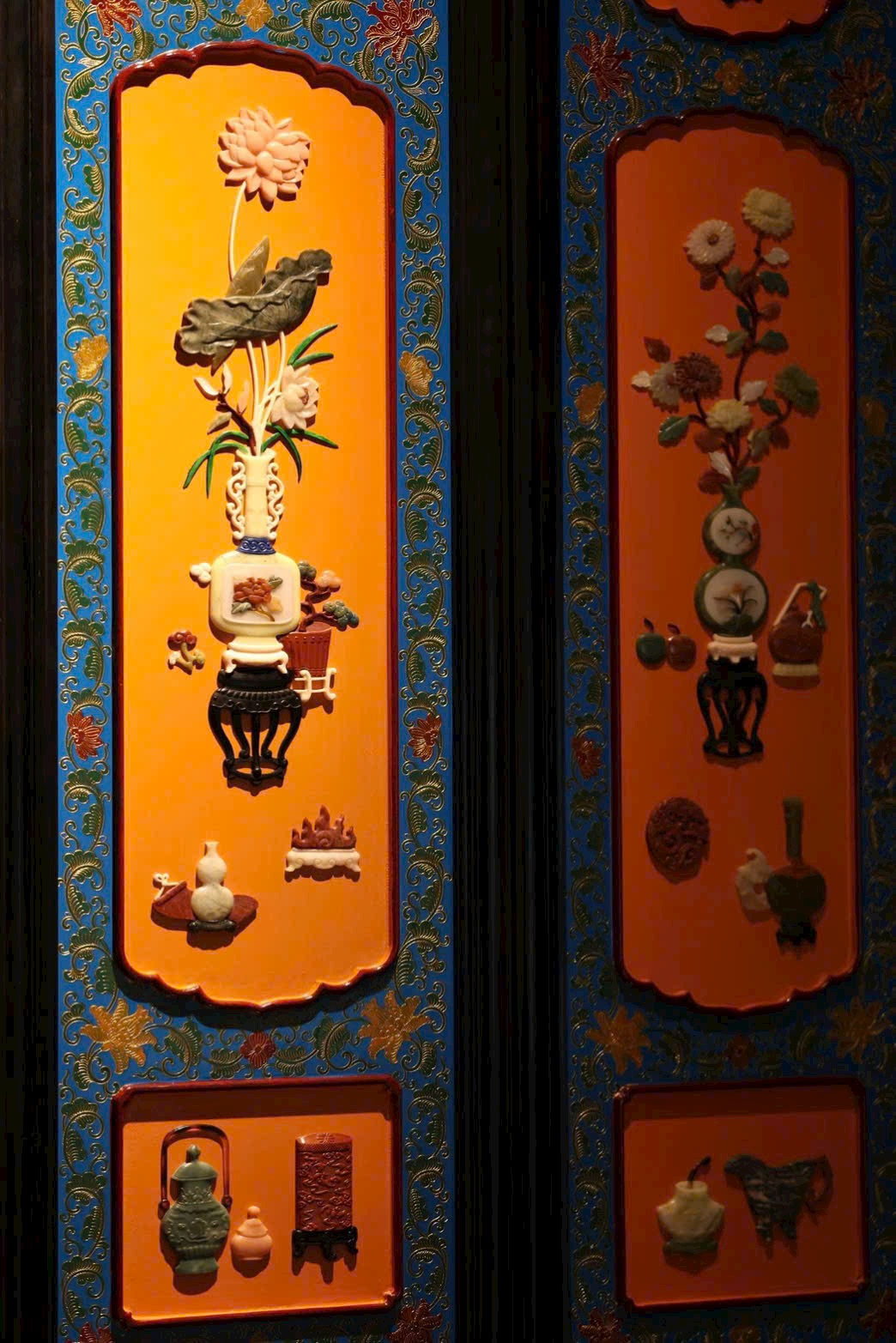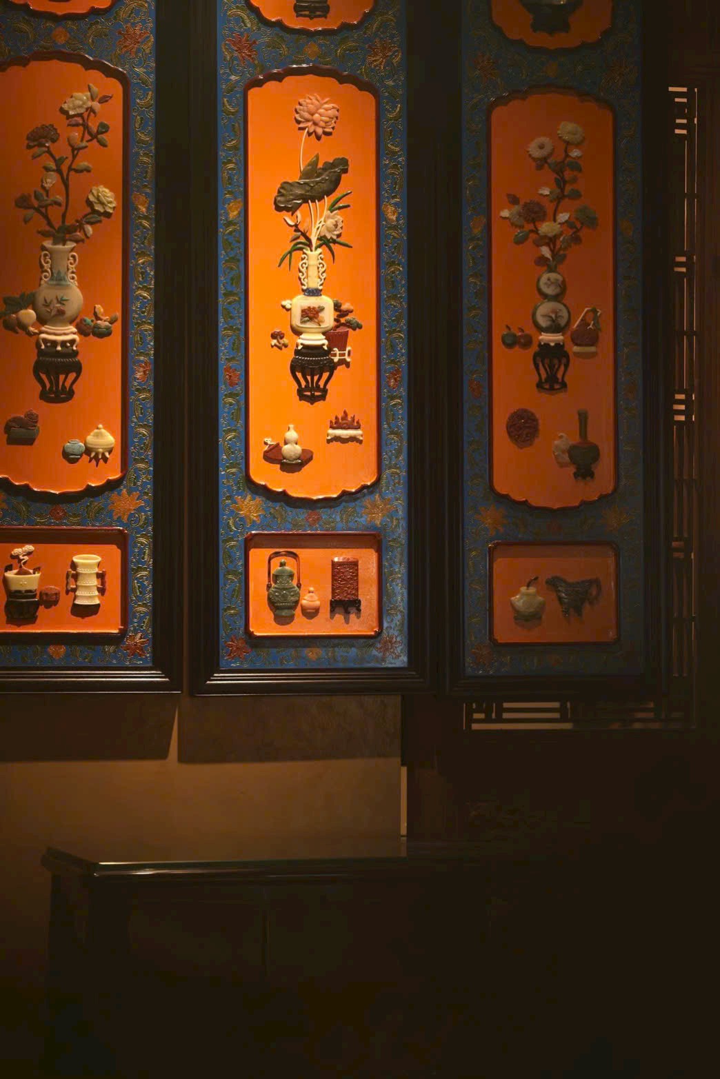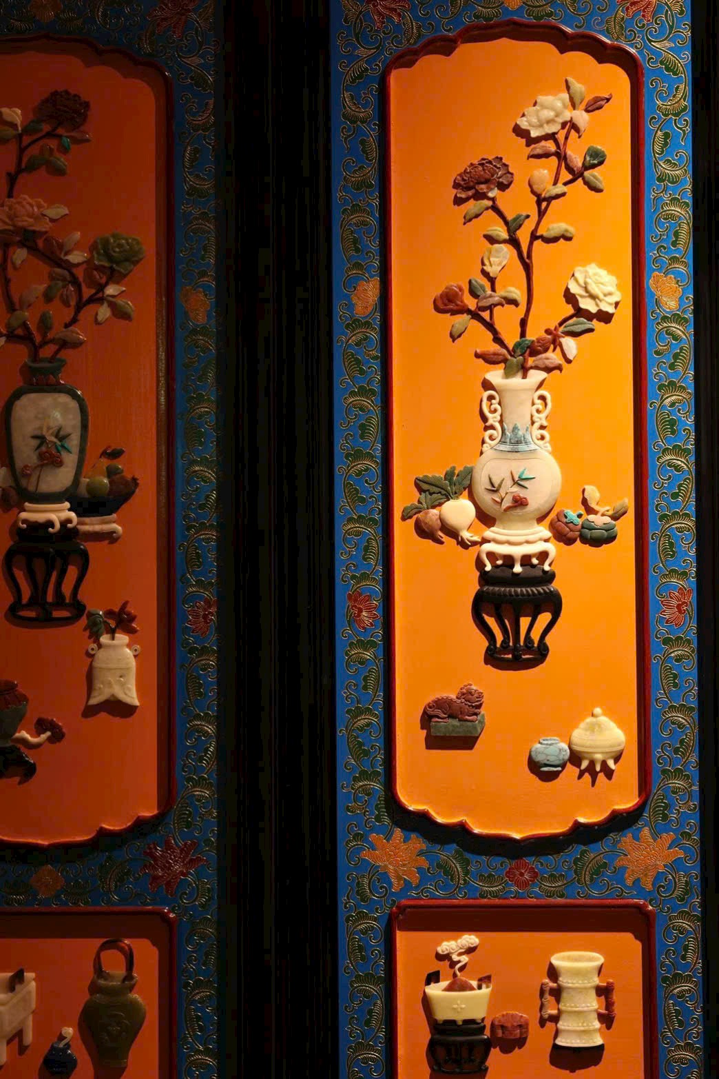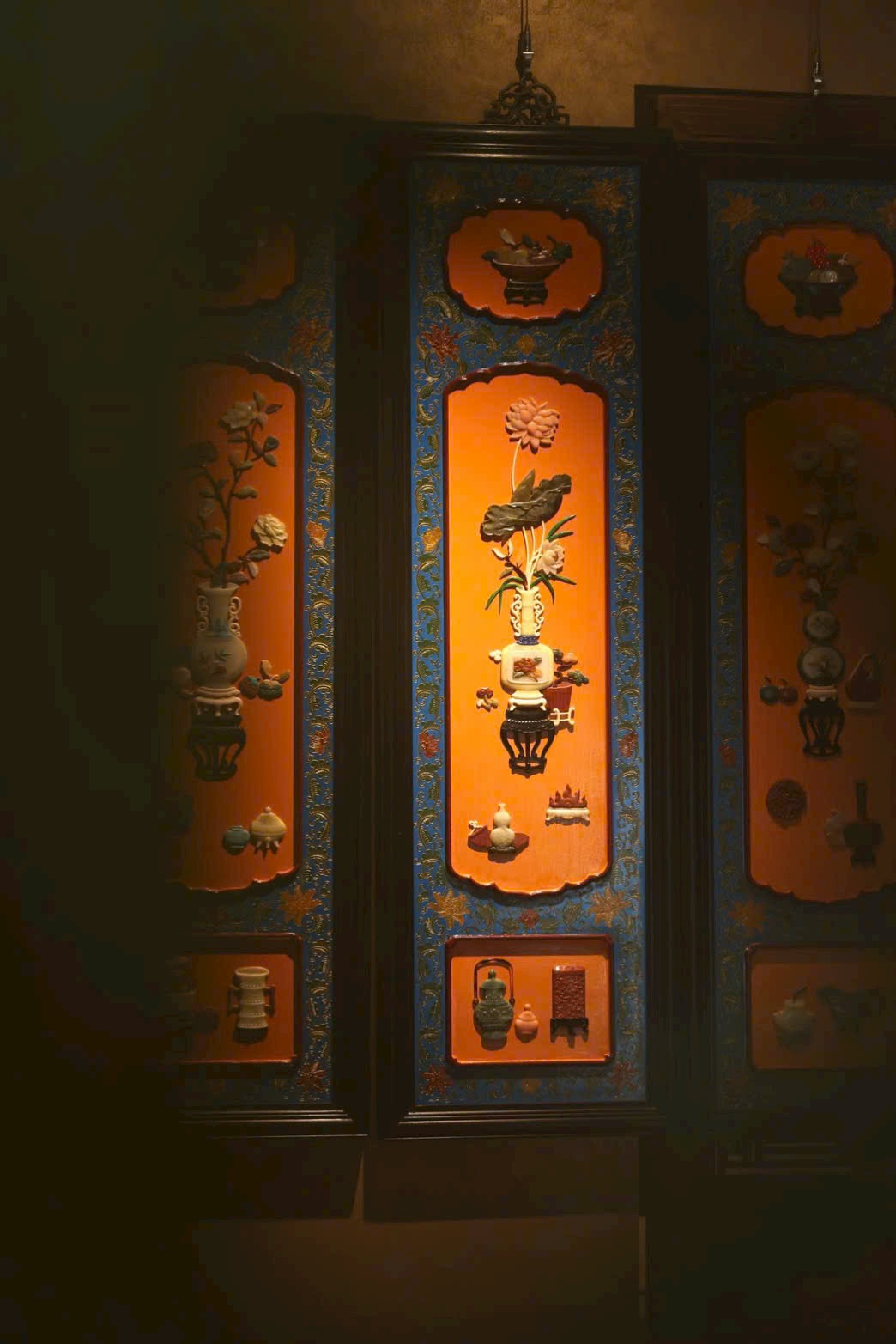 Bức bình treo này được sơn mài tinh tế, mặt bình mượt mà óng ánh, đính khảm bách bảo rực rỡ — phối sắc đậm nhạt hài hòa, rất thích hợp trang trí trong phòng khách hay thư phòng.