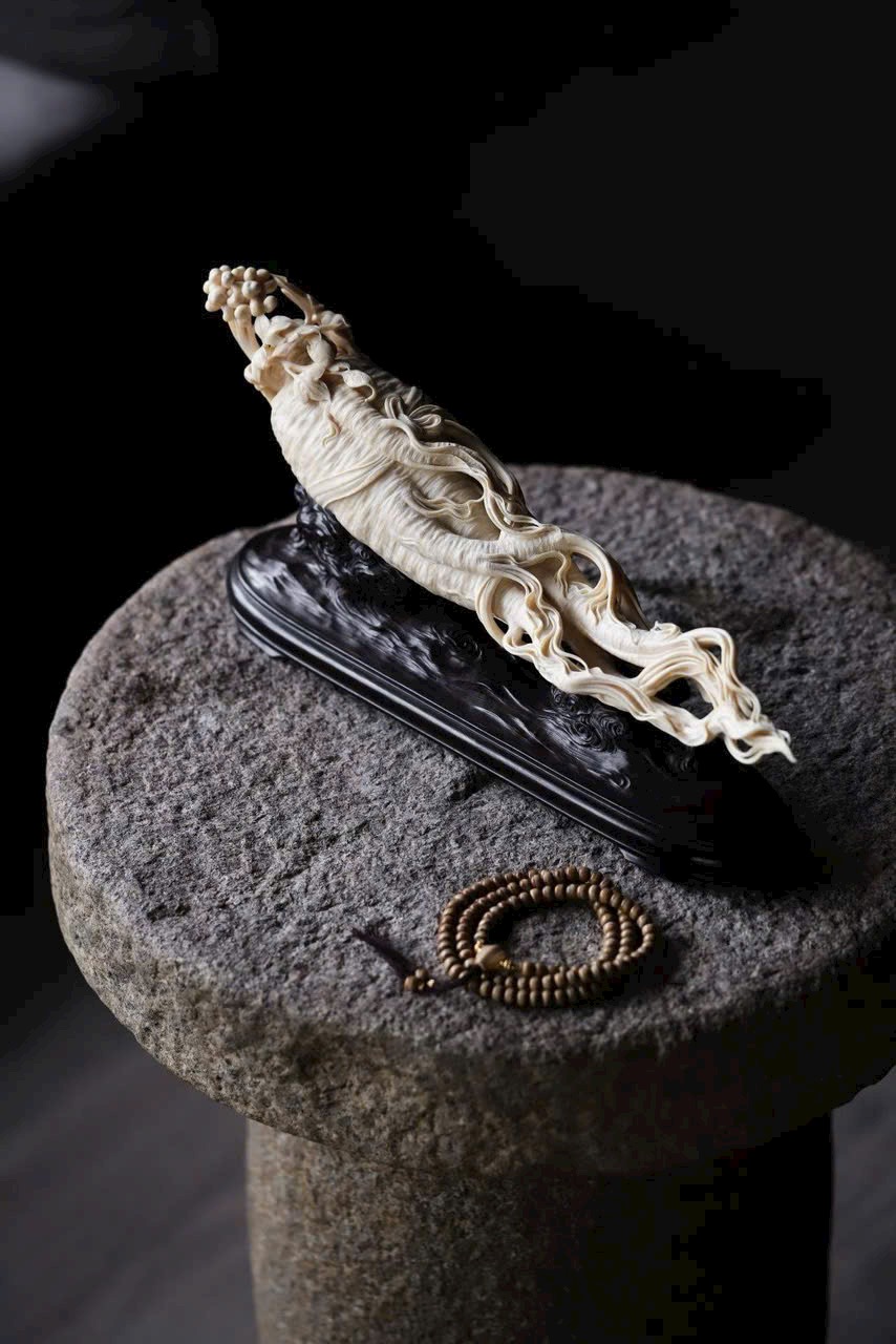 Rễ sâm vươn dài như rồng bay, thân sâm đầy đặn, chứa sinh khí cát tường.