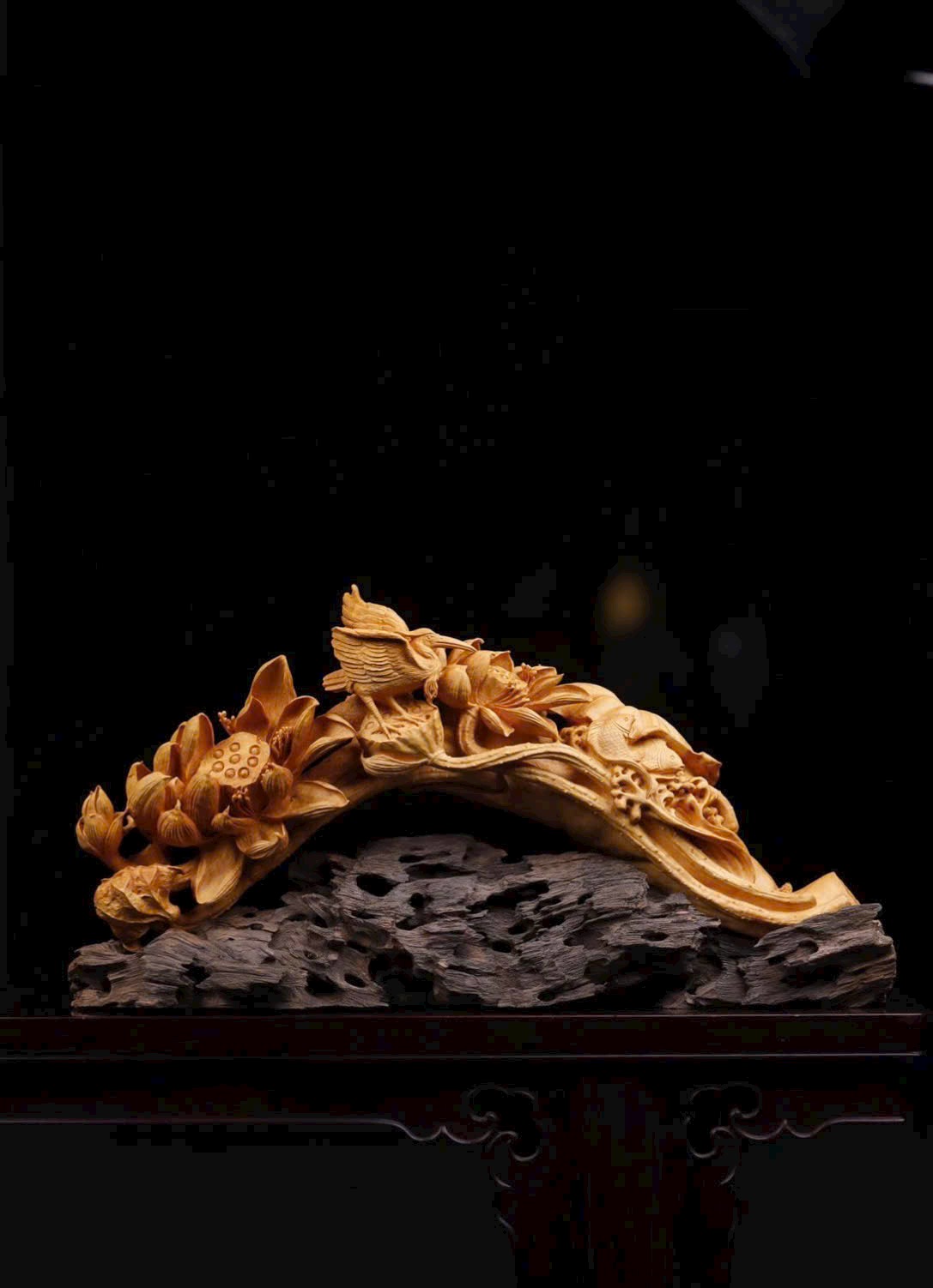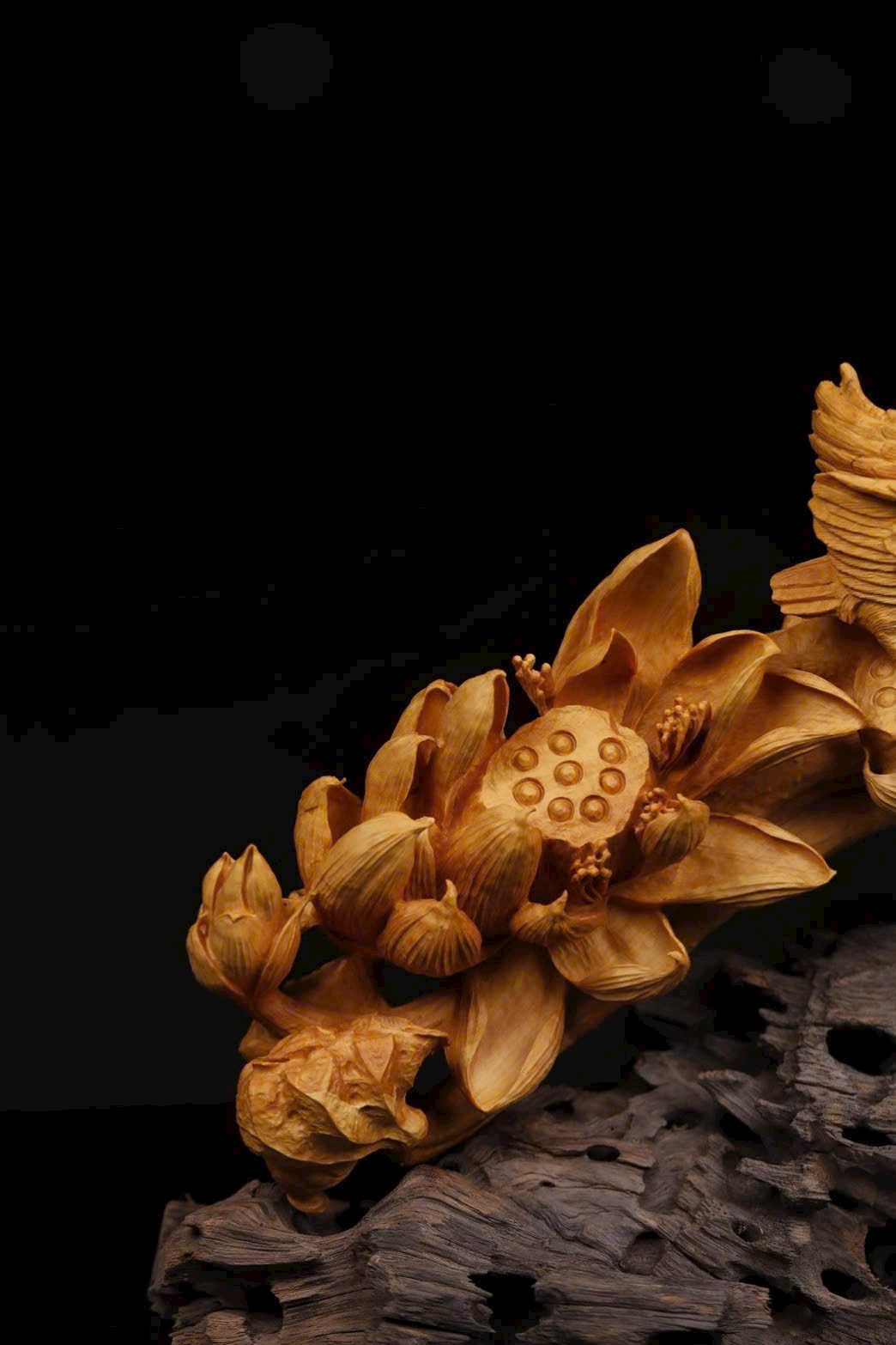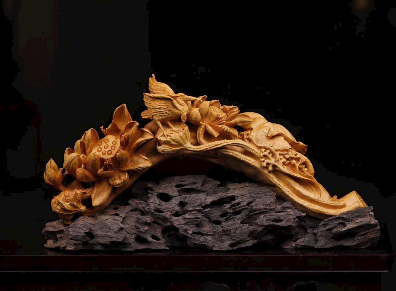 Hoa sen khoe sắc, chim hạc linh động, cá bơi sinh động – tất cả hòa quyện tạo nên một tác phẩm hai tầng ý nghĩa, khi bày trên án thư, vừa truyền vận mộc hương thanh nhã, vừa gửi gắm lời chúc cát tường dài lâu.