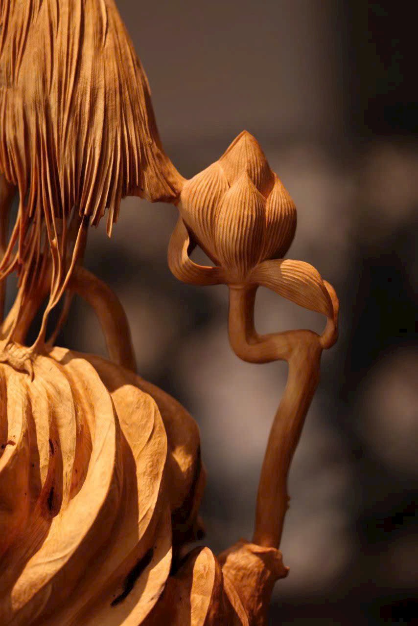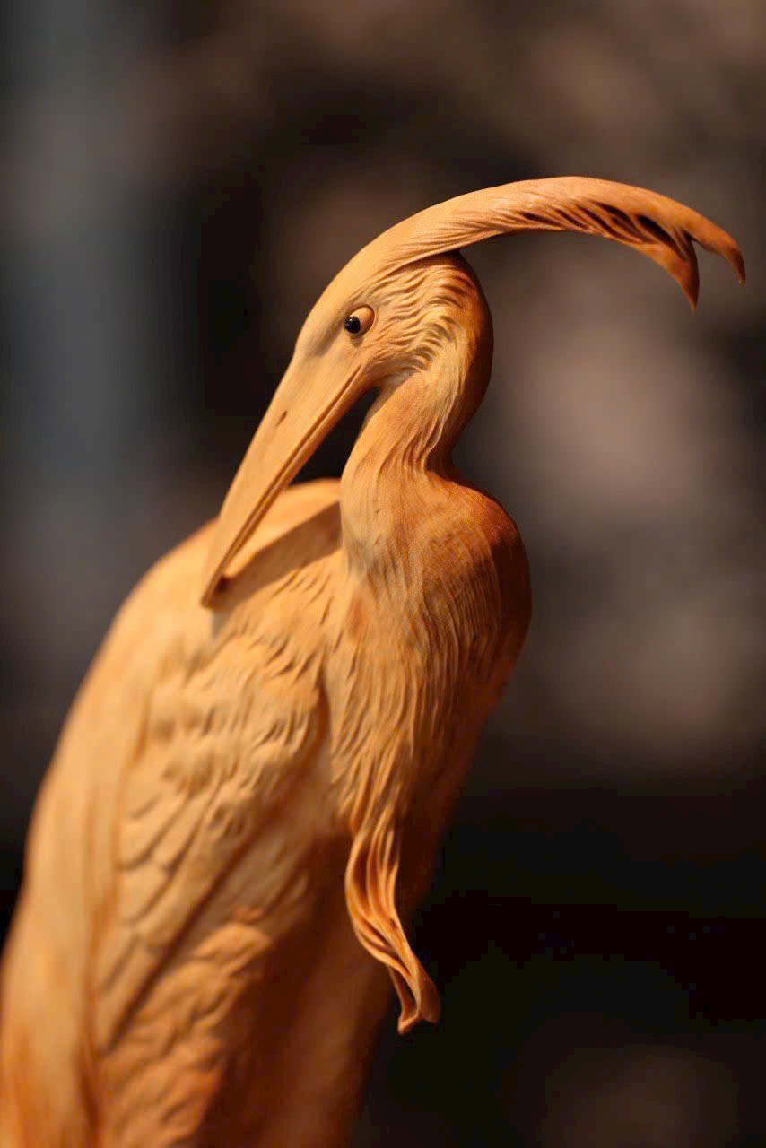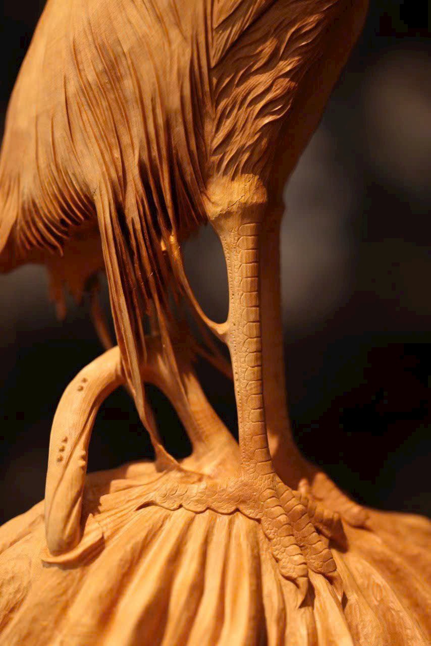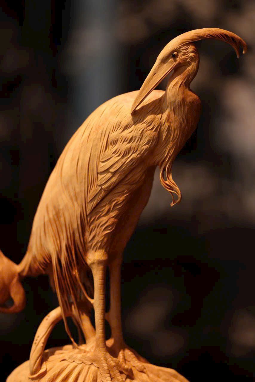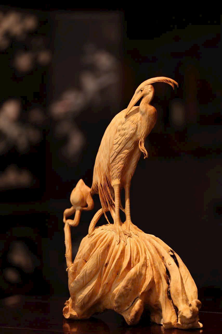 Tác phẩm được điêu khắc tinh xảo từ gỗ hoàng dương, khắc hình một chú cò đứng trên lá sen, bên cạnh đóa liên nở rộ. Từng sợi lông cò đều rõ mịn, sắc thái thanh khiết; hoa sen thanh lệ, tao nhã. Tác phẩm mang hàm ý “quan lộ hanh thông, phẩm hạnh cao khiết”, thể hiện sự hòa quyện tinh tế giữa tay nghề truyền thống và ý nghĩa cát tường.