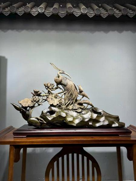 Chim hạc – hoa sen, tượng trưng “một đường thăng tiến”, cát tường hanh thông. Gỗ quý phối hợp, tạo hình thanh tao – thích hợp trưng bày phong thủy, tặng biếu thăng chức.