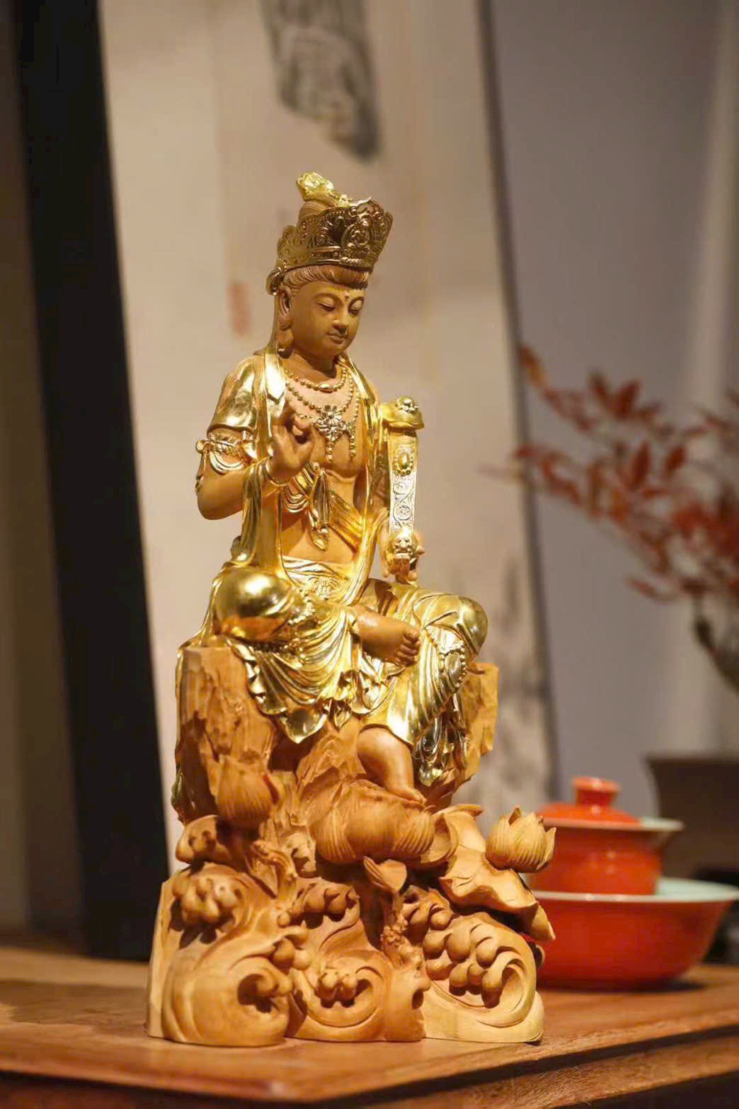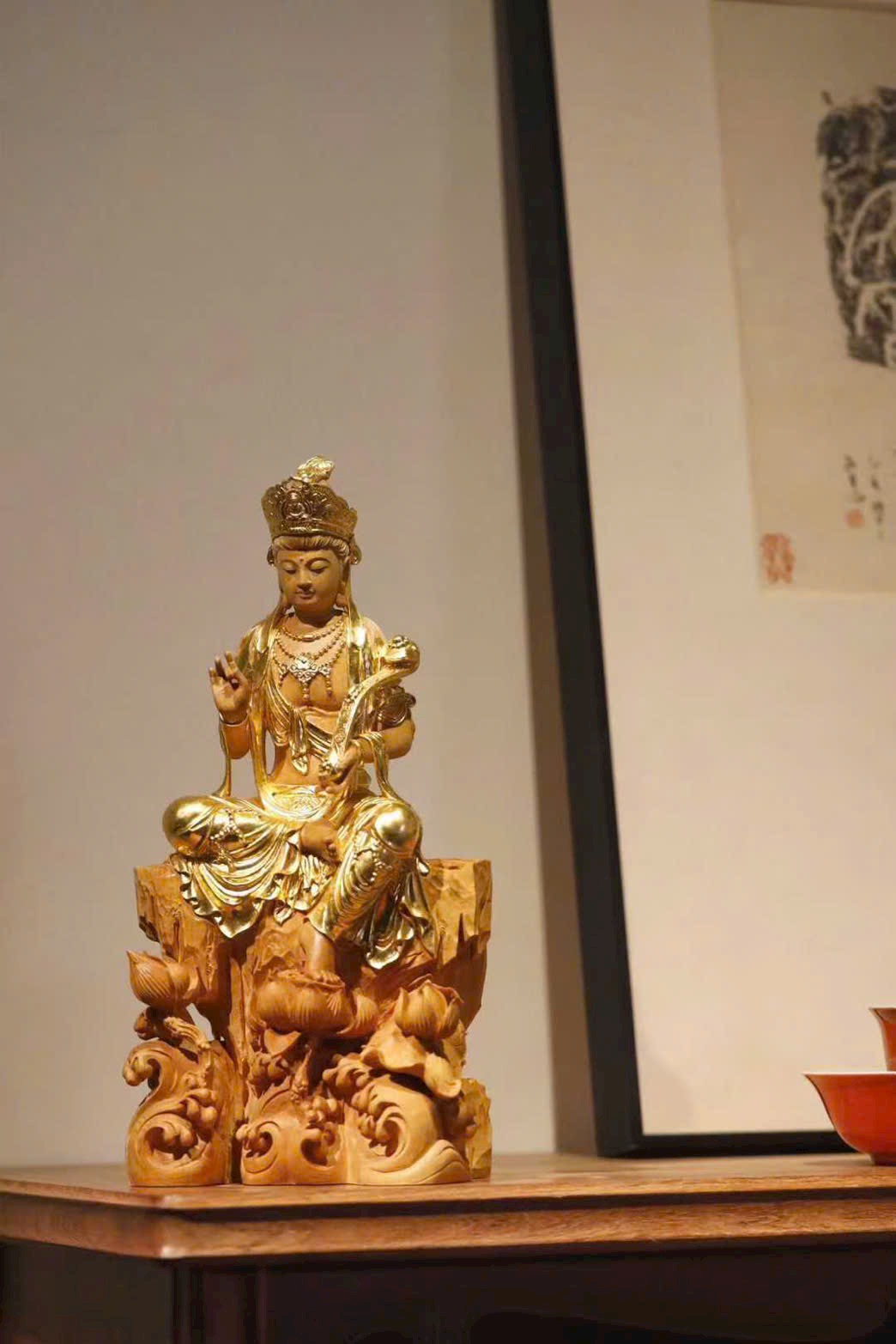 Hoàng dương mộc × dát vàng|Như Ý Quan Âm