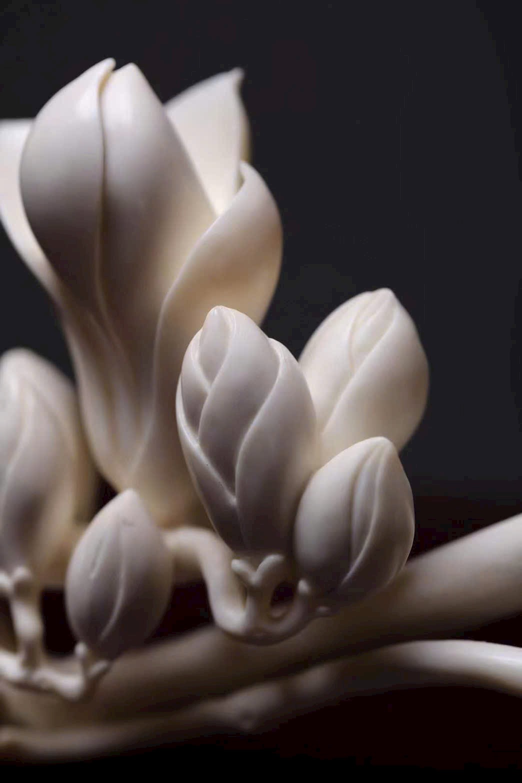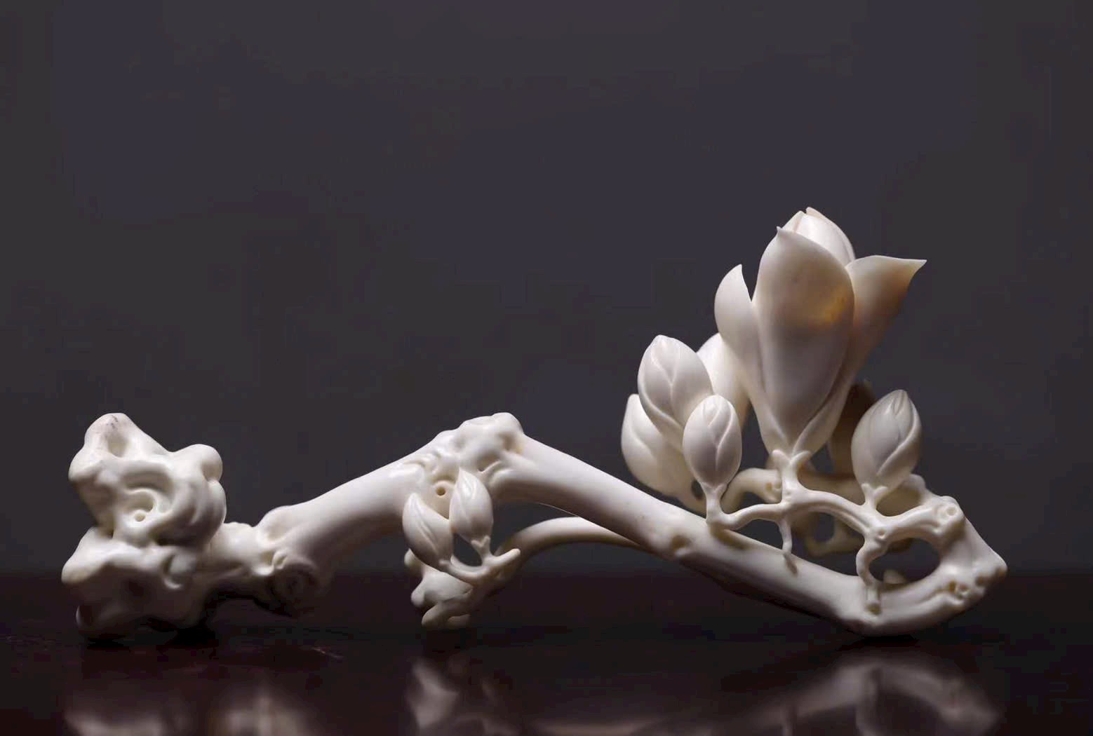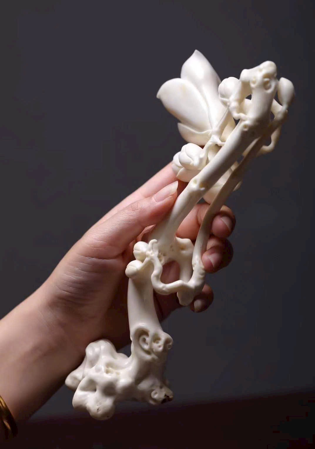 Chất trắng ngà như mỡ đông, lưu giữ trọn vẹn vẻ thanh nhã và linh động của ngọc lan. Tựa hồ có thể ngửi thấy hương thơm thoang thoảng, gom trọn thi vị xuân thiên nhiên vào tác phẩm điêu khắc này, phô bày trọn phong nhã phương Đông.