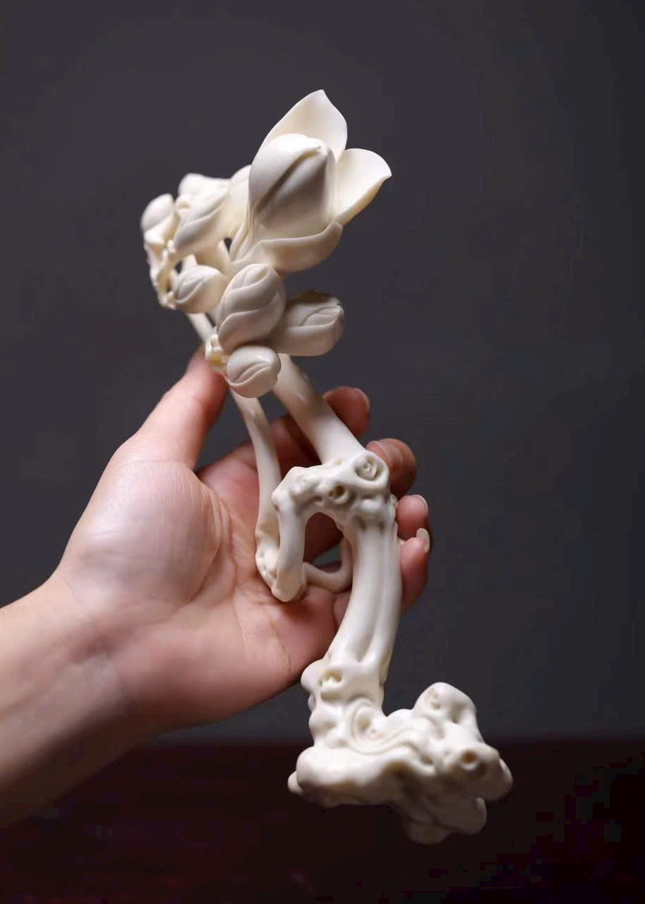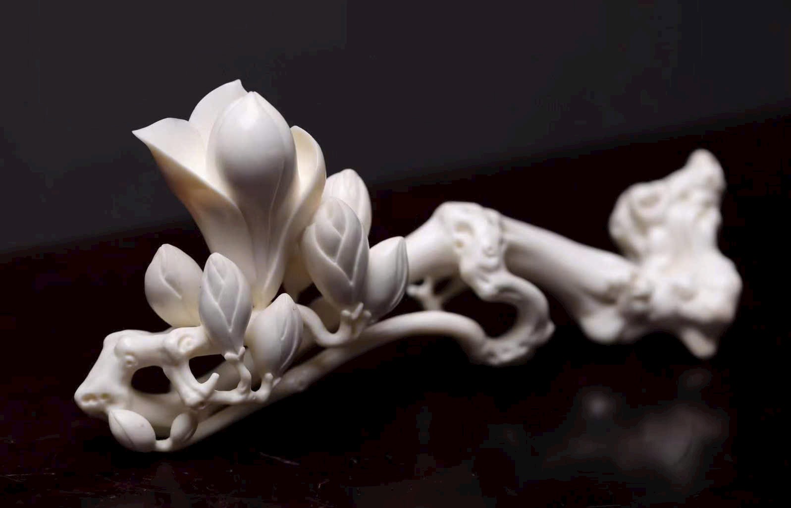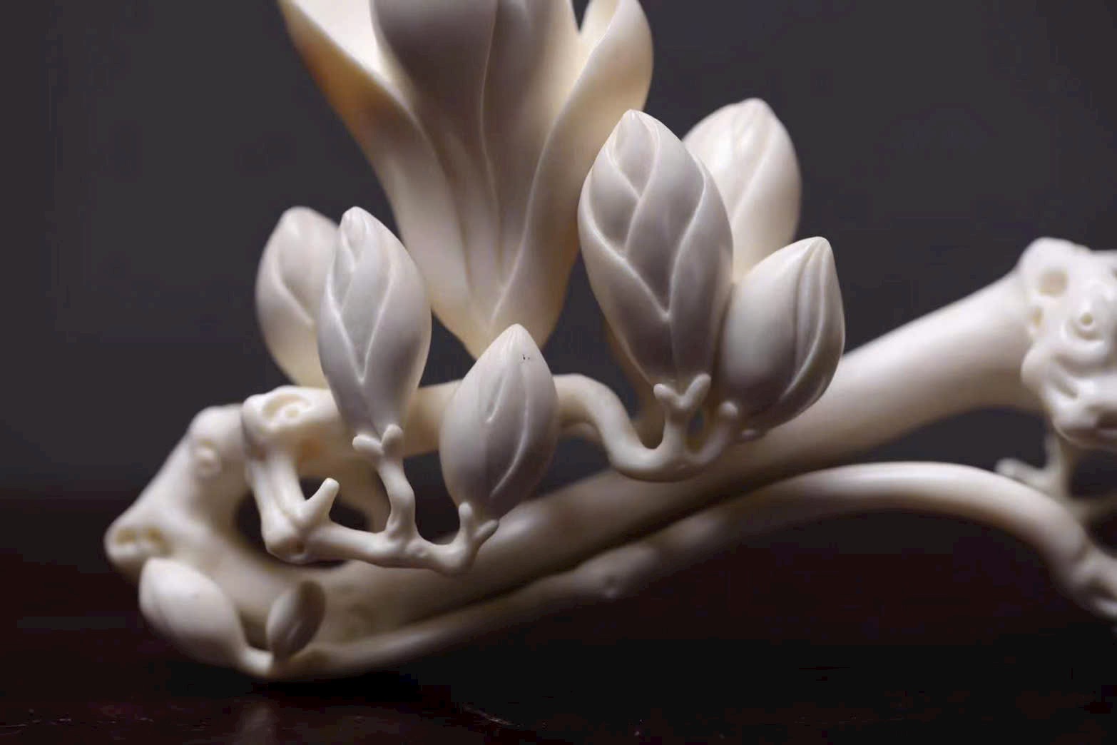 Chất trắng ngà như mỡ đông, lưu giữ trọn vẹn vẻ thanh nhã và linh động của ngọc lan. Tựa hồ có thể ngửi thấy hương thơm thoang thoảng, gom trọn thi vị xuân thiên nhiên vào tác phẩm điêu khắc này, phô bày trọn phong nhã phương Đông.