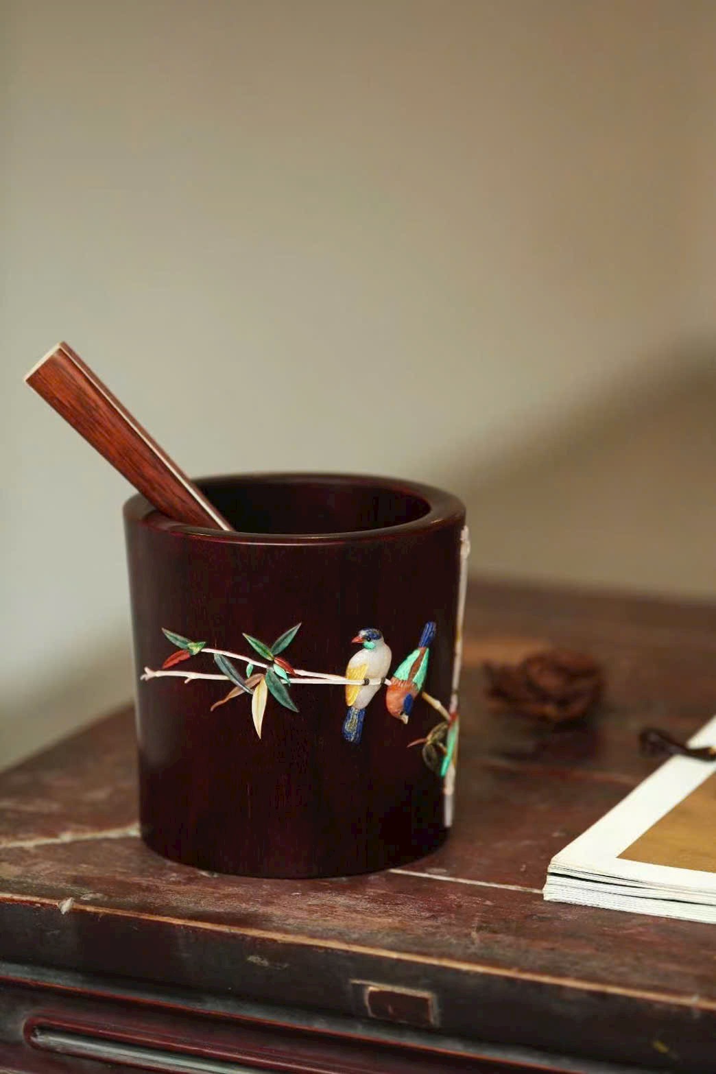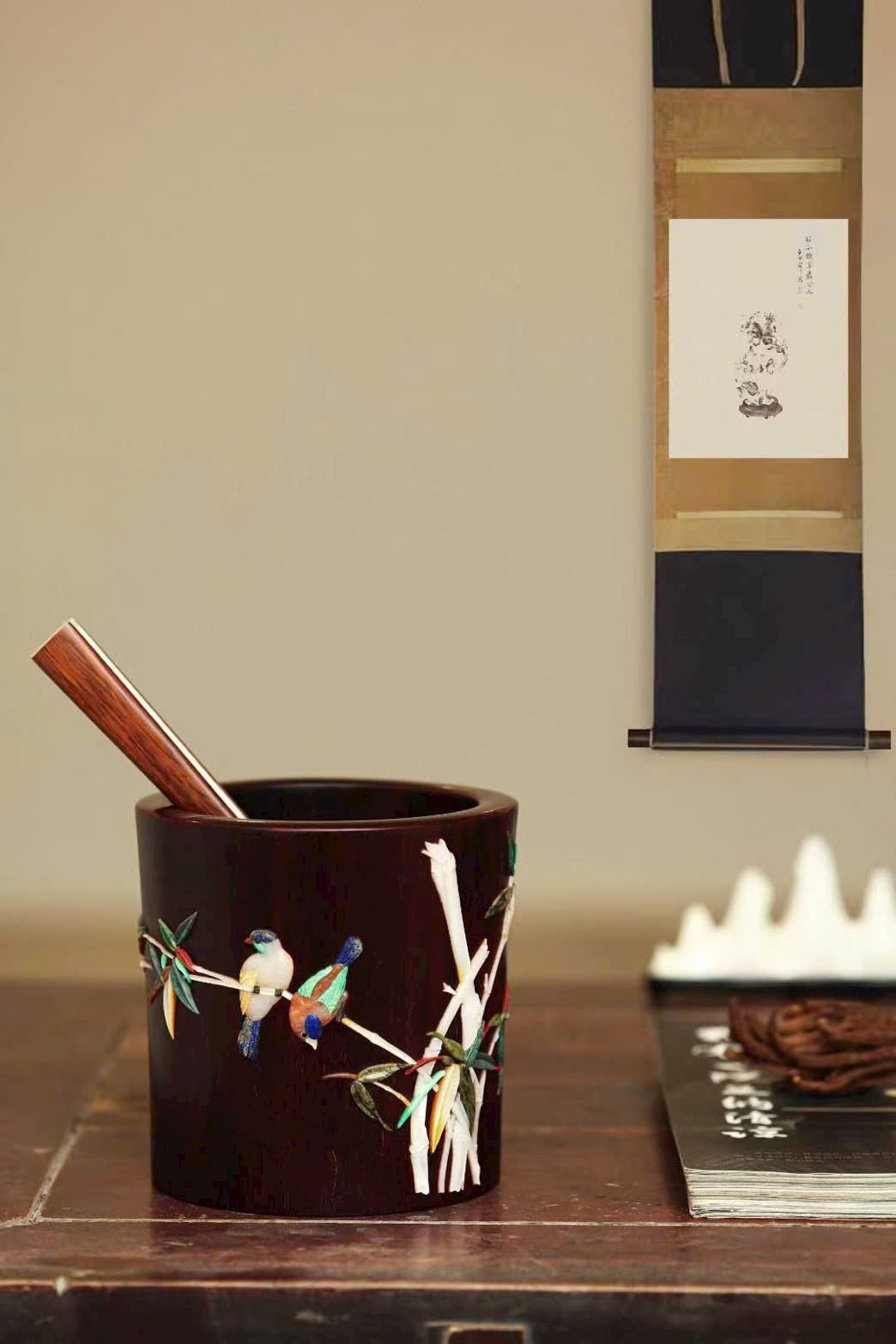 Bày trong văn phòng tứ bảo, tạo nên một cảnh trí tao nhã, giàu thi vị.