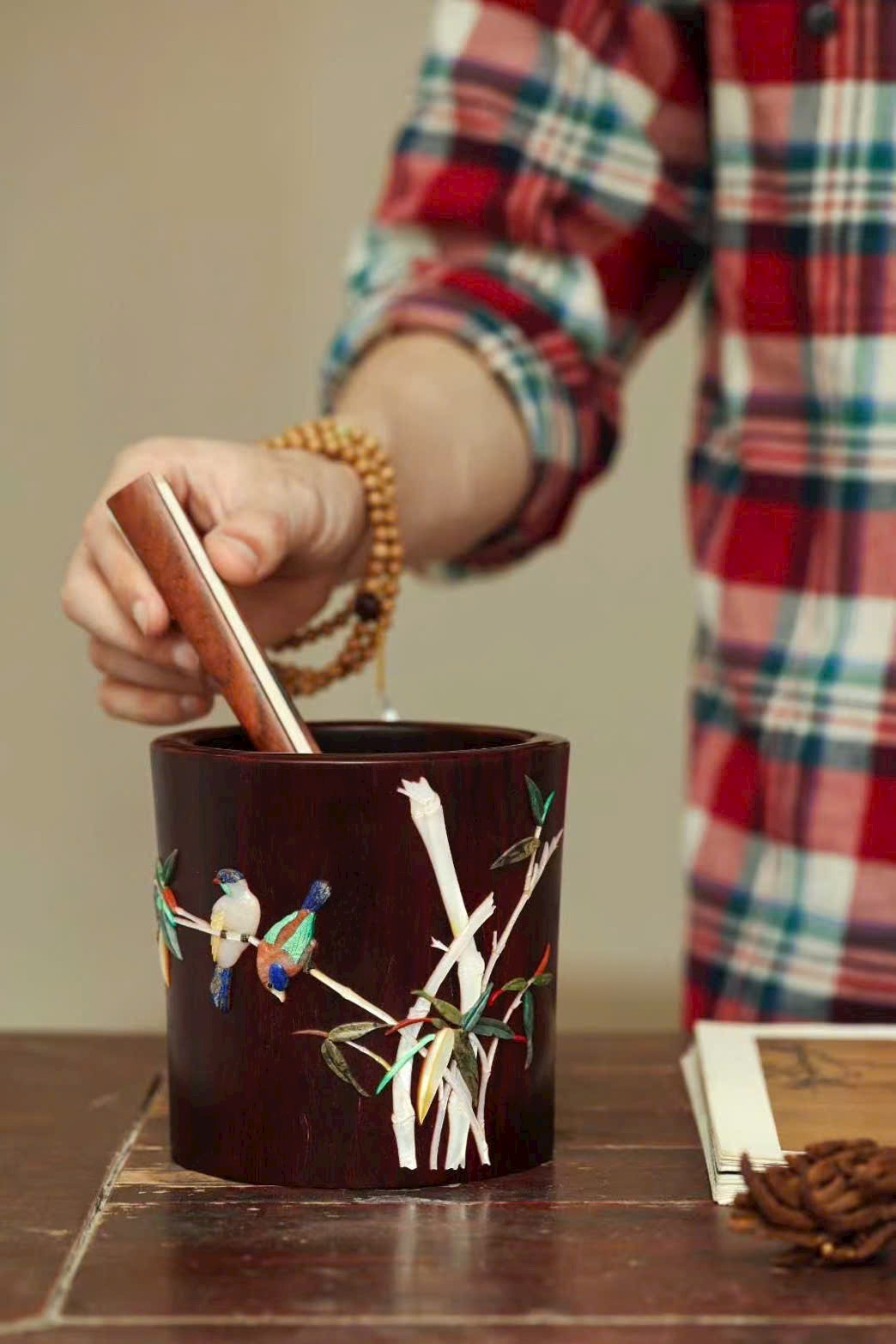 Thân ống khảm bách bảo, bố cục tranh thanh nhã, trong trẻo;