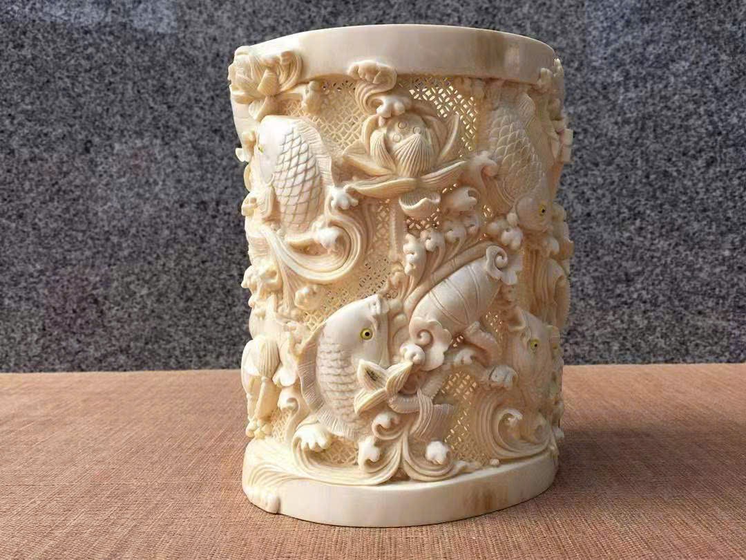Ống Bút “Cửu Lý Hiến Phúc” | Chất liệu ng.à ma mút, chạm rỗng thủ công
