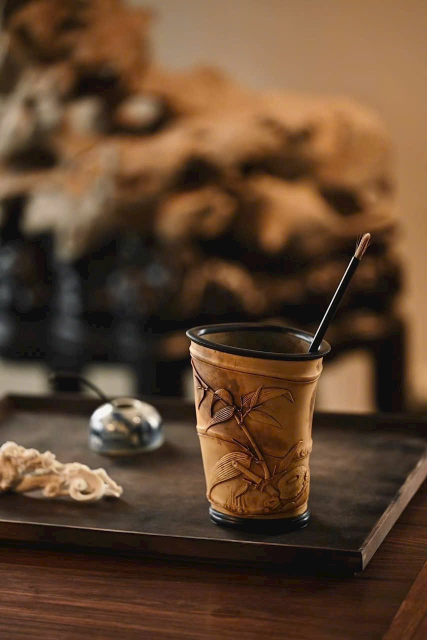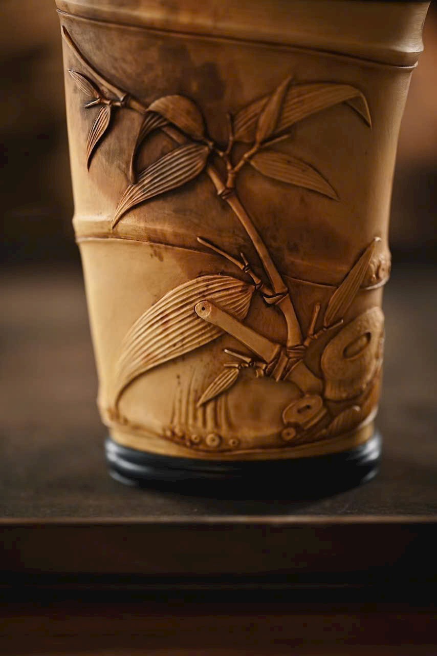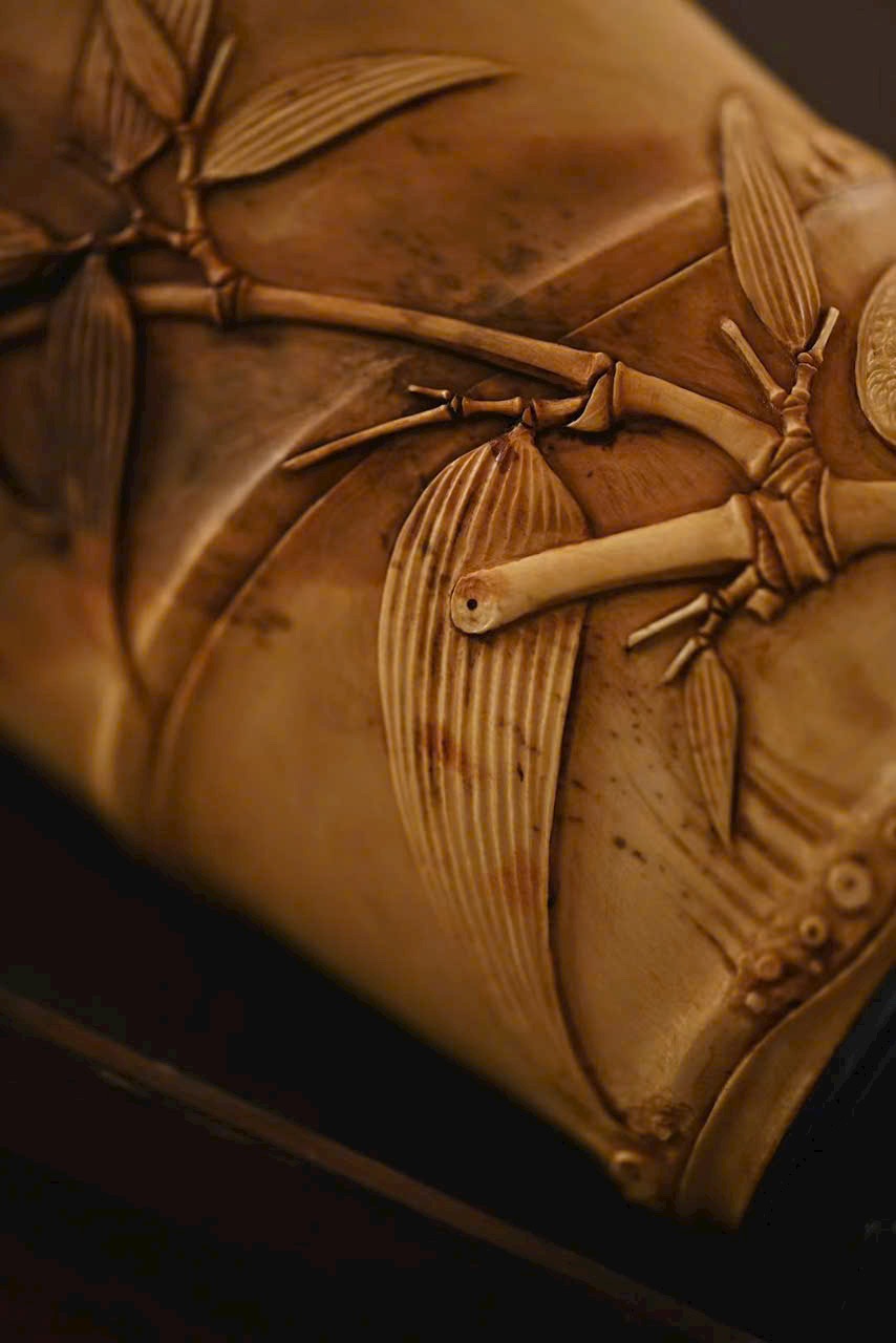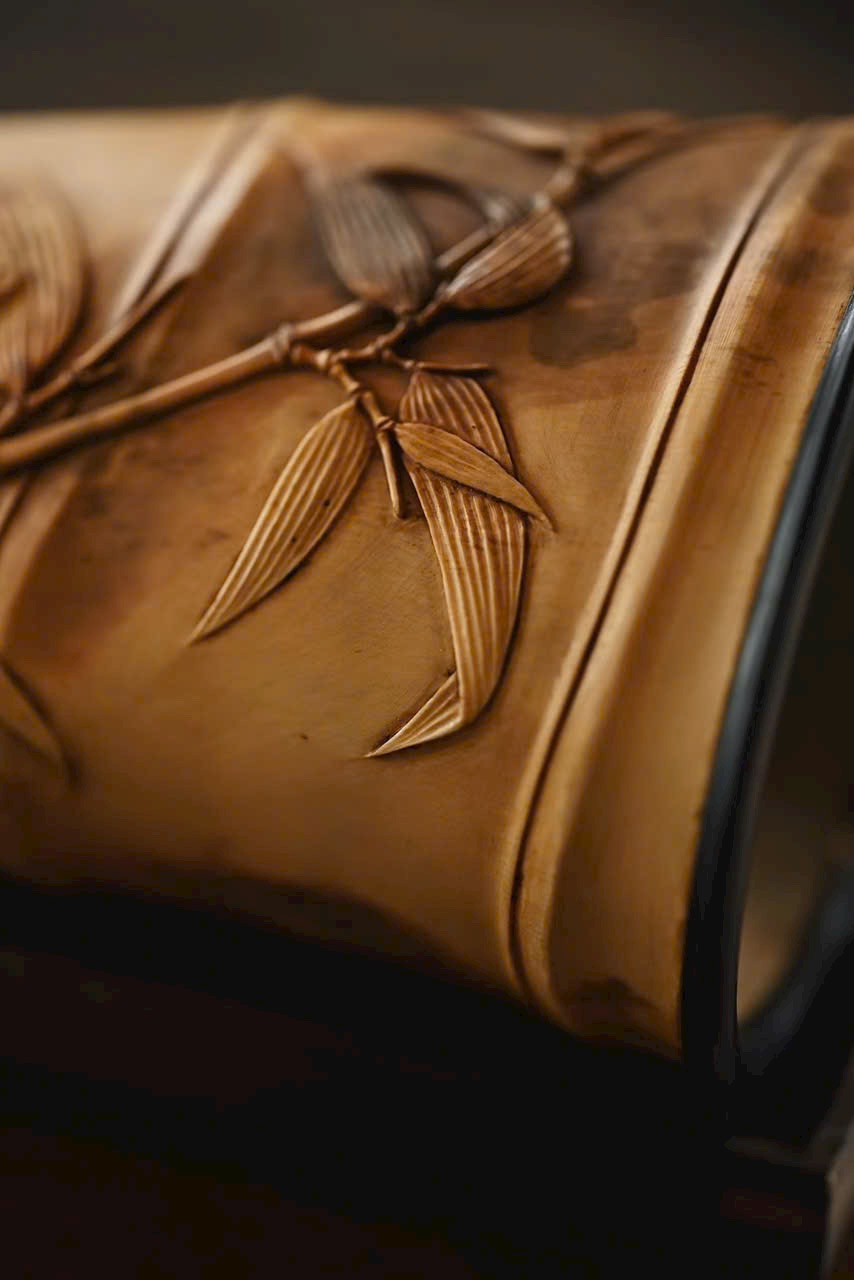 Màu sắc cổ điển, vân gỗ rõ nét và đẹp mắt. Thân ống được chạm khắc hình đốt tre, cành và lá tre thanh nhã, mộc mạc, mang đậm vẻ đẹp tao nhã và ý nghĩa “từng bước thăng tiến”.