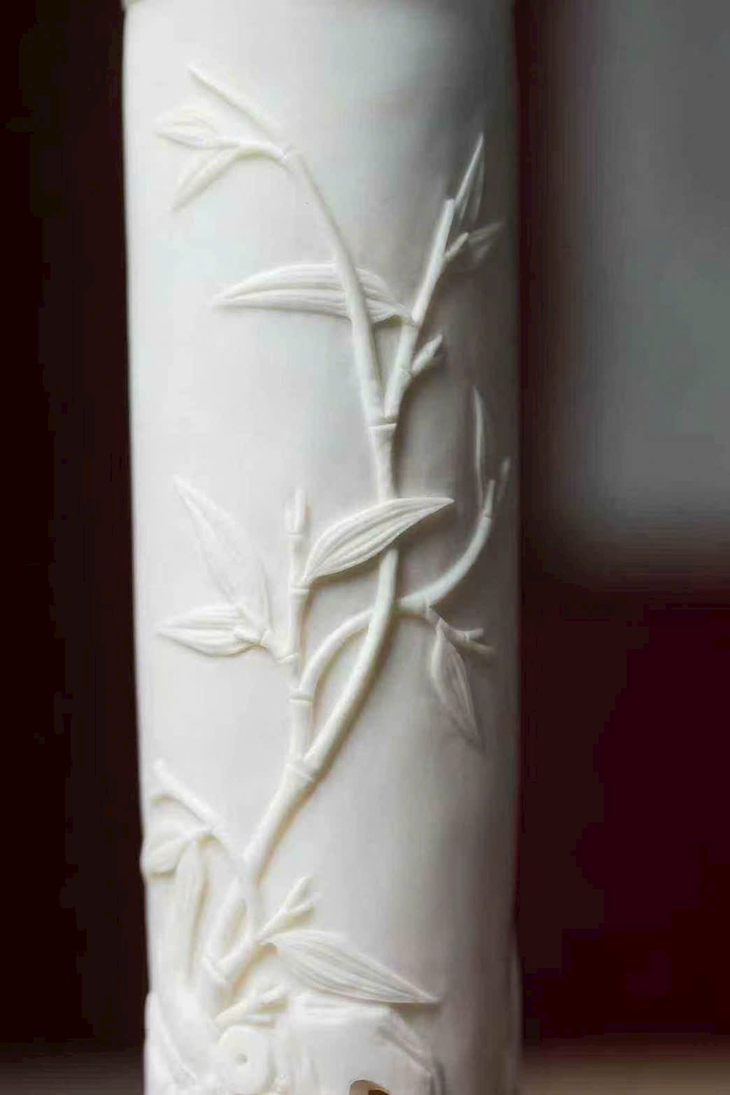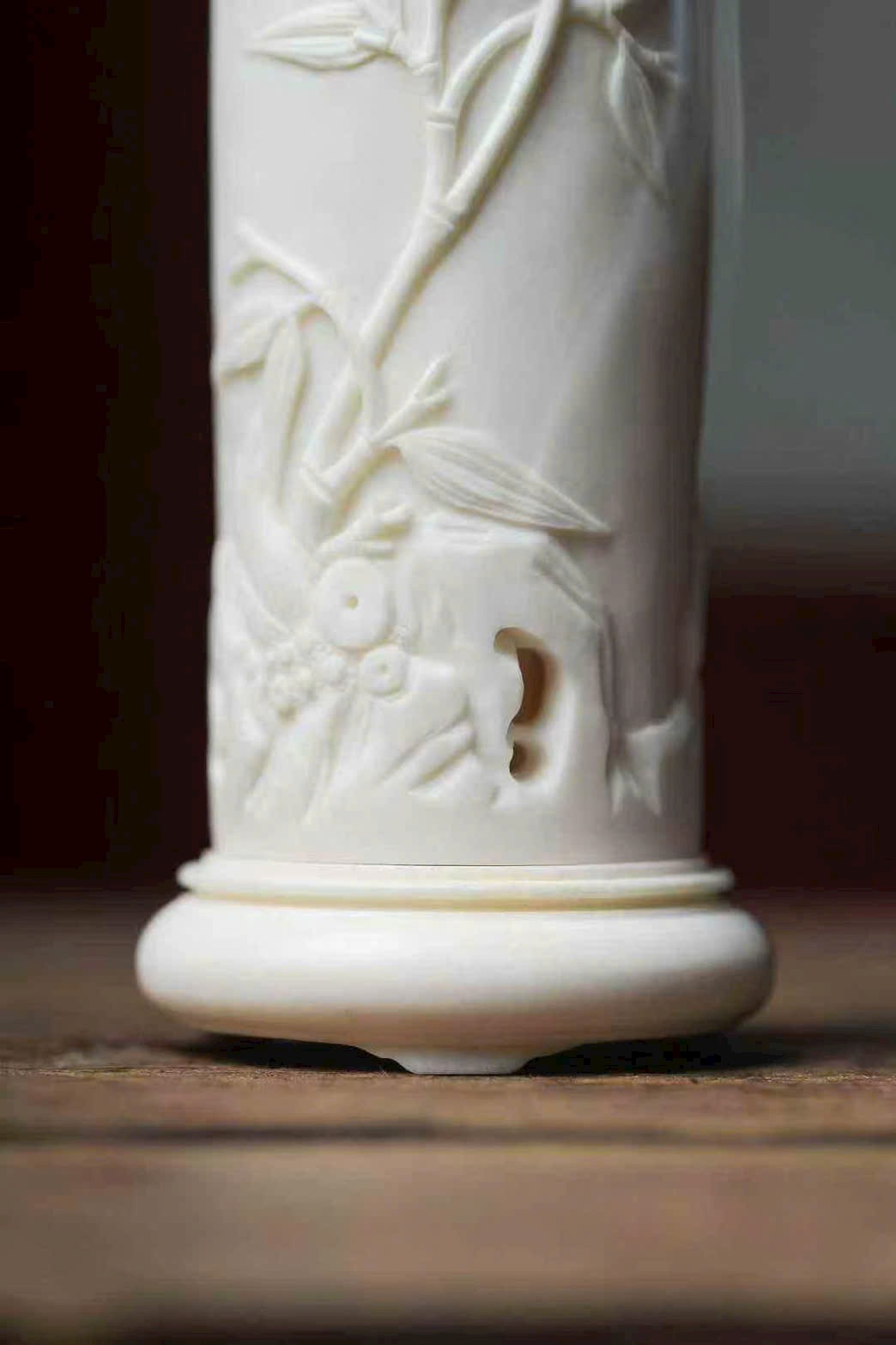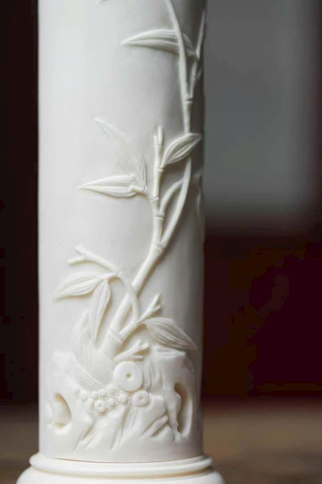 Nguyên khối gạc hươu tạo hình, bề mặt cong nổi khắc phù điêu, chạm họa tiết trúc ngọc “từng đốt vươn cao”. Bố cục thoáng đạt, thanh tú tao nhã, hàm chứa ý nghĩa từng bước thăng tiến, cát tường mỹ mãn, là nhã vật trong hương sự.