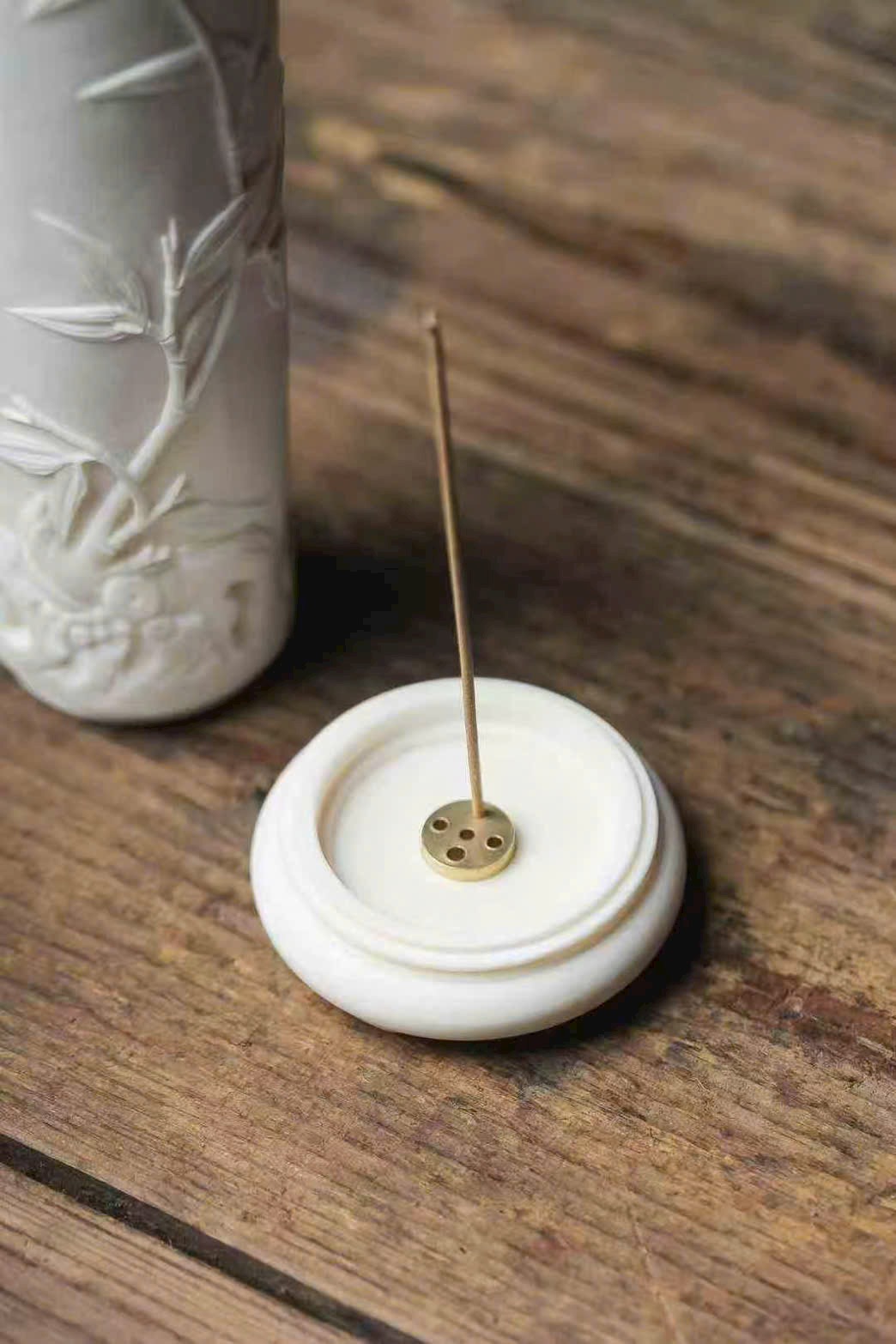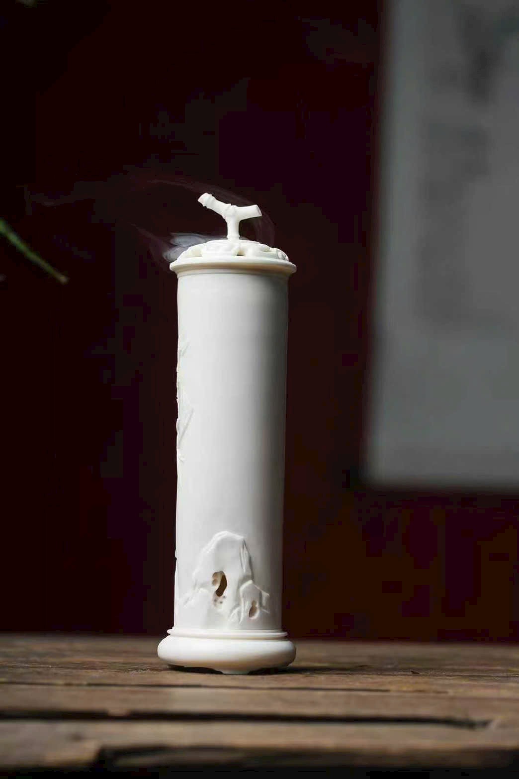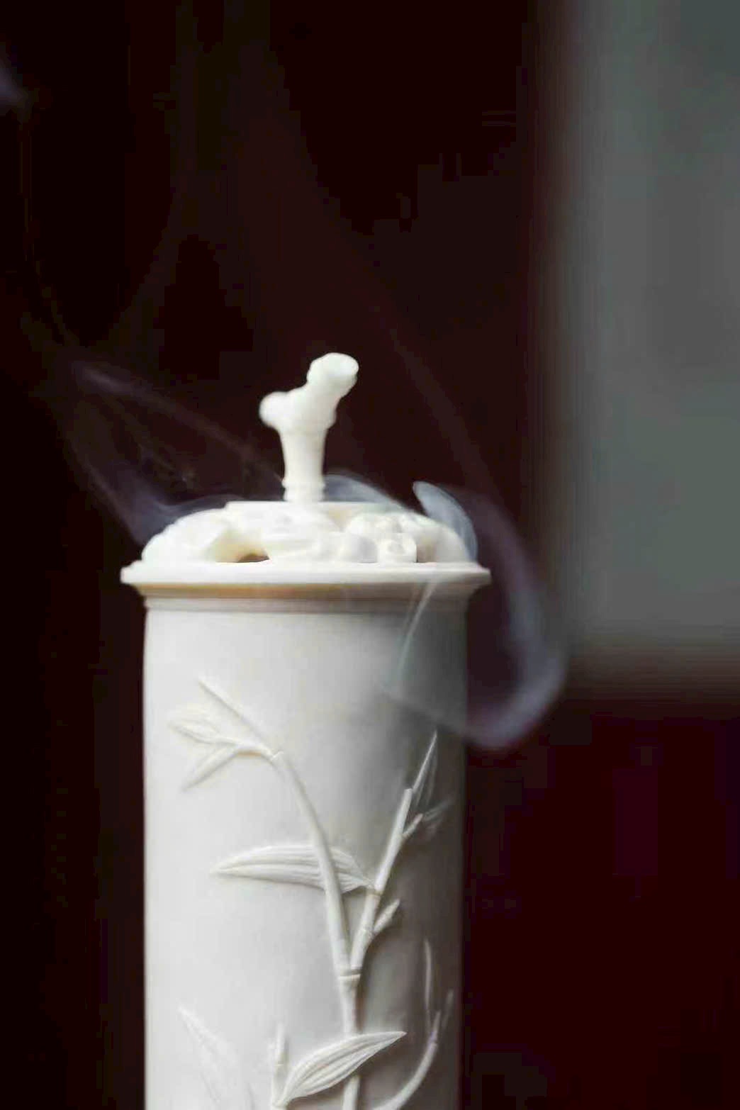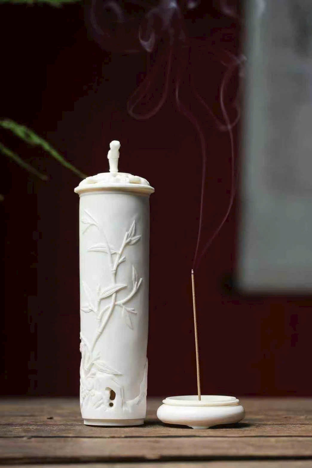 Nguyên khối gạc hươu tạo hình, bề mặt cong nổi khắc phù điêu, chạm họa tiết trúc ngọc “từng đốt vươn cao”. Bố cục thoáng đạt, thanh tú tao nhã, hàm chứa ý nghĩa từng bước thăng tiến, cát tường mỹ mãn, là nhã vật trong hương sự.