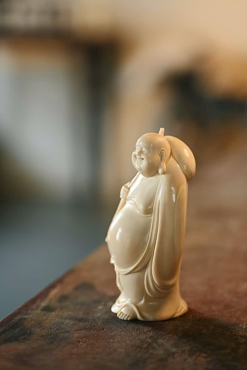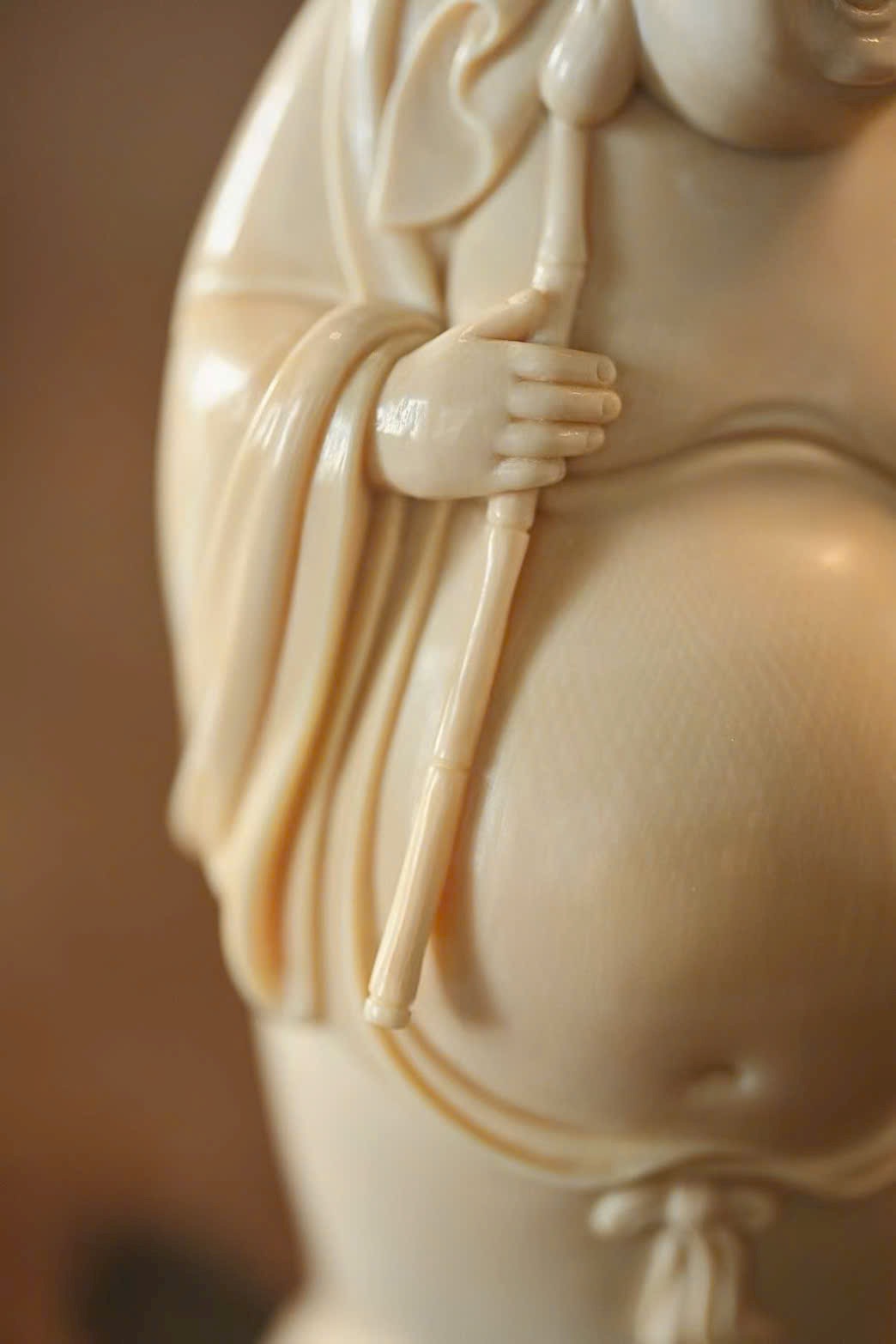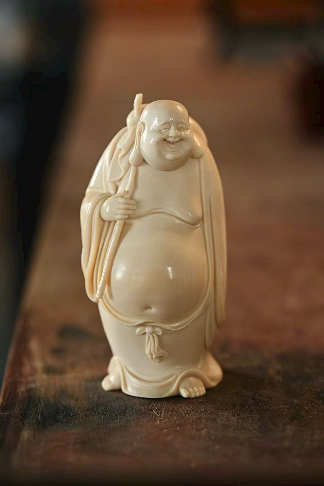 Tạo hình khuôn mặt độc đáo, khắc họa thần thái sinh động bằng đường dao đơn giản mà tinh tế. Vui tươi mà không tầm thường – “vừa nhìn đã bật cười, Phật cũng là chúng sinh”. Gợi nét duyên dáng khiến người xem khó không mỉm cười.