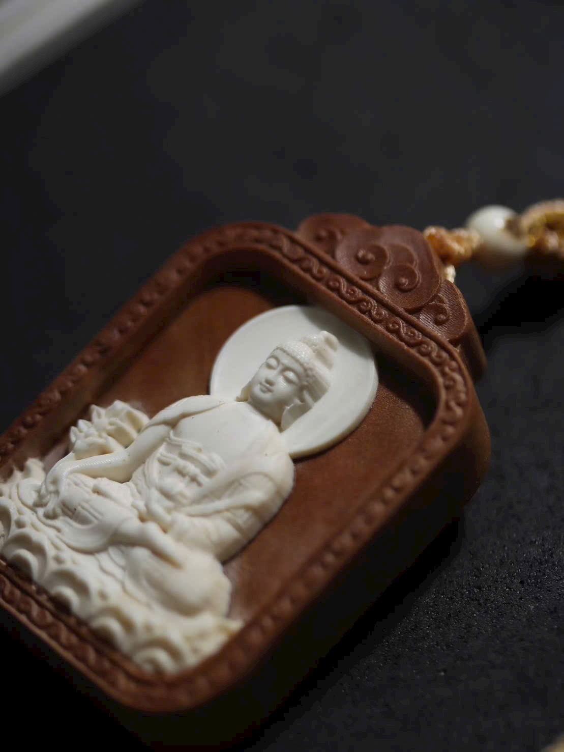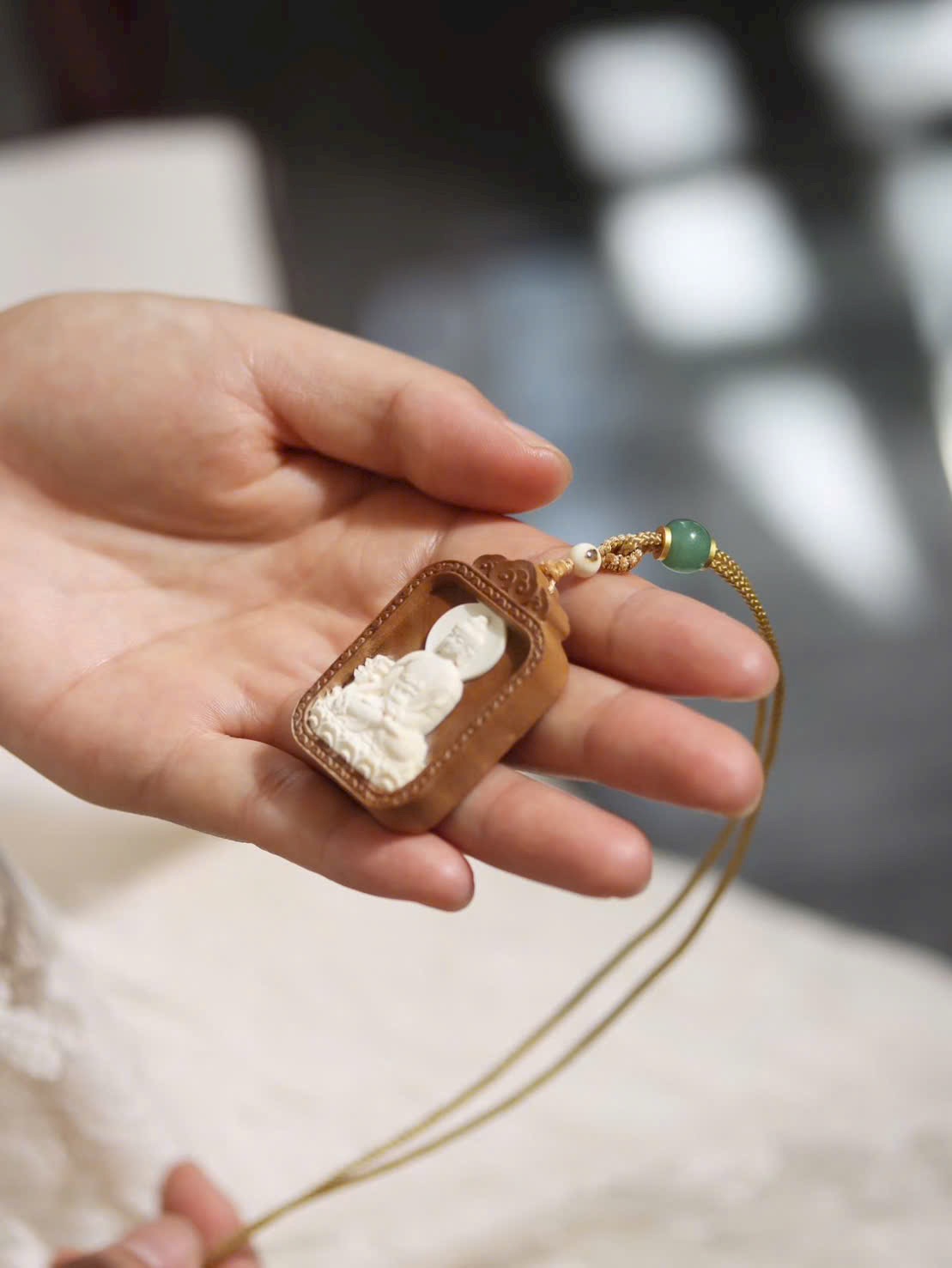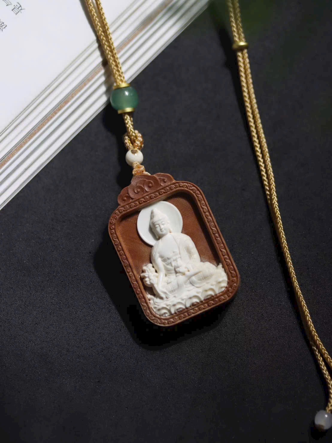 Chế tác từ đàn hương kết hợp m.a mút khảm liền mạch, kỹ nghệ tinh xảo độc đáo. Phối dây treo cao cấp, tặng kèm hộp quà sang trọng – phù hợp tự đeo hoặc biếu tặng.