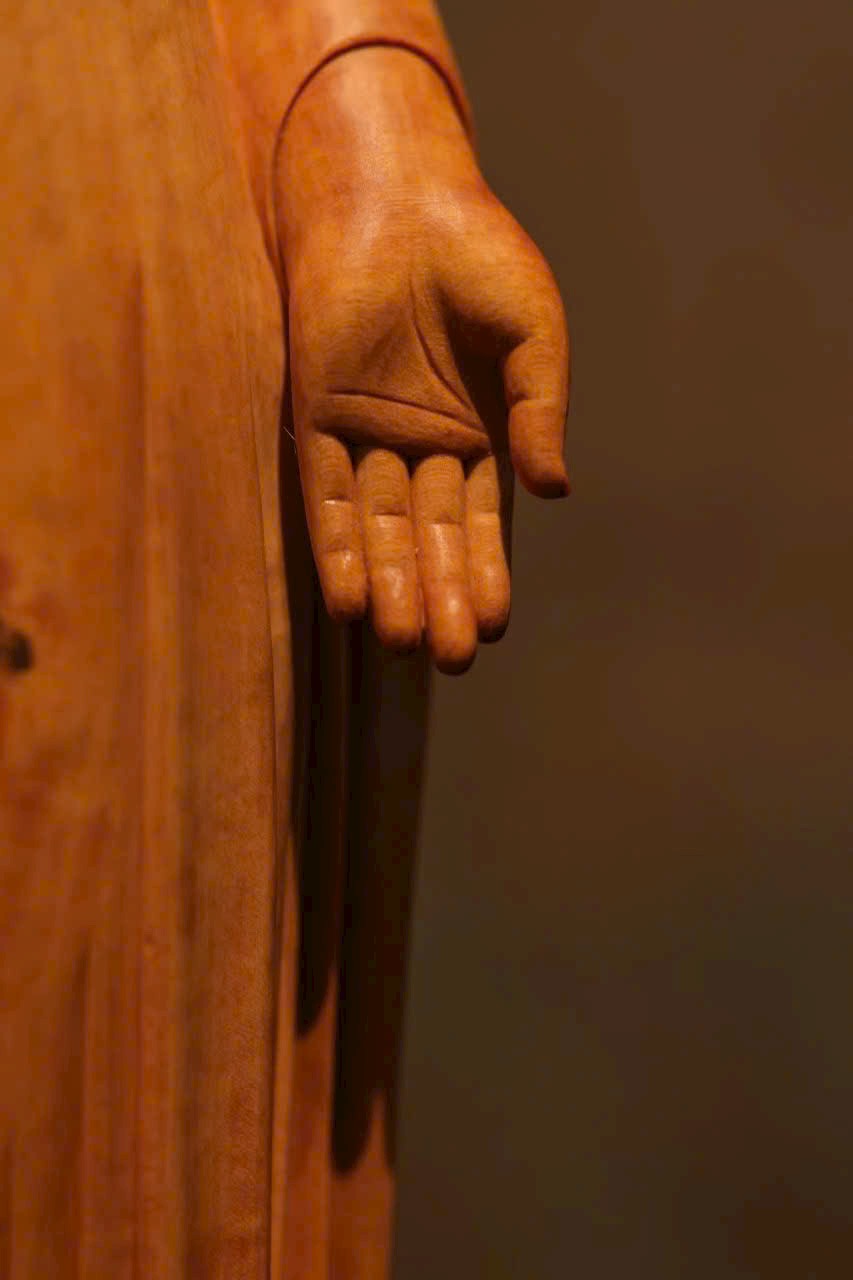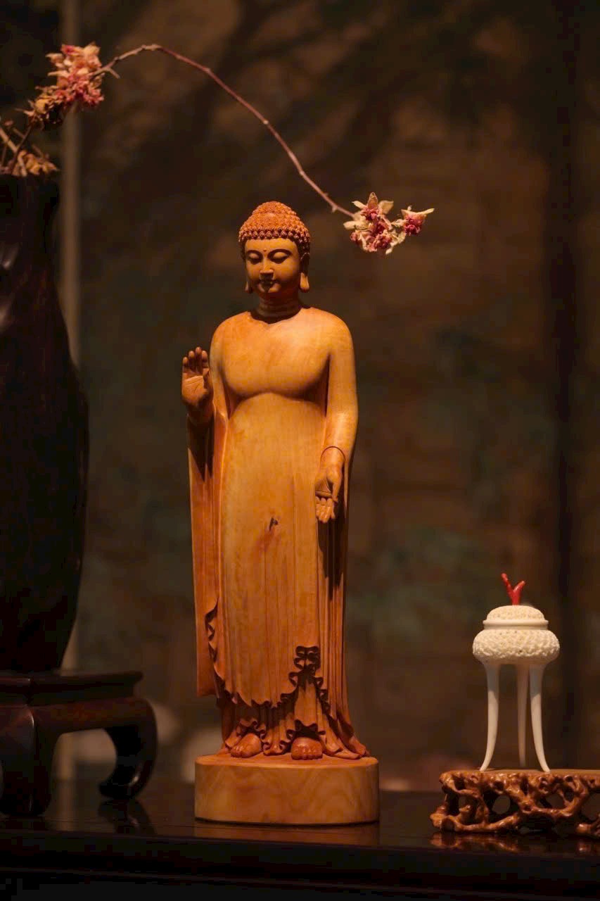 Tuyển chọn chất liệu mịn sạch, Khuôn mặt Phật đầy đặn như trăng rằm, đôi mắt thanh tịnh như đóa sen. Pháp y khoác trên người xếp tầng như nước chảy, toàn thể tượng toát lên khí chất trang nghiêm và siêu phàm.