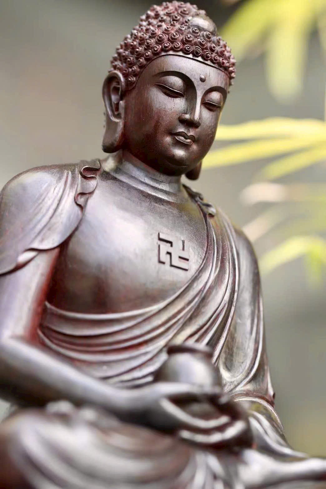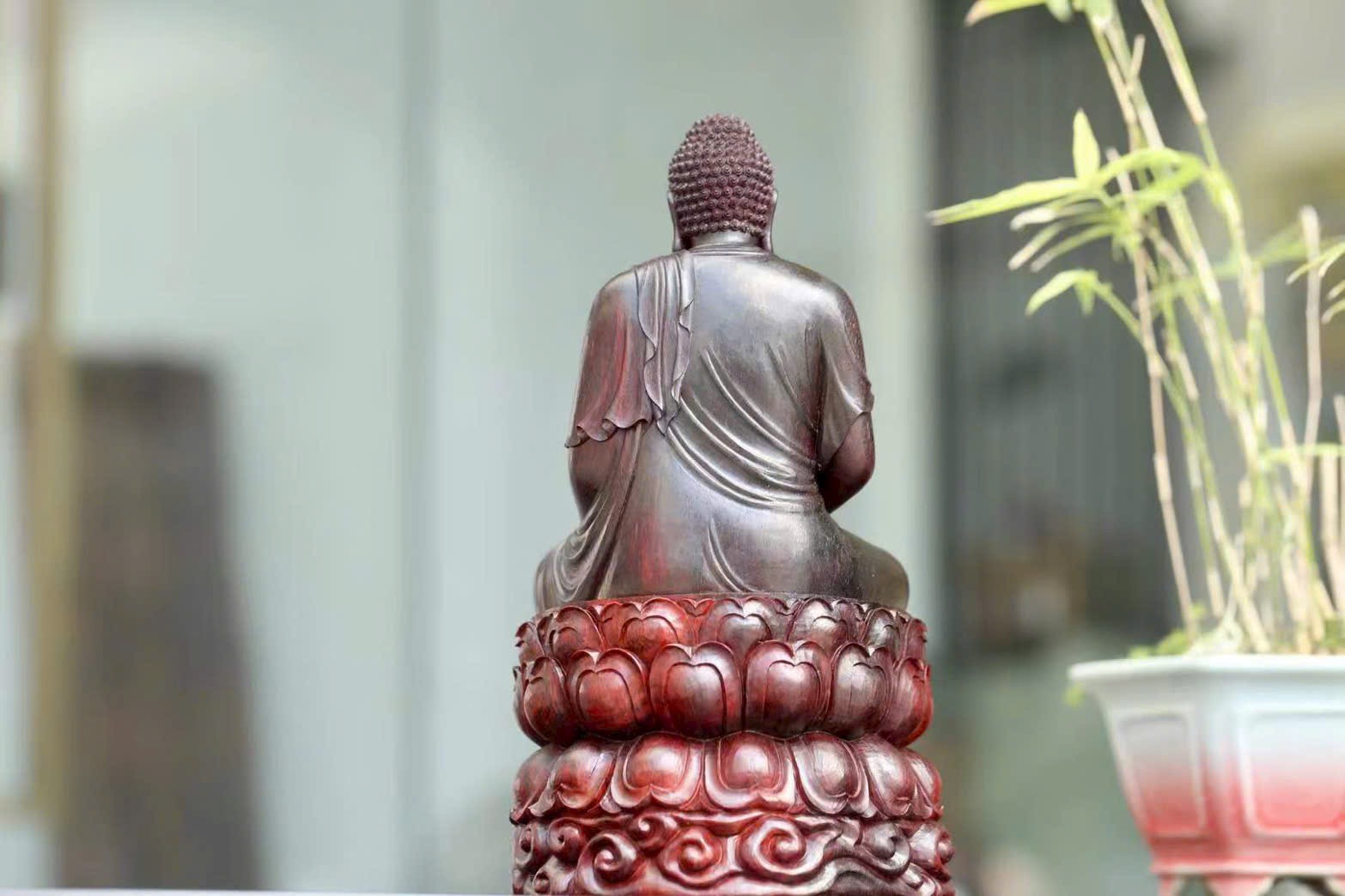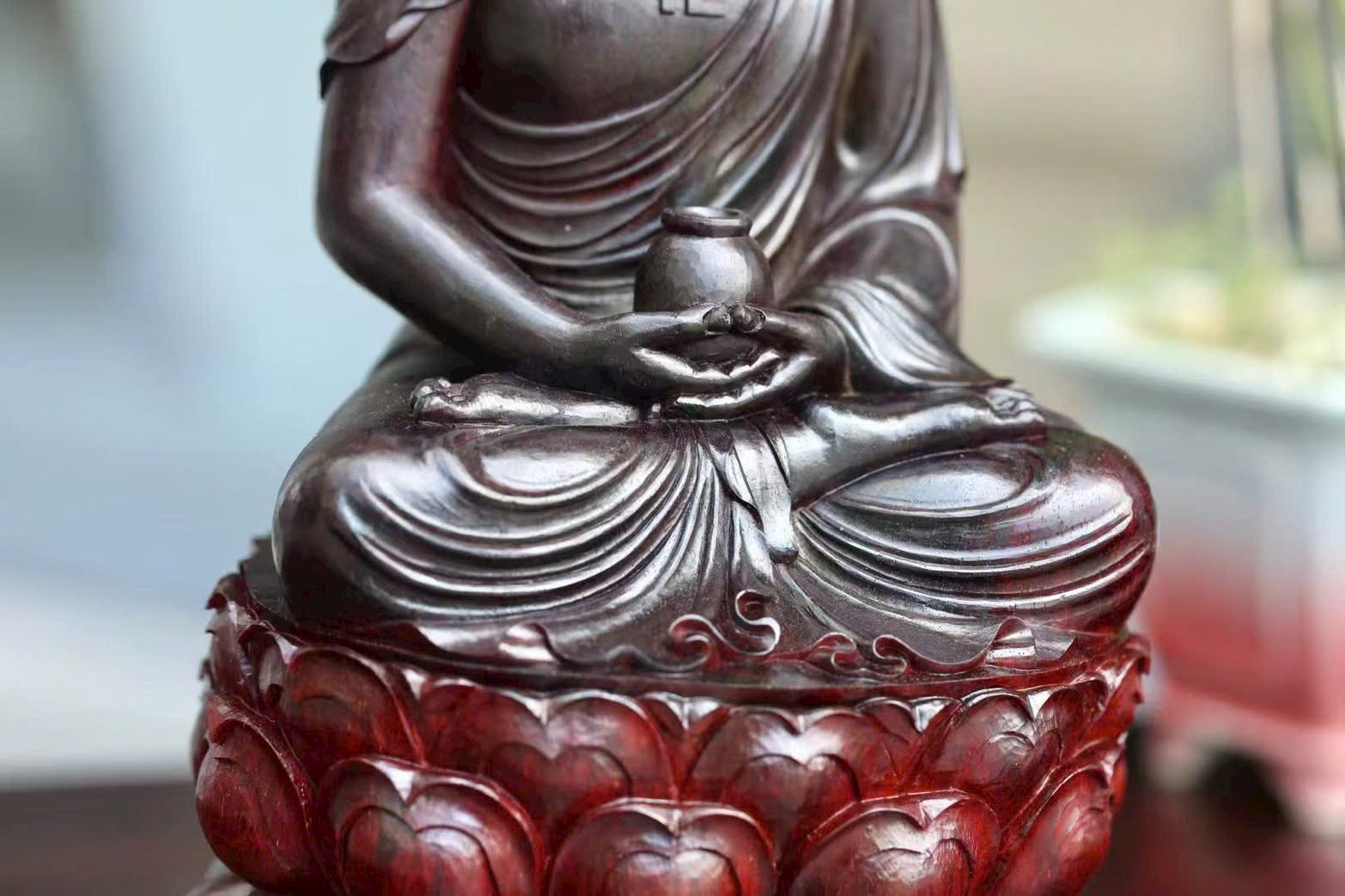 Chế tác từ gỗ lão liệu dầu cao, thớ gỗ dày mịn, nguyên khối. Đục đường dao sạch, tinh gọn, thần thái tôn nghiêm trang nhã, khí chất trầm ổn, thích hợp tôn trí và sưu tầm.